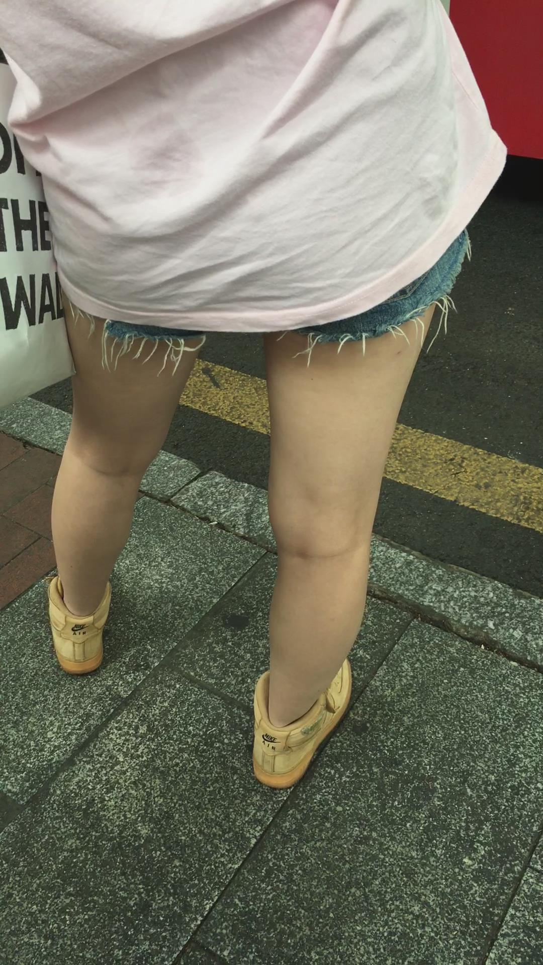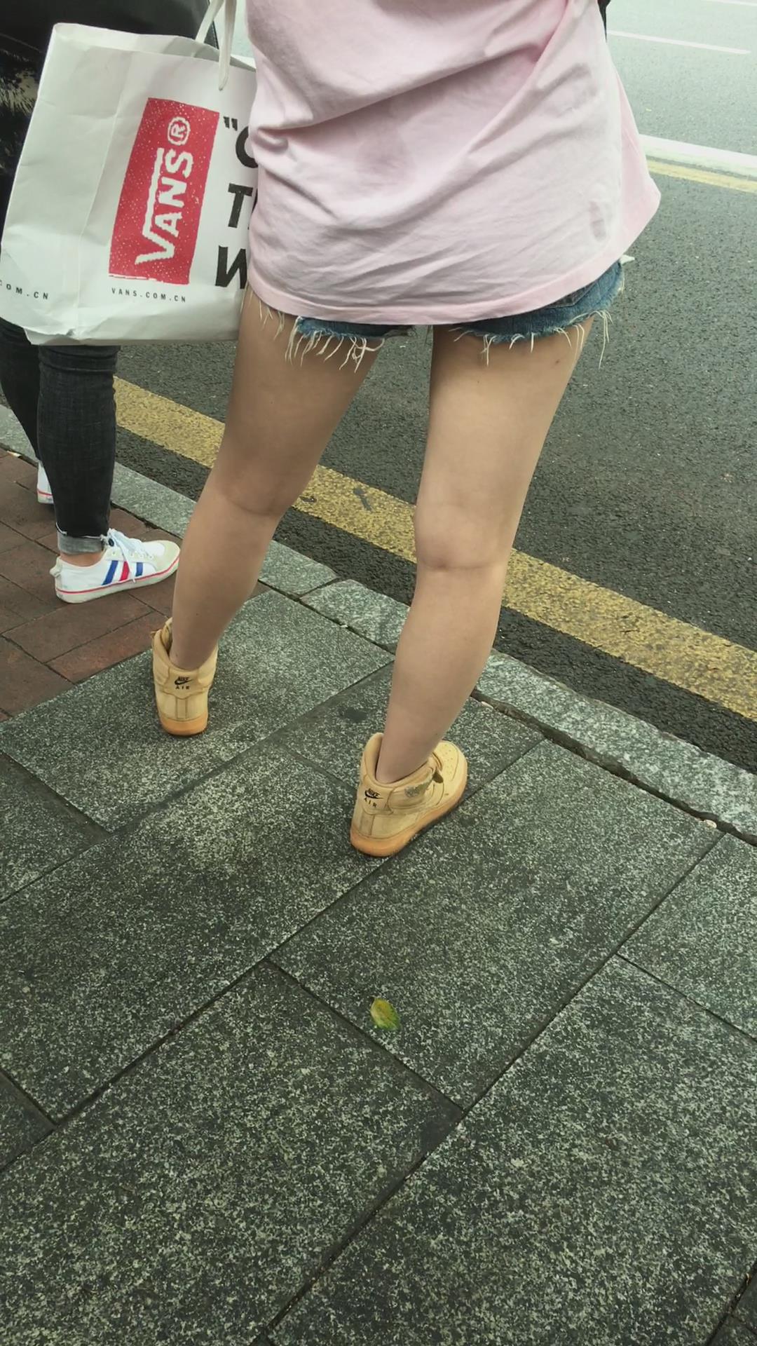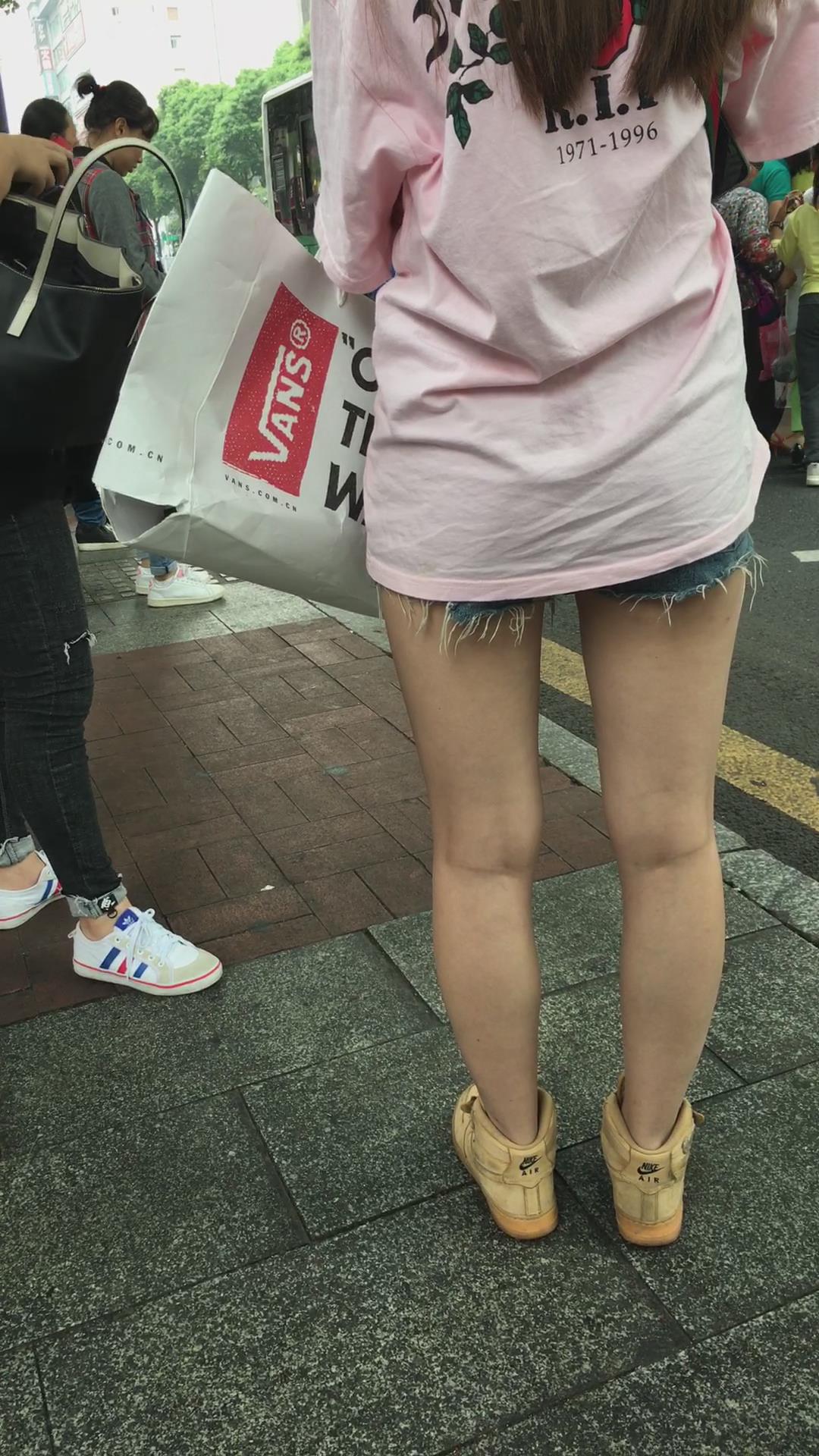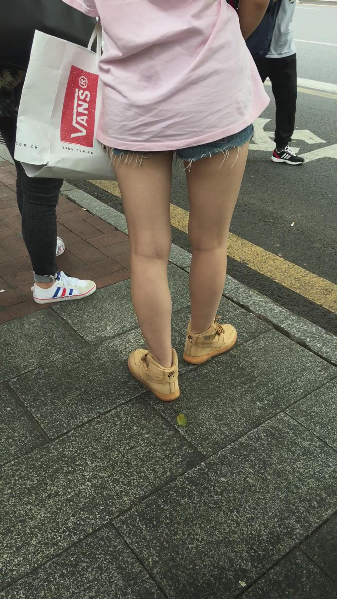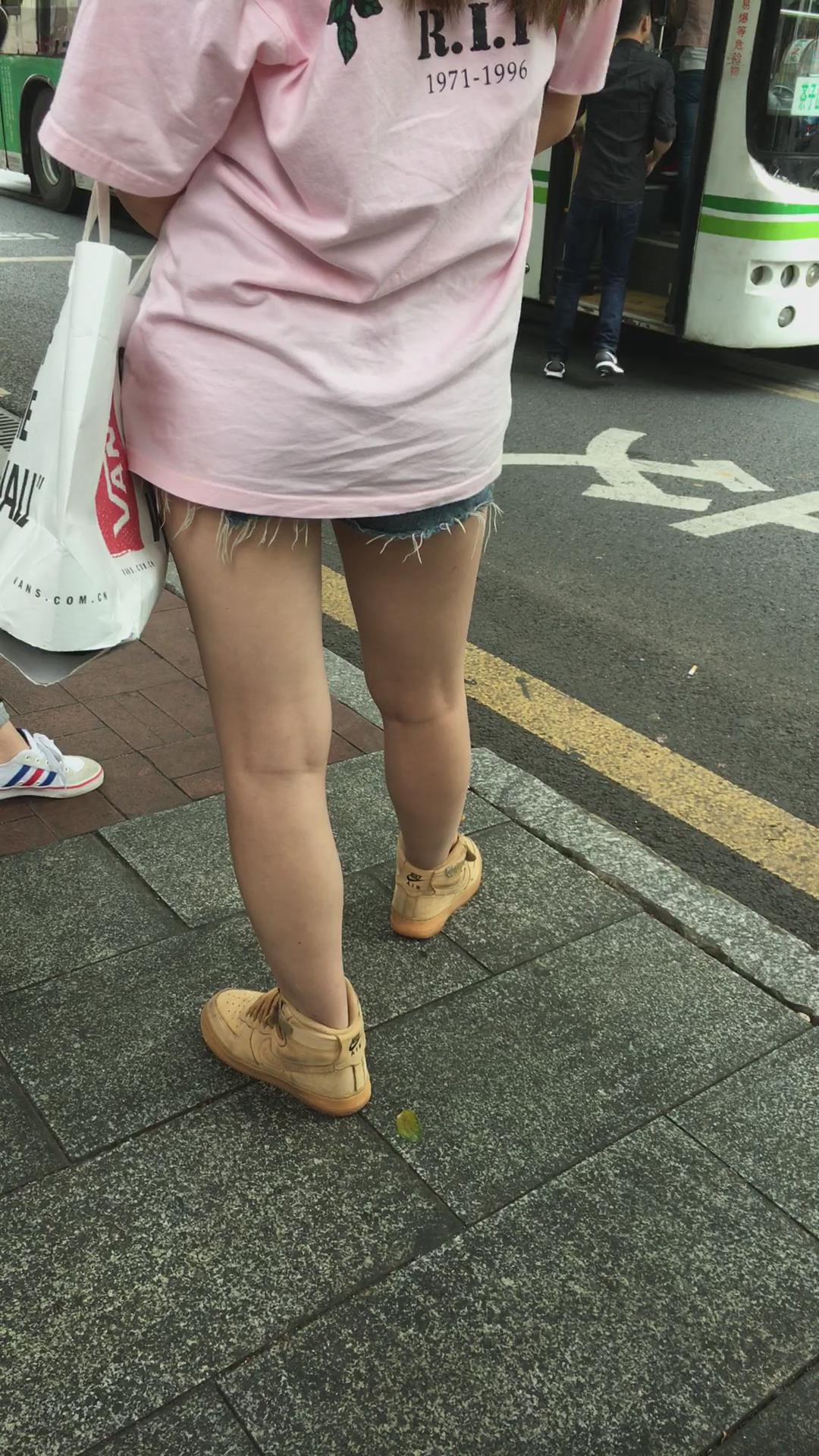| 粉色T恤衫超短热裤美腿街拍美女 编号4105 |