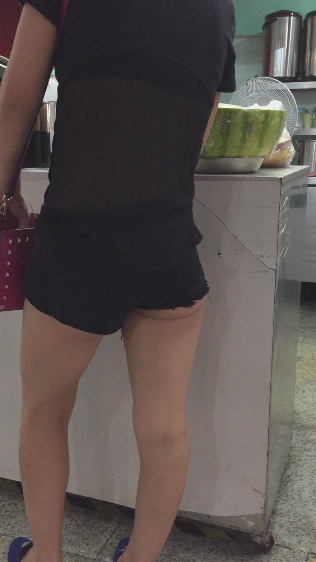 | 黑色超短热裤T恤衫露出屁股蛋蛋街拍美女 编号4108 |