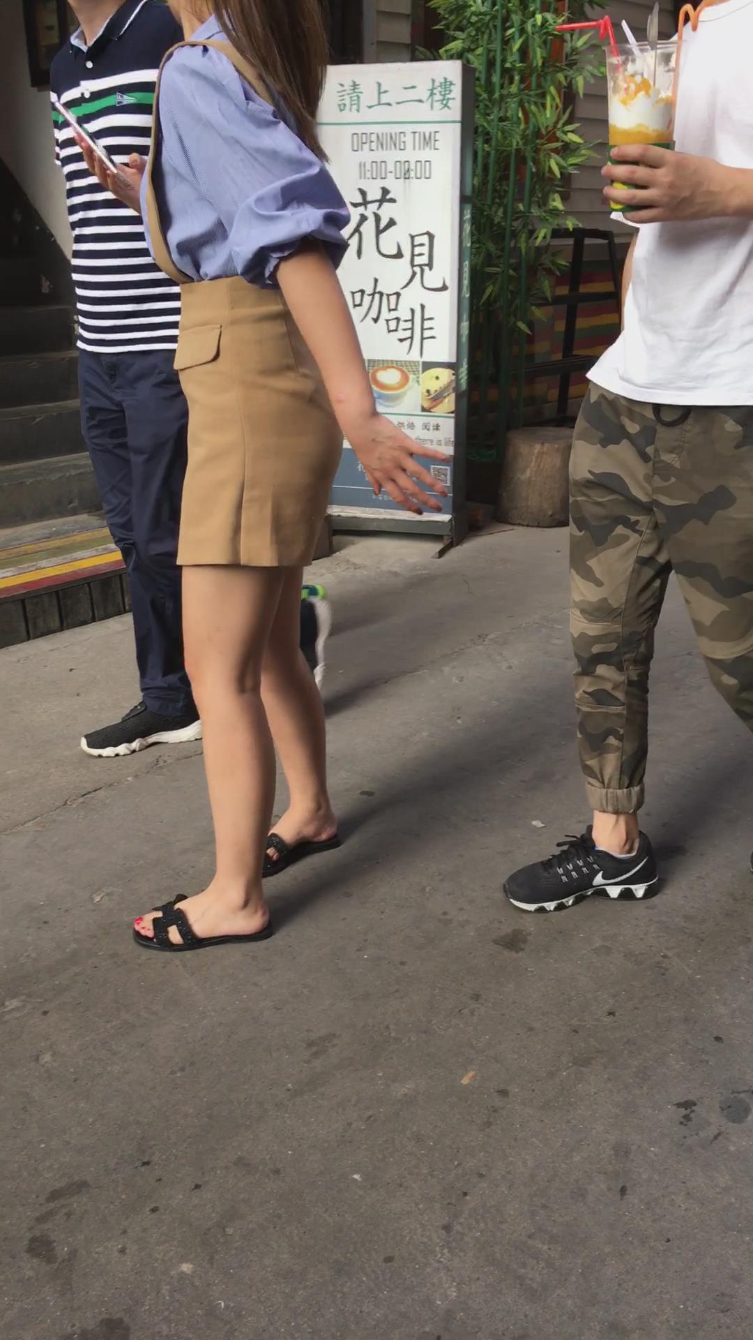 街拍极品美臀吊带裤马尾辫美女 编号4135 |