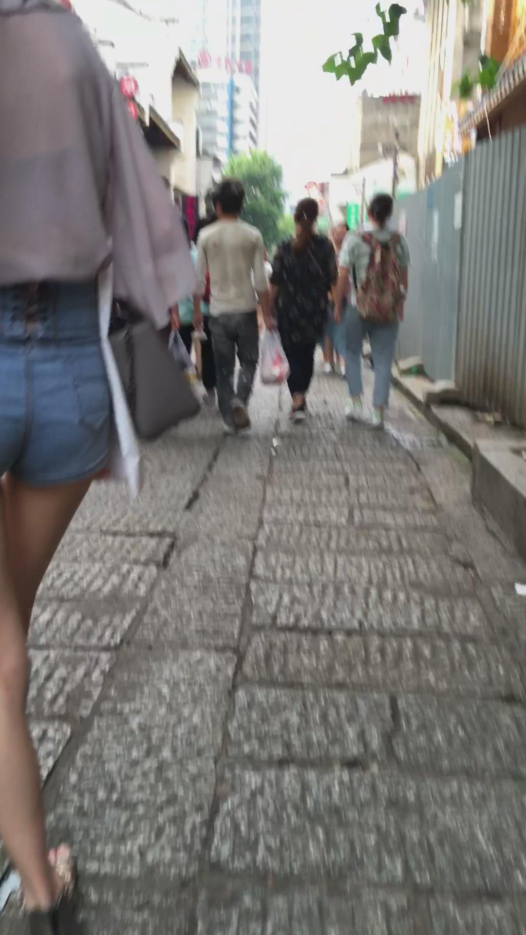| 街拍高腰热裤修长美腿透明雪纺衫高挑美女 编号4225 |