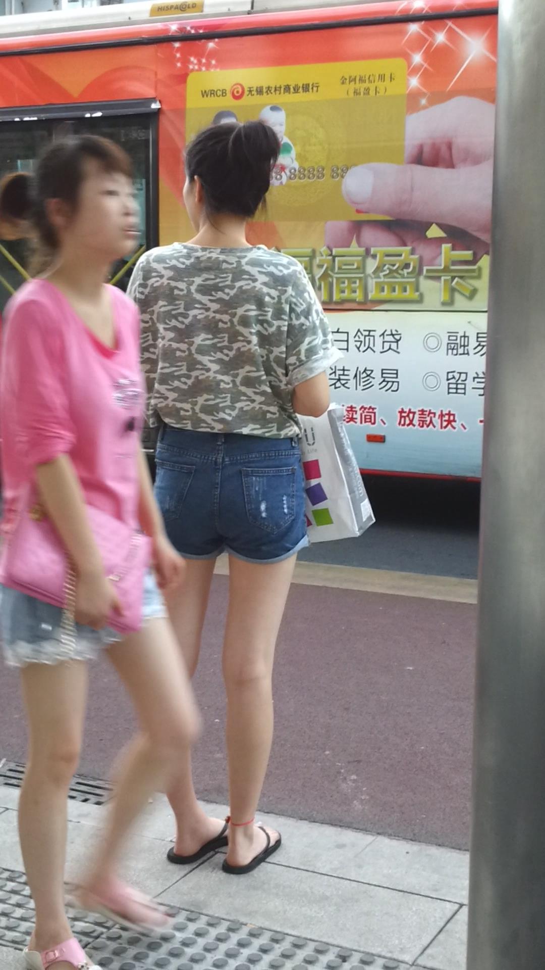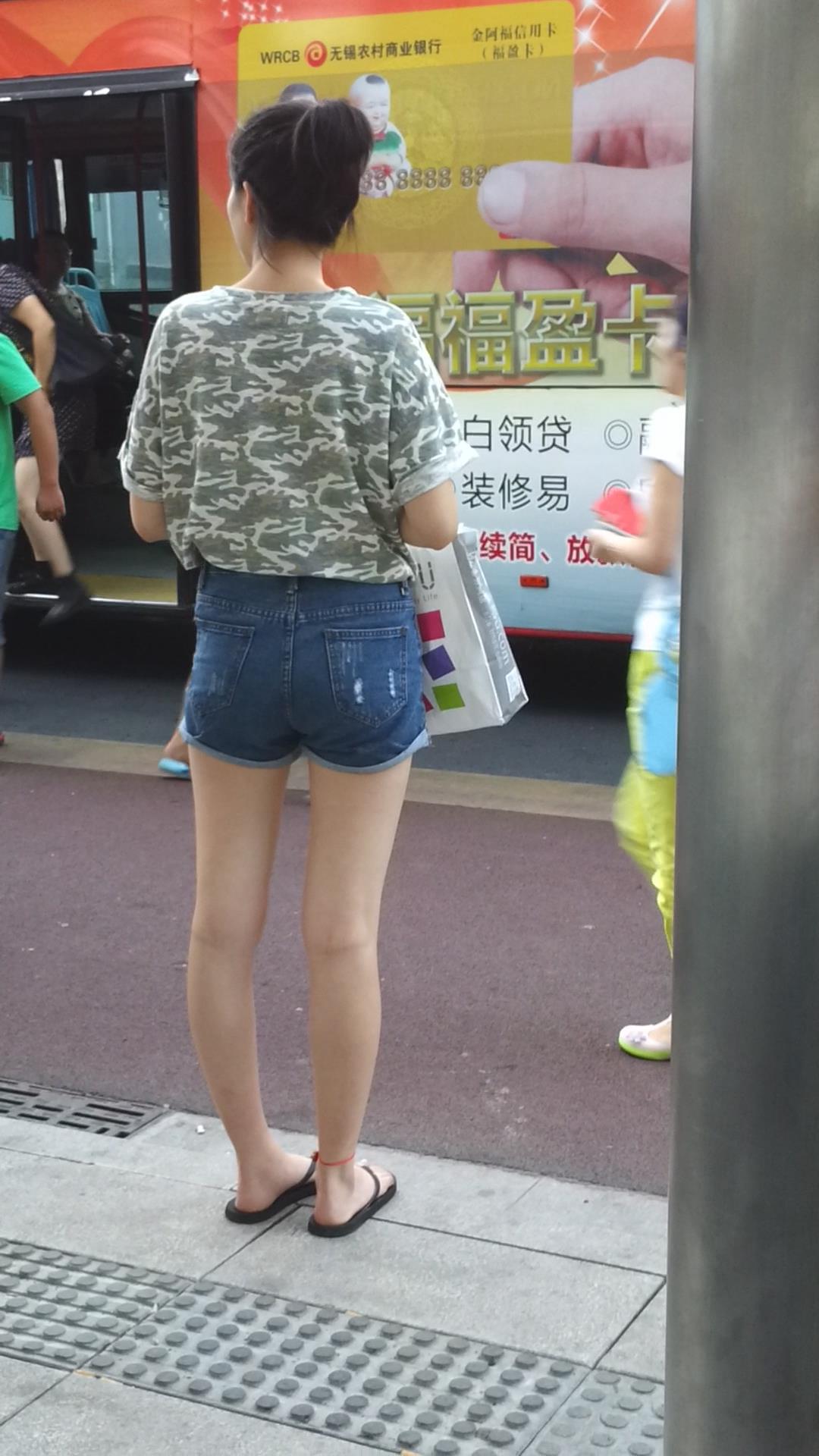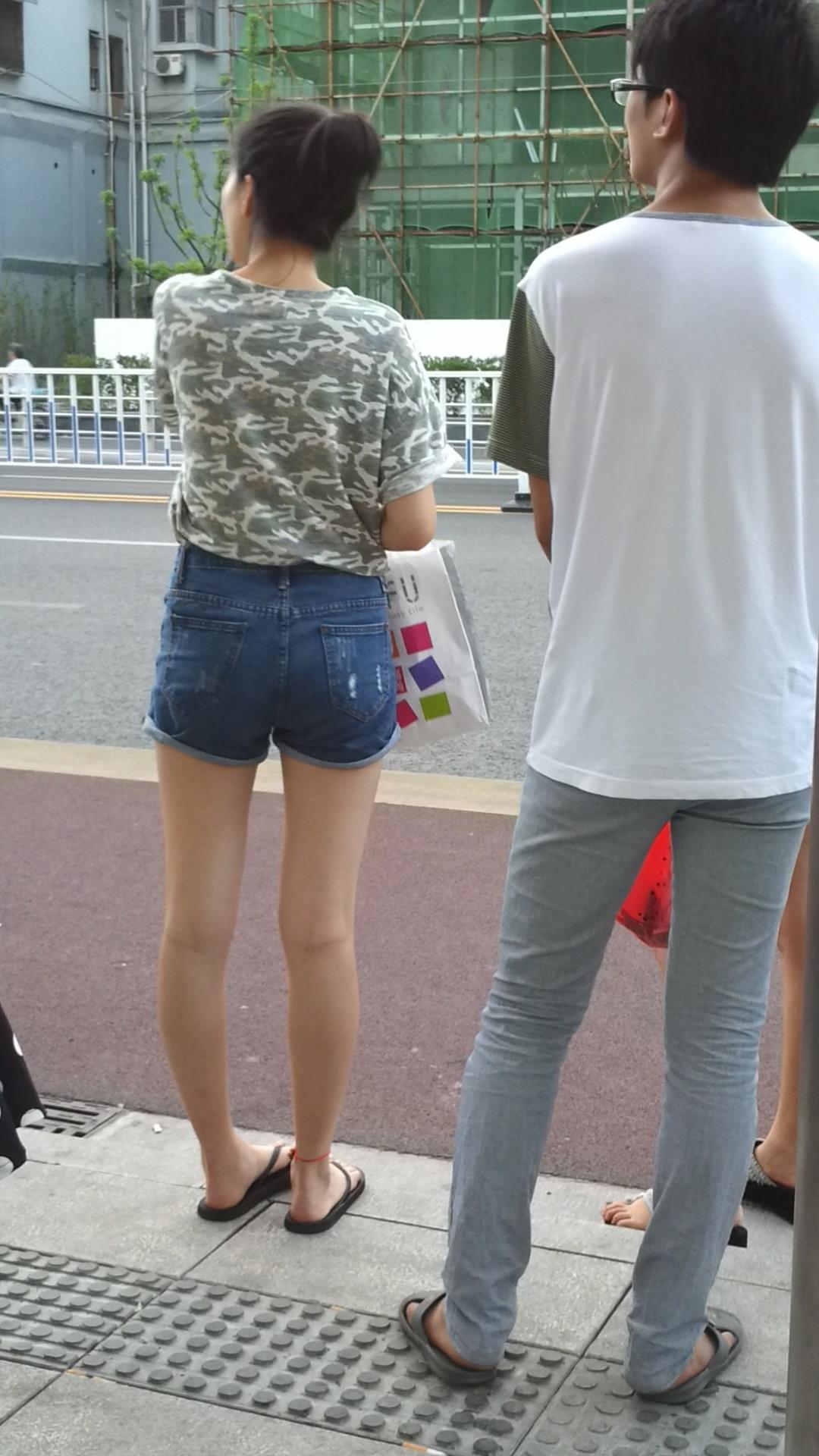 | 路边等公交的牛仔热裤美腿清纯少女 编号4331 |