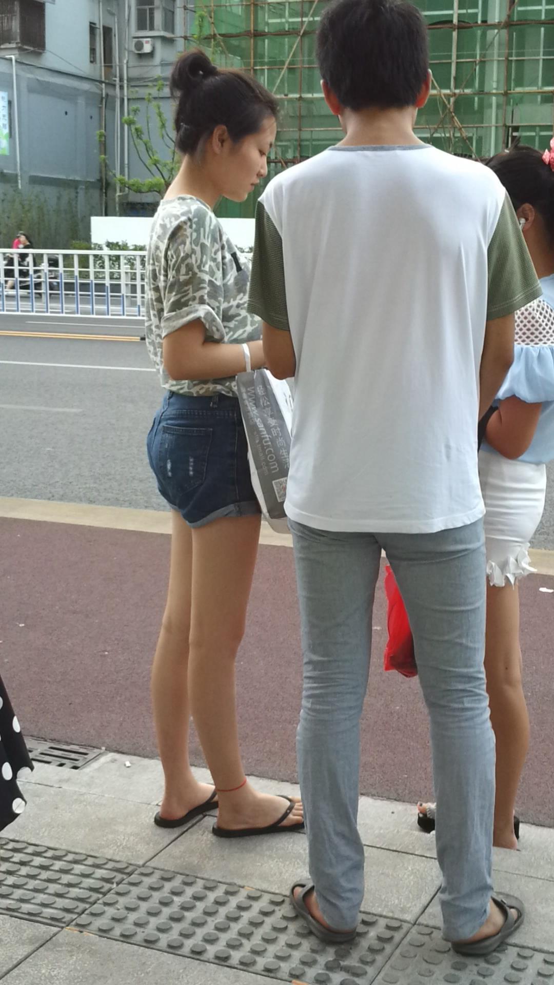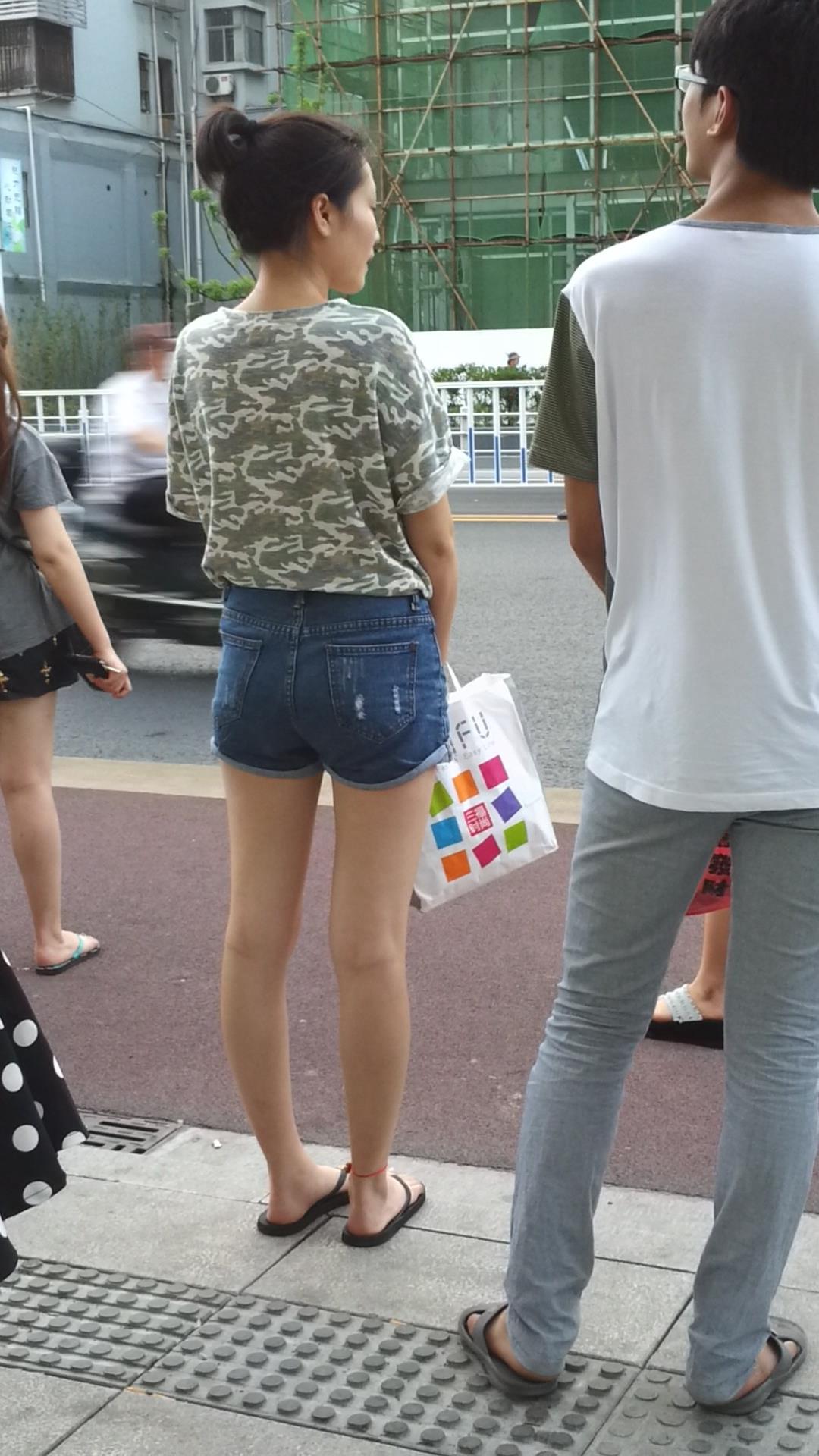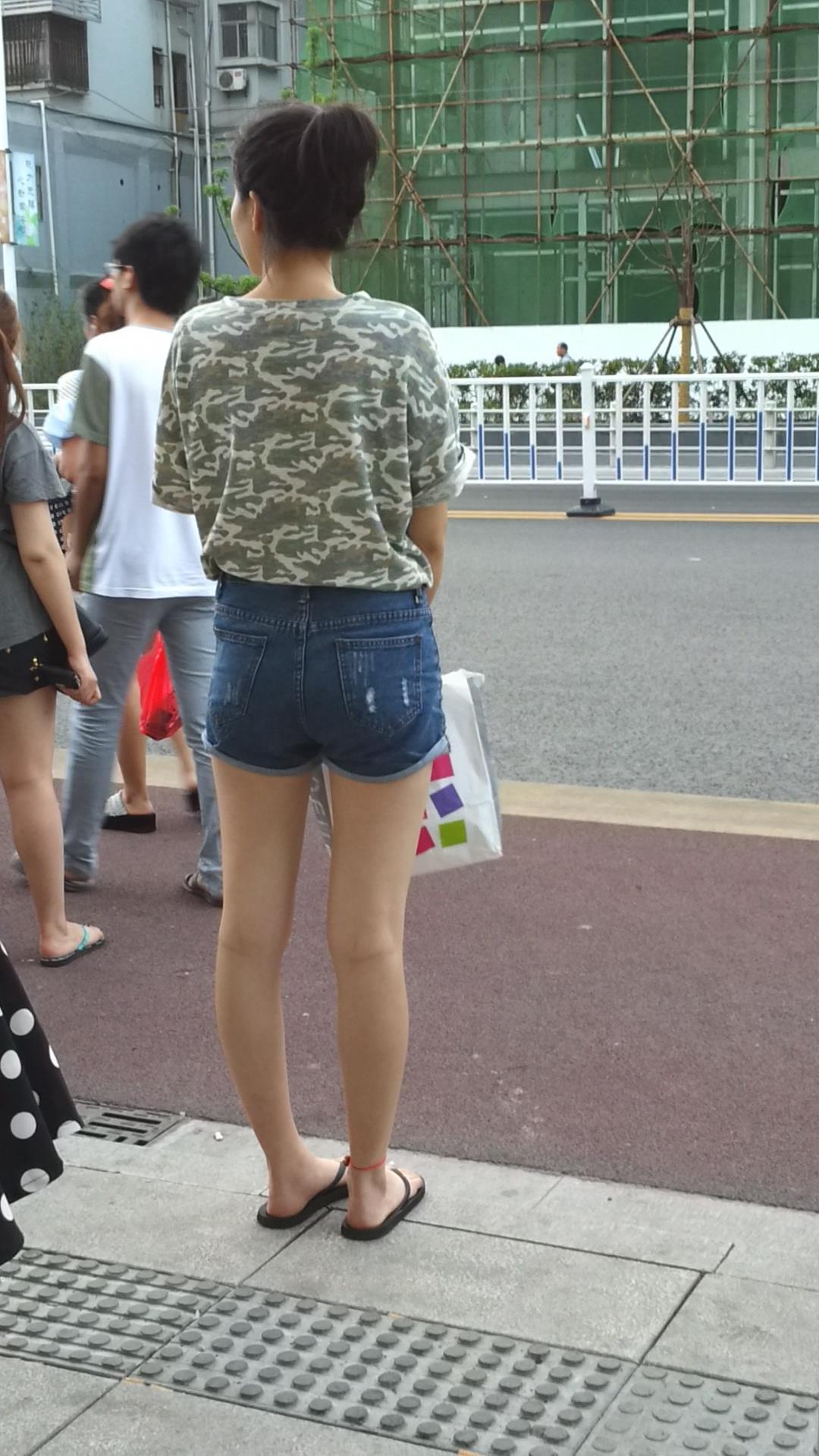 | 路边等公交的牛仔热裤美腿清纯少女 编号4331 |