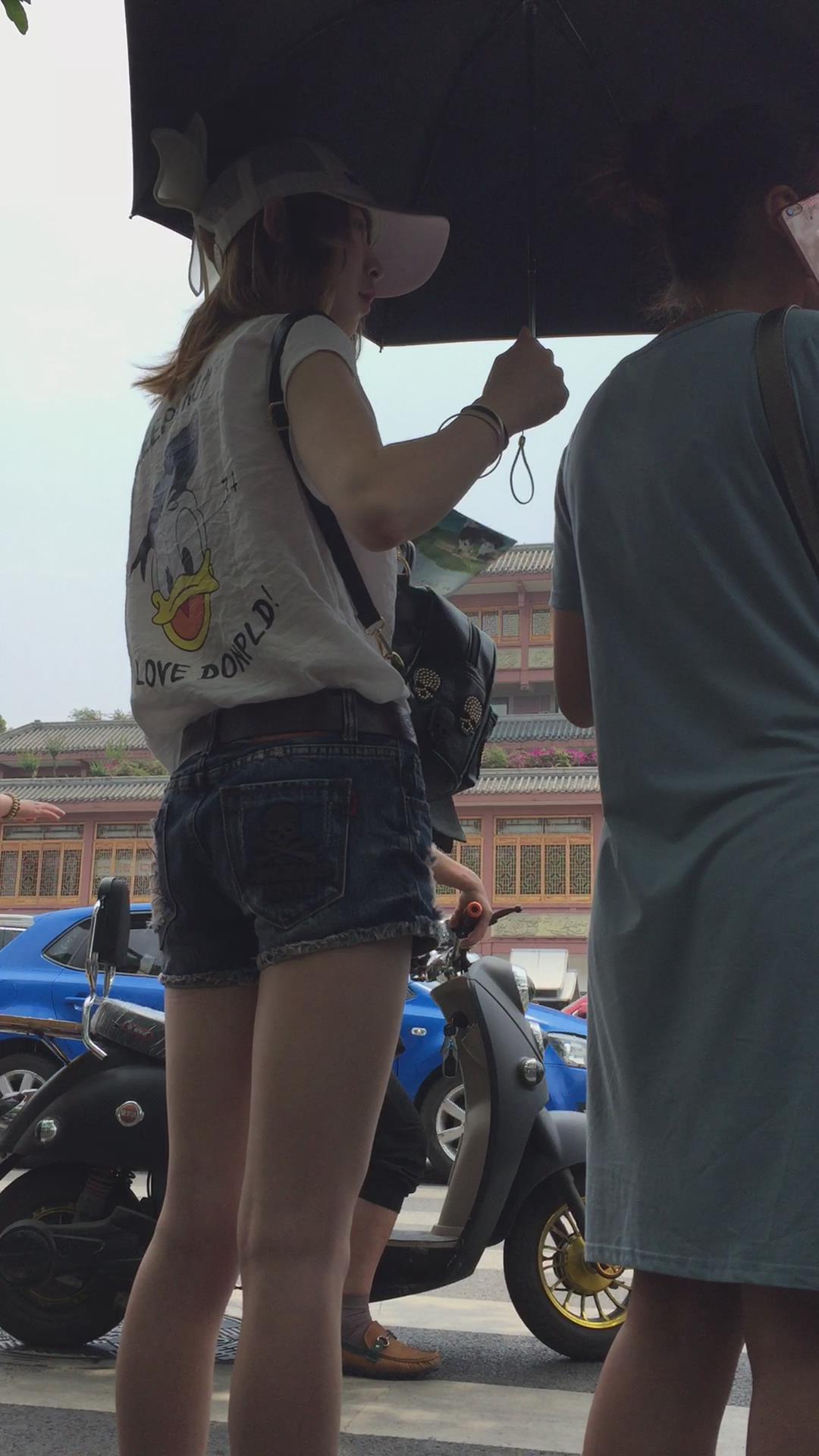 | 清纯甜美小清新热裤美少女公交站等车 编号4570 |