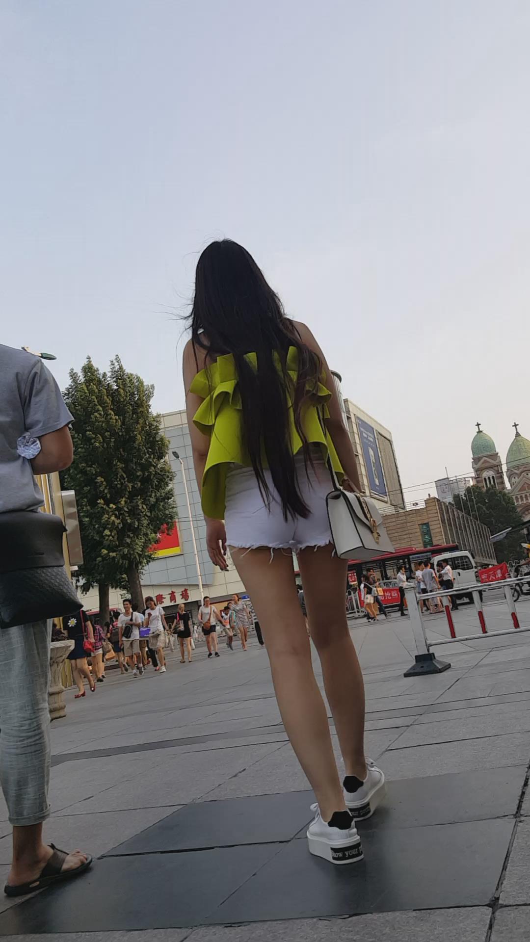 | 街拍白热裤裹胸美衣长腿MM 编号4373 |