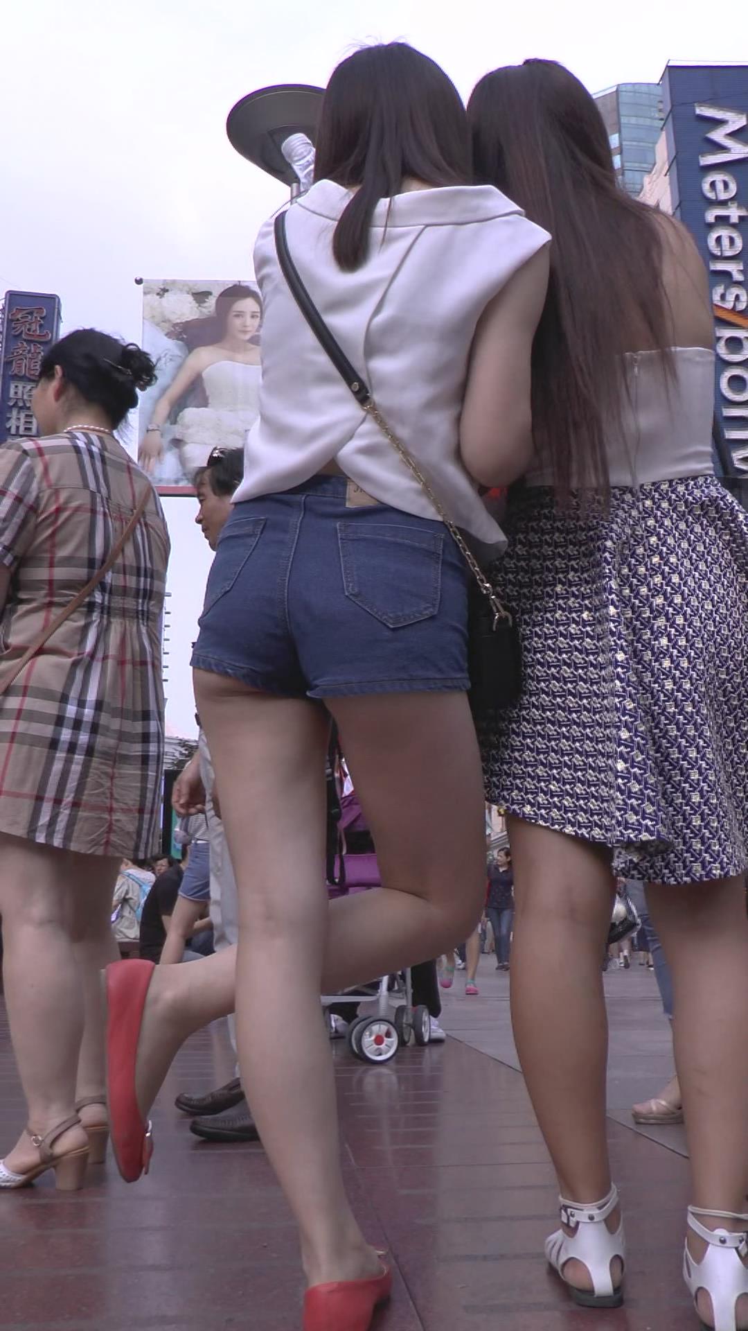 | 街拍红色小平底鞋热裤长腿美女 编号4579 |