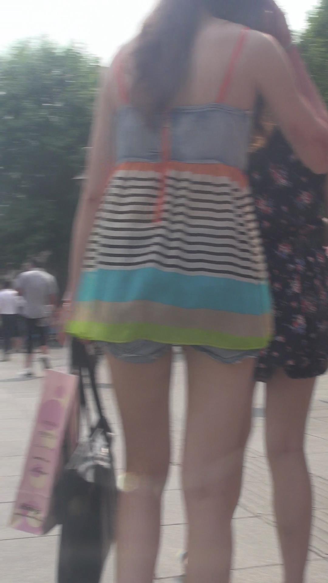 | 街拍颜值超高的吊带衫牛仔热裤美女 编号4460 |