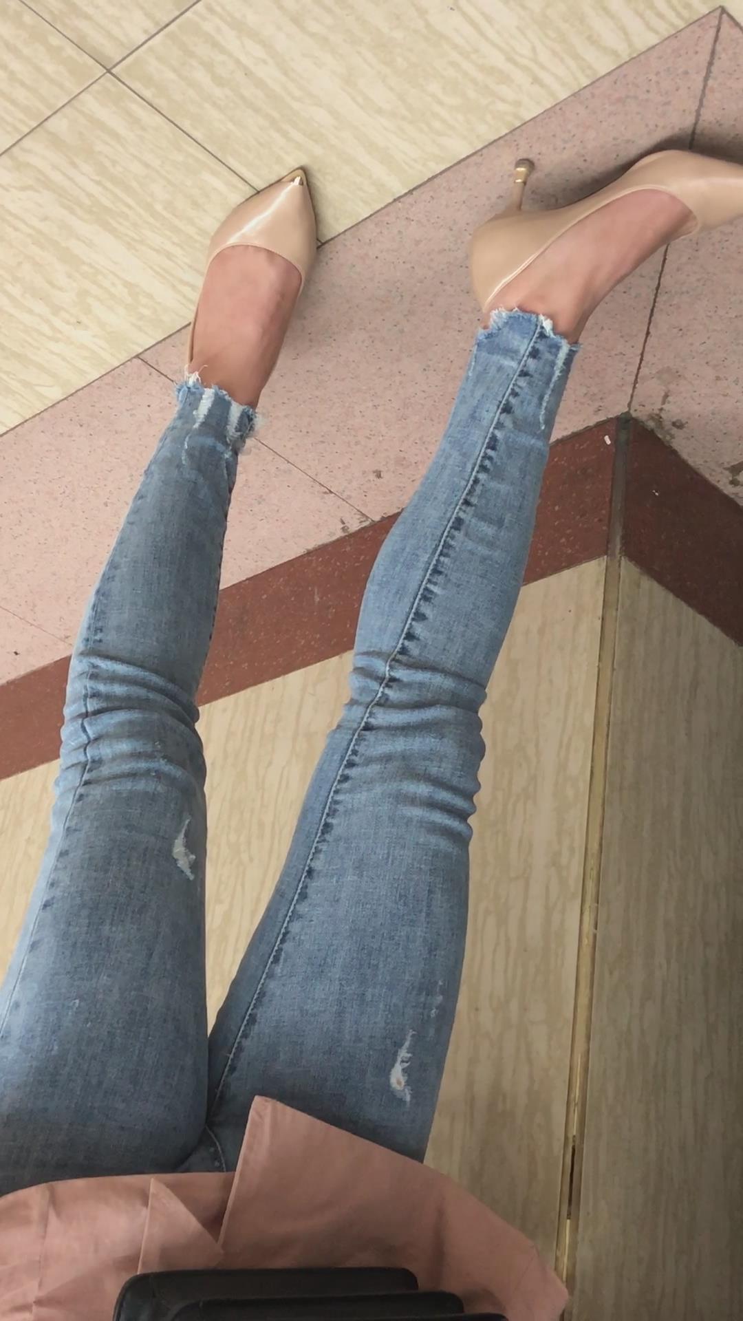 街拍紧身蓝牛高跟鞋美女 编号1645