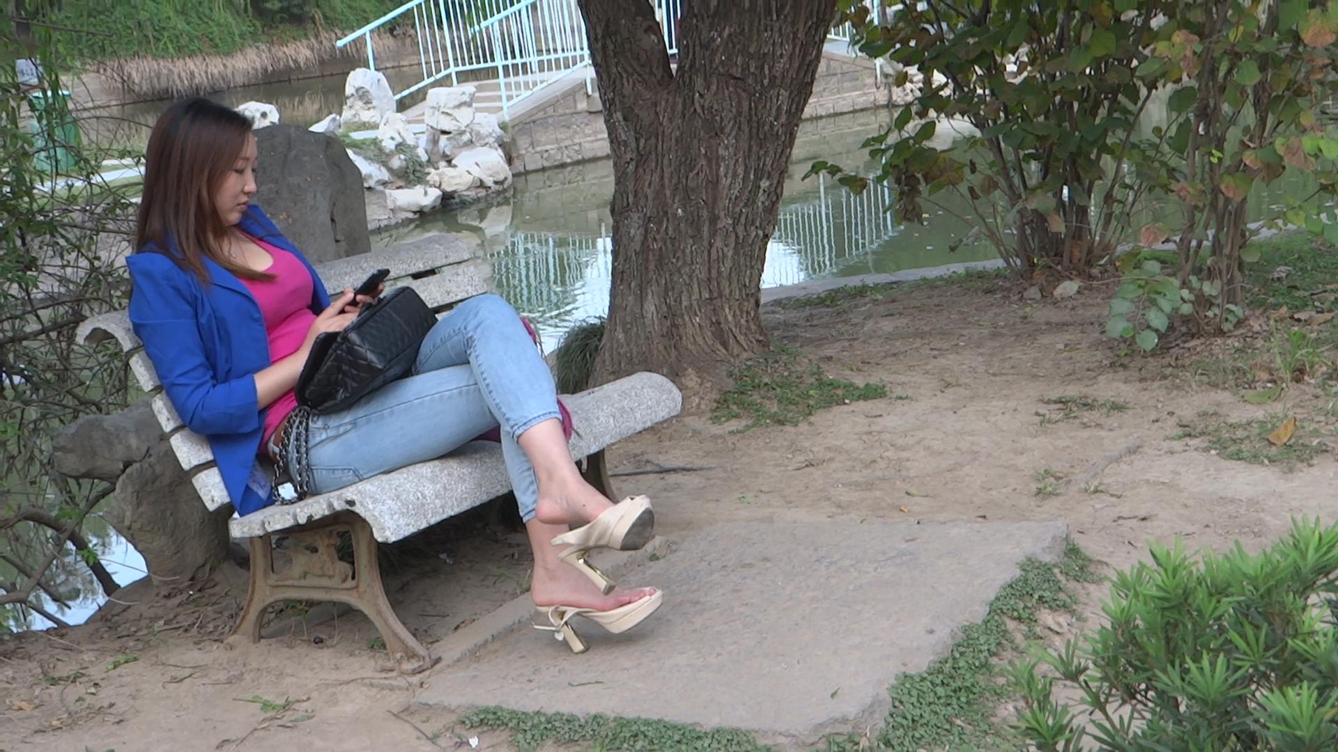 近距离特写公园石凳上玩手机得丰满MM挑鞋 编号1744 |