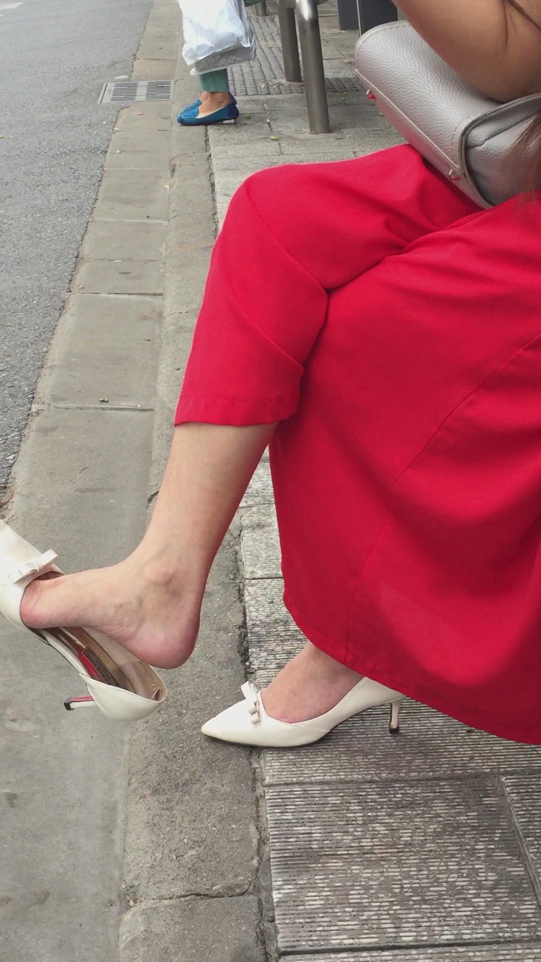 公交站拍摄性感红裙御姐的尖嘴高跟粉嫩美足。 编号1753 |