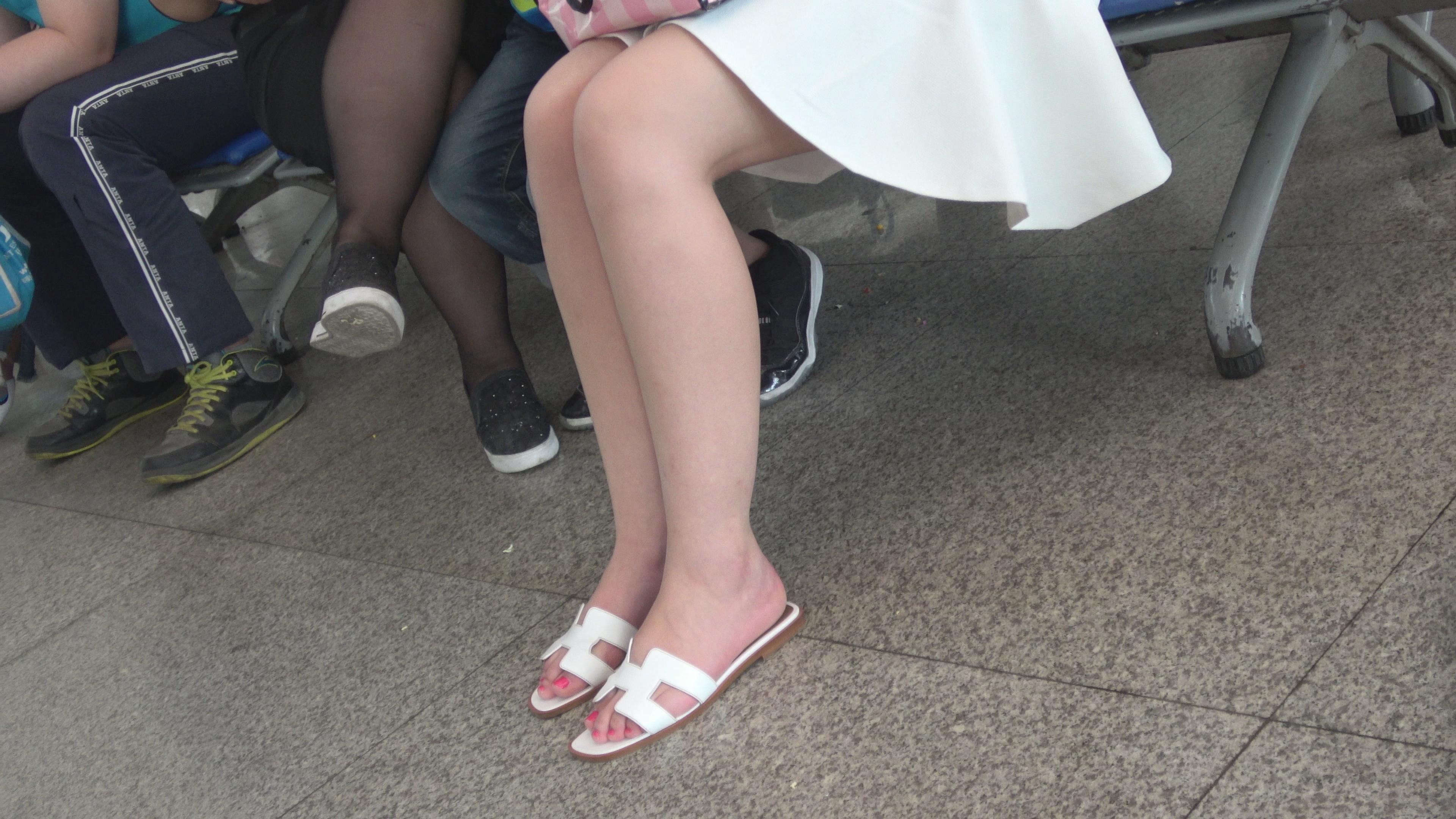 4K 白色连衣裙气质美足辣妈 编号6402 |
