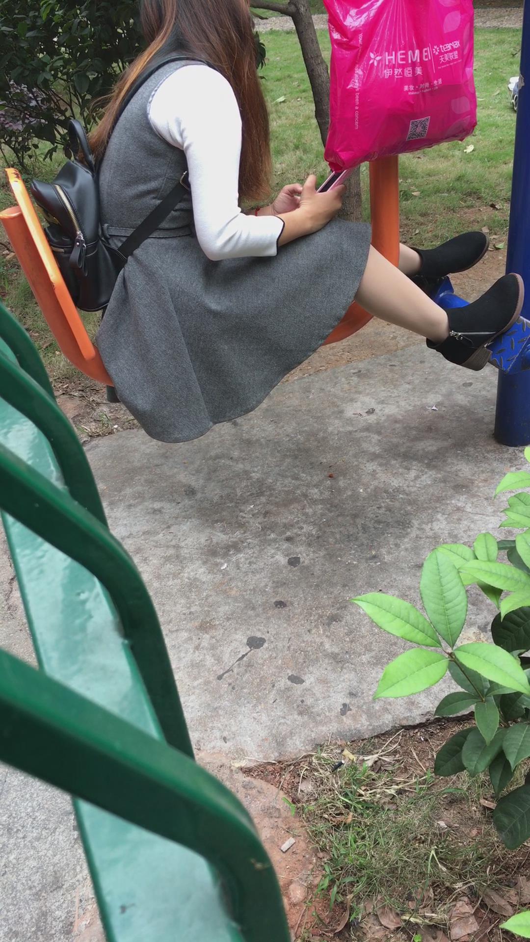 | 公园健身器材上打电话的美腿少妇 编号6525 |