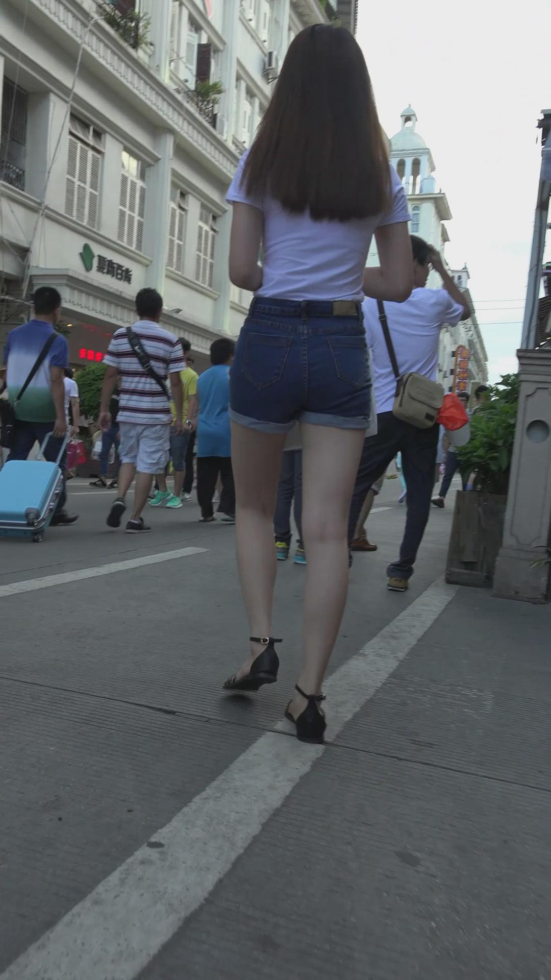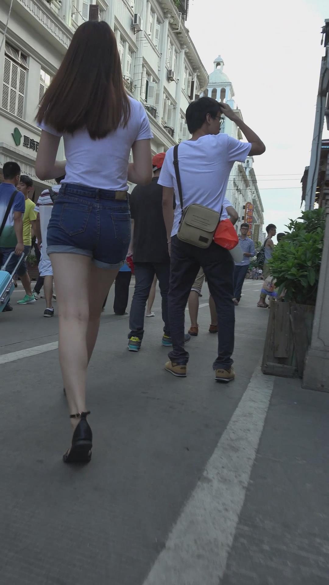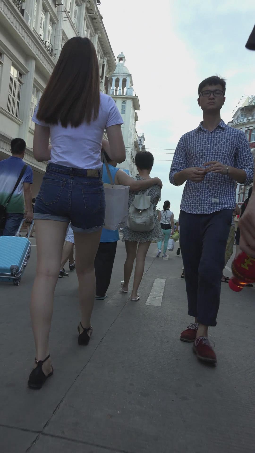 | 街拍美臀白腿性感热裤美女 编号4615 |
