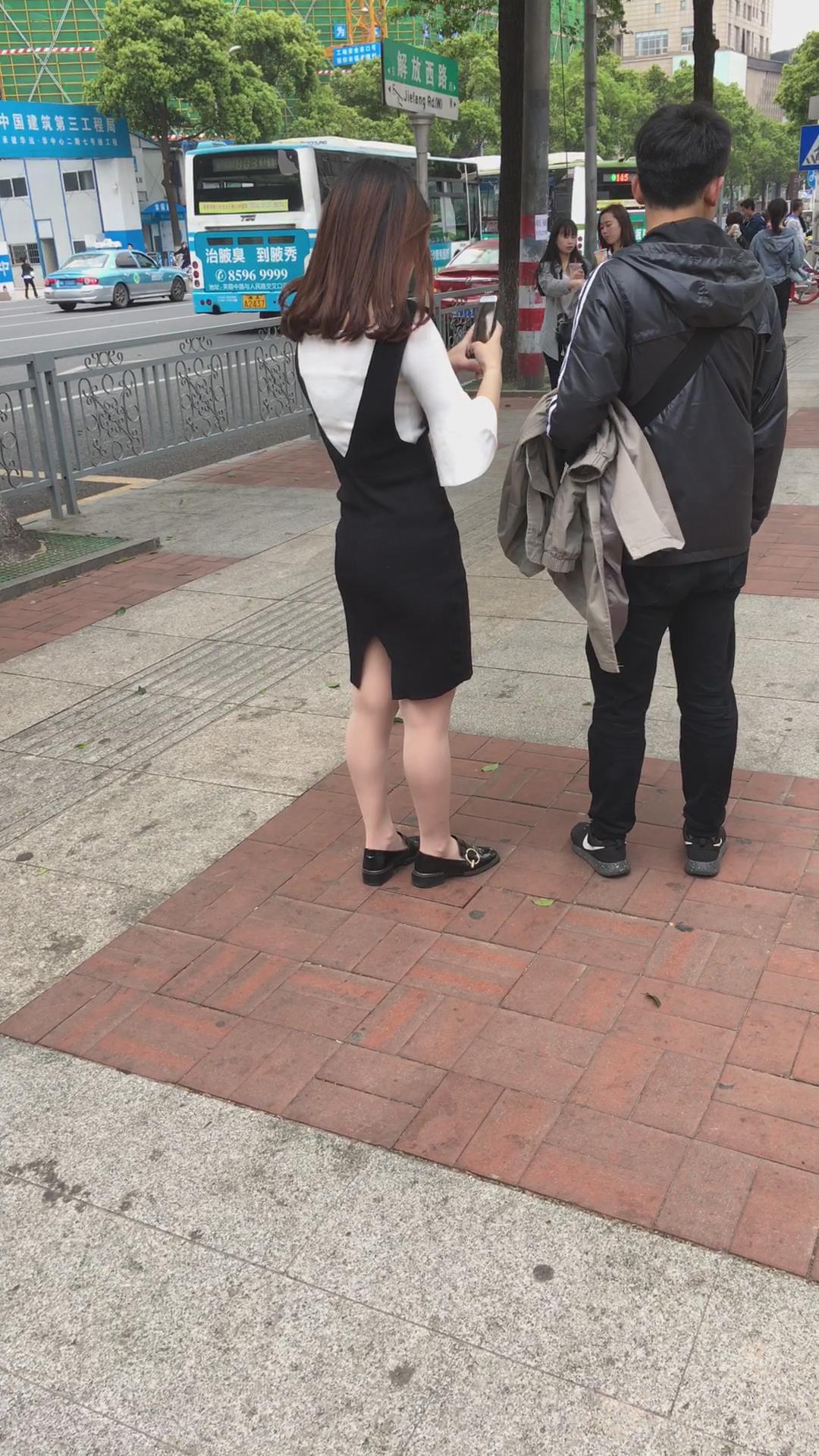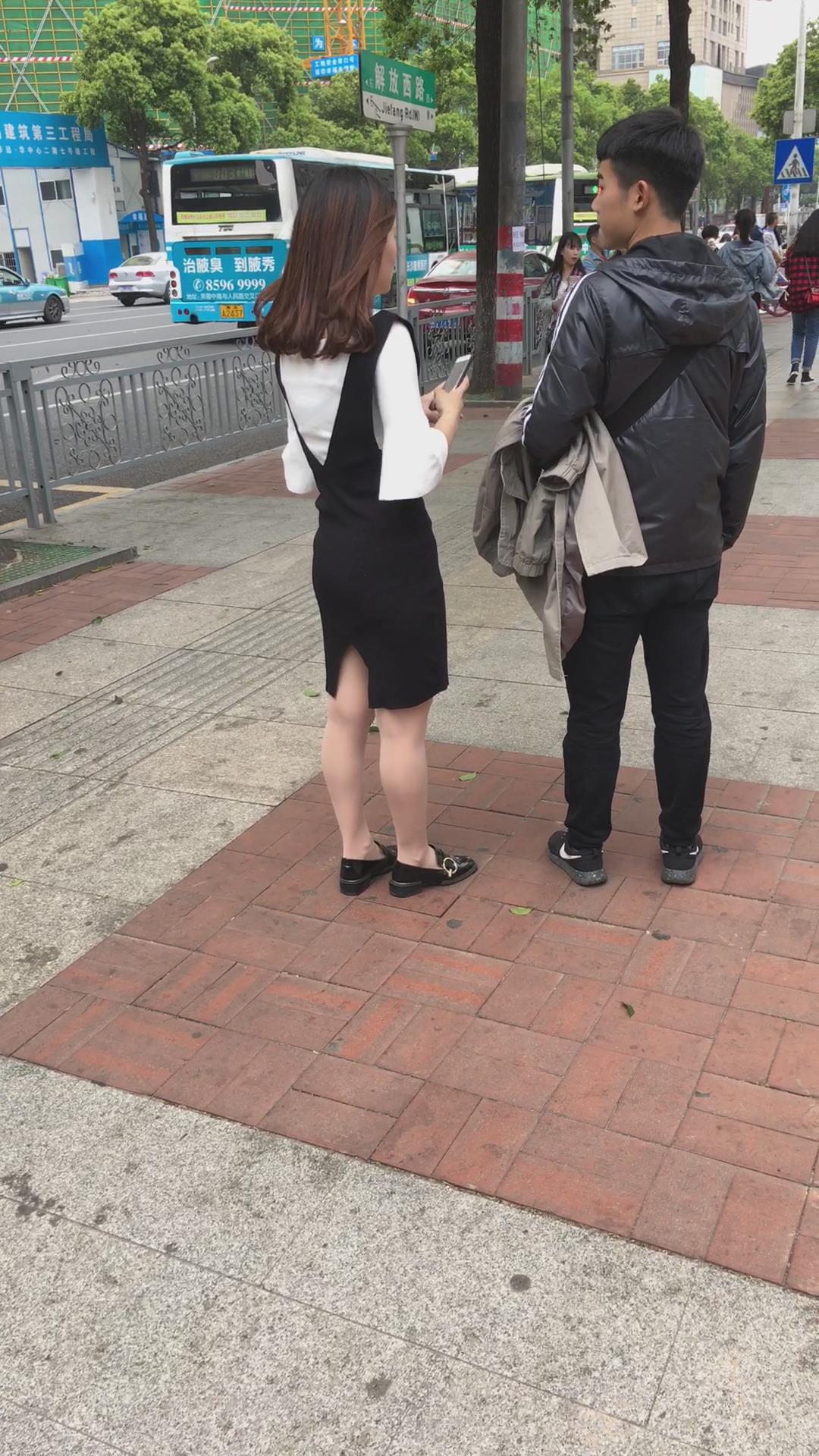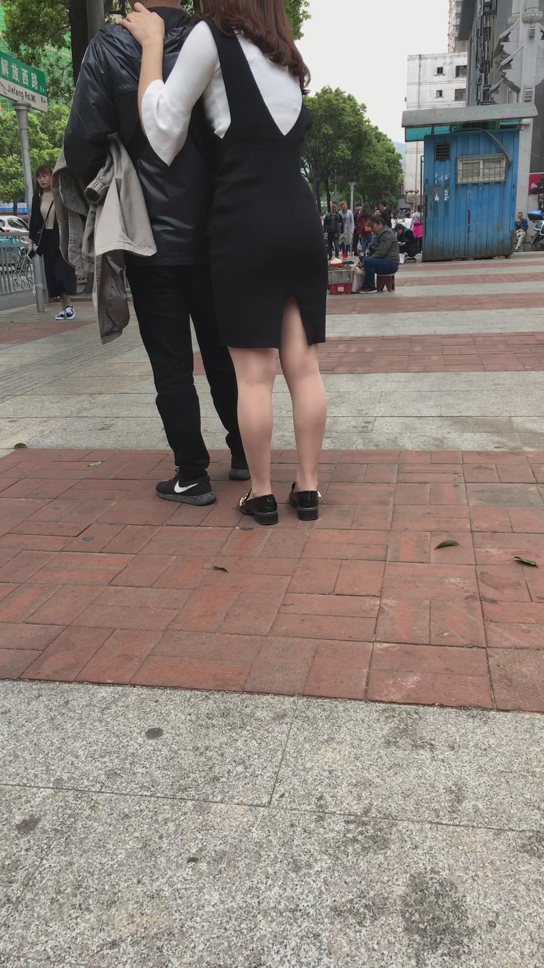 | 黑色开叉裙街拍丝袜MM 编号2096 |