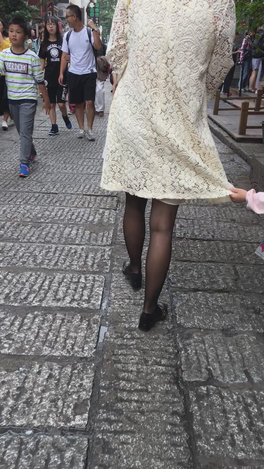 | 镂空连衣裙街拍黑丝性感美妇 编号2118 |