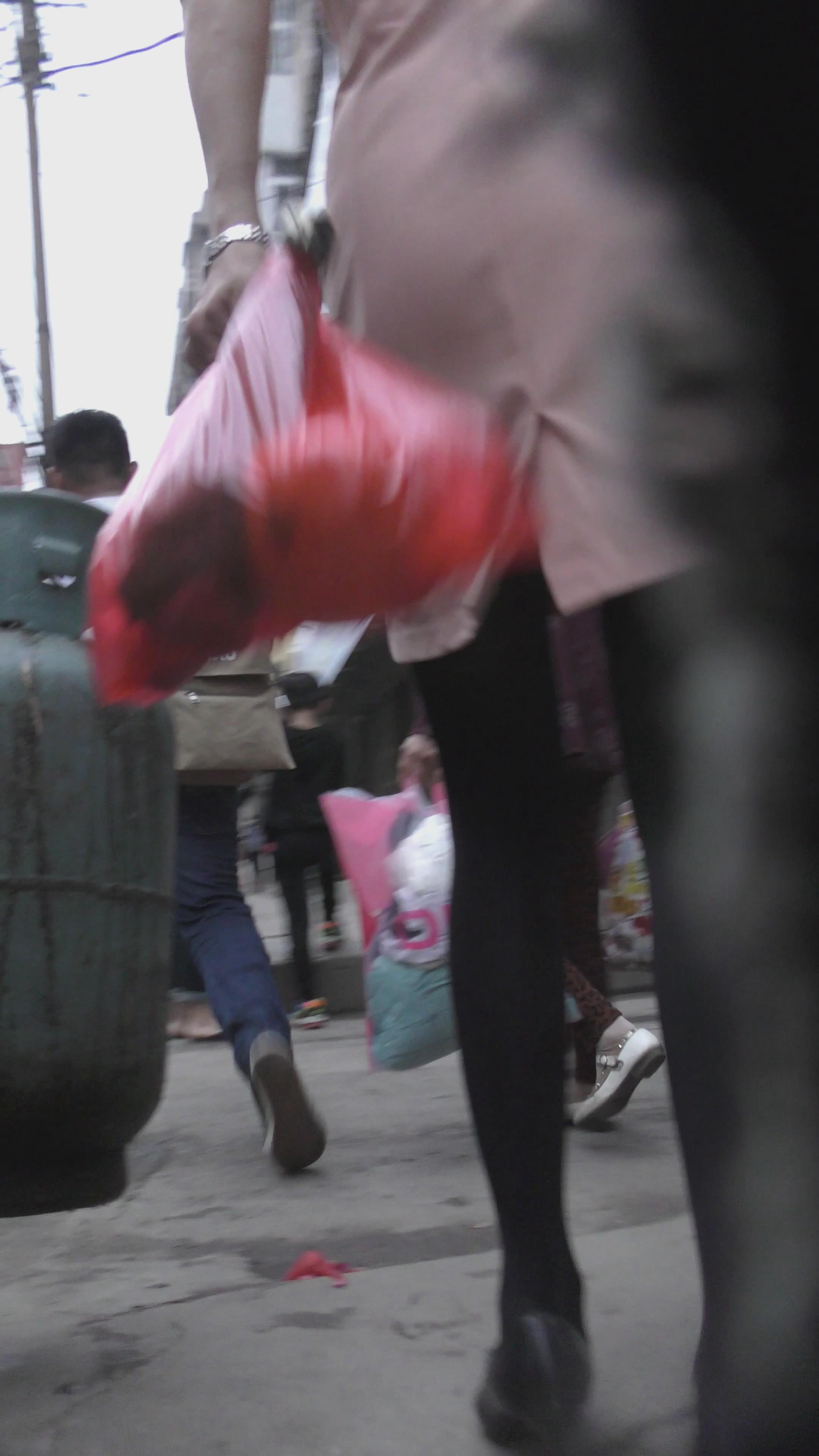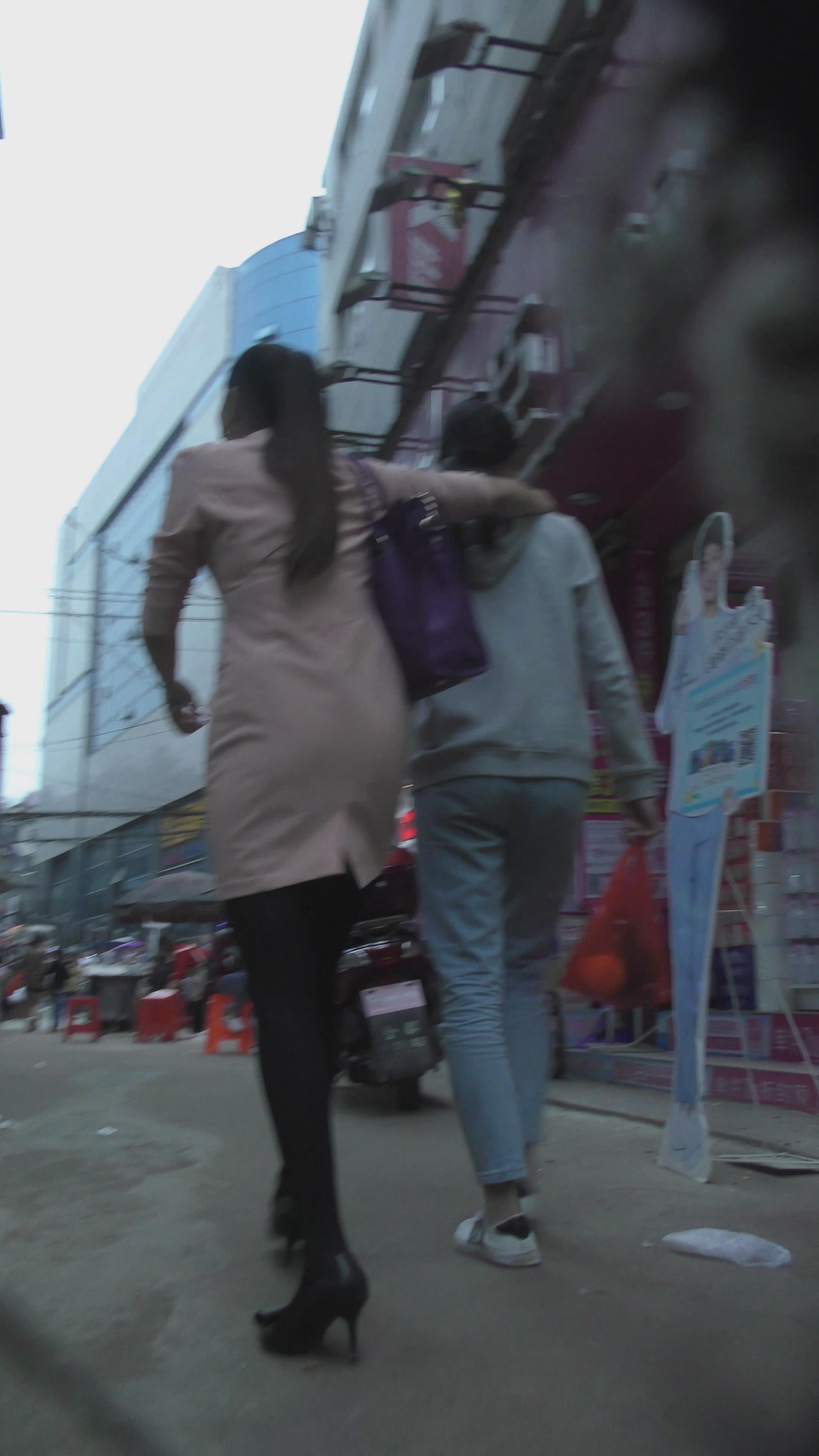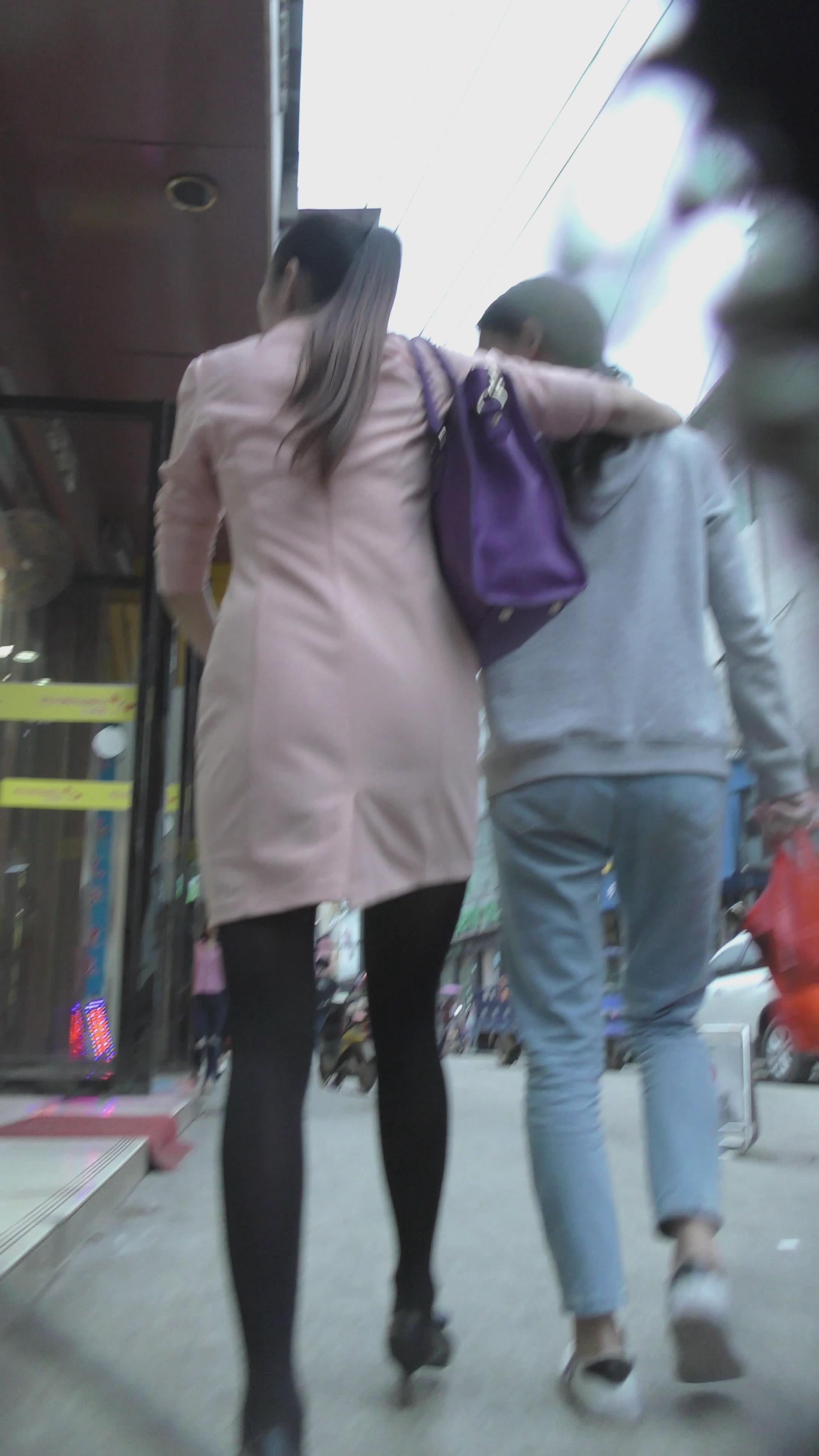| 黑色打底裤粉色风衣街拍少妇 编号2174 |
