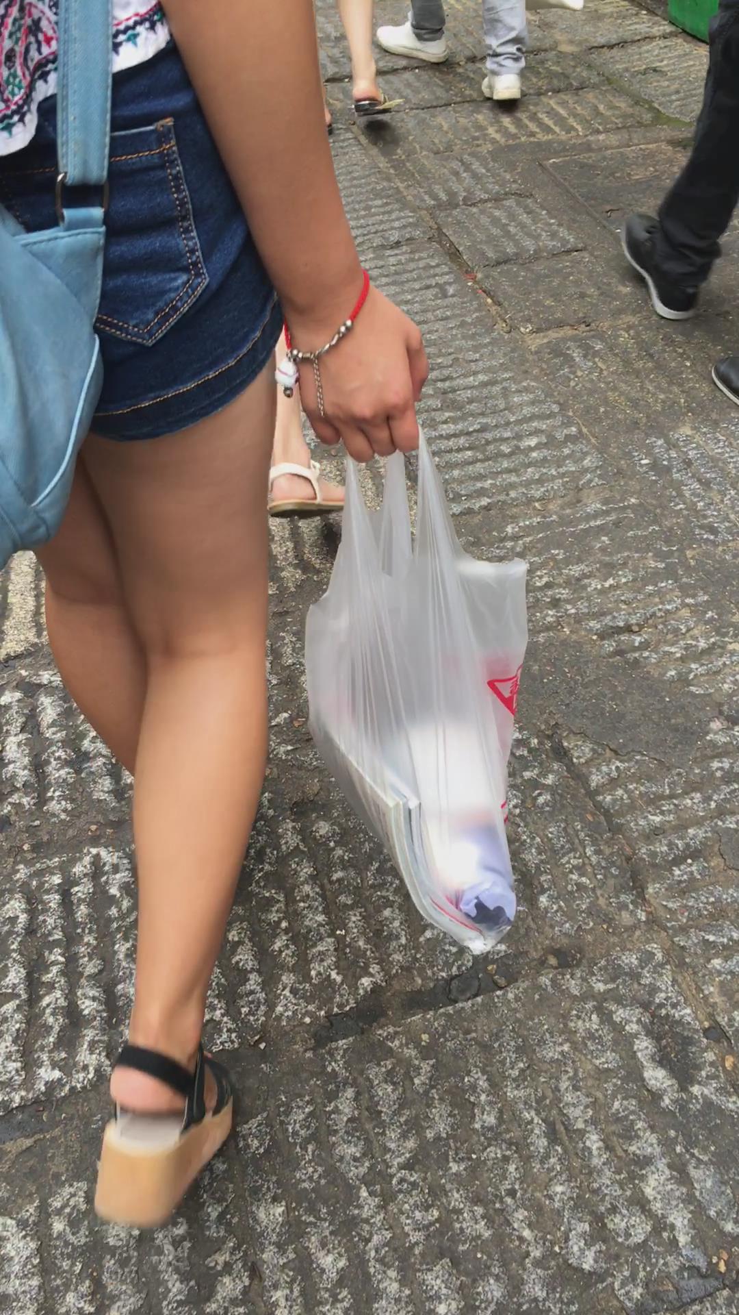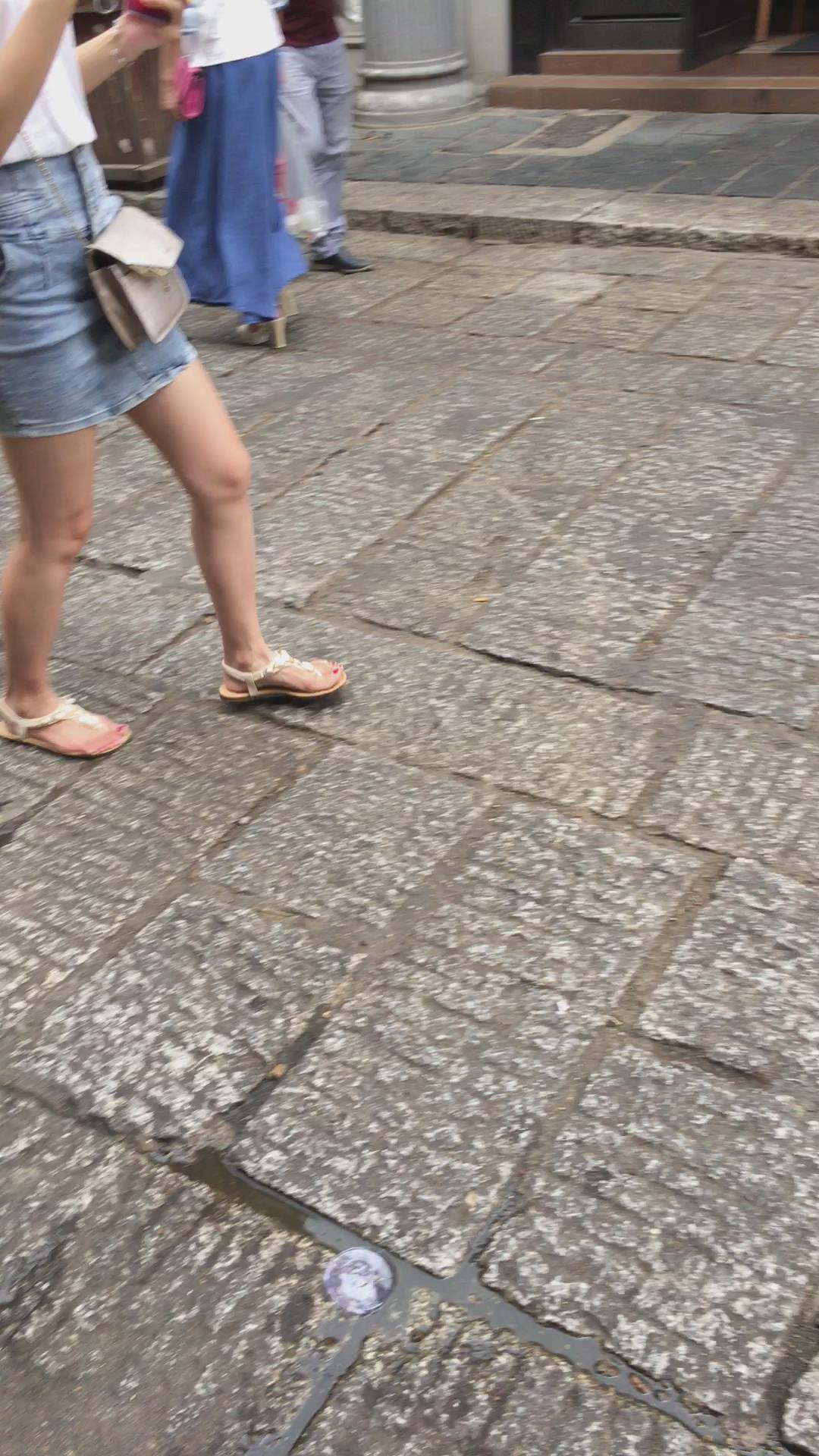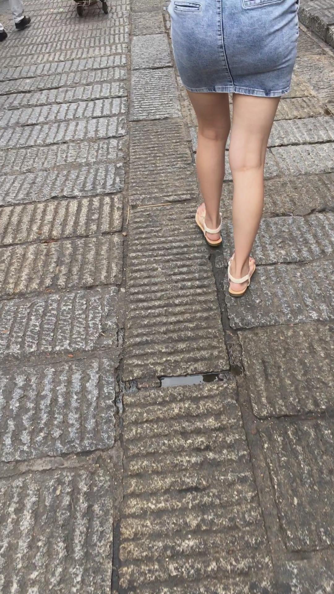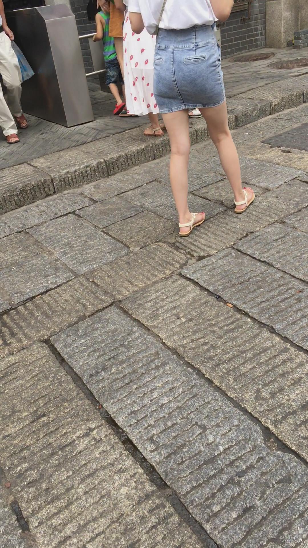 | 街拍牛仔短裙白T恤娇小身材可爱小美女 编号2181 |