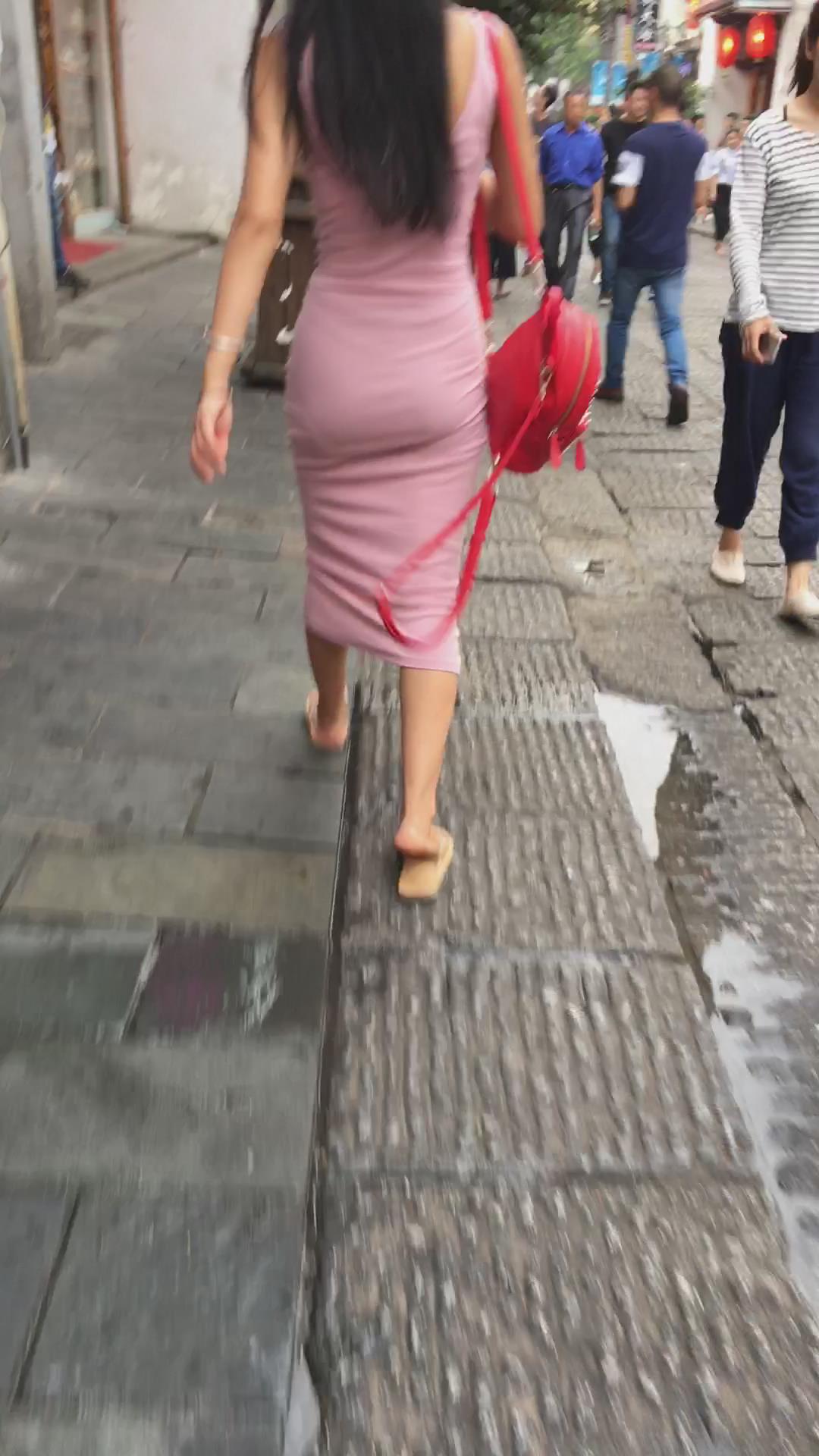 | 街拍粉色性感包臀裙极品美女 编号2193 |