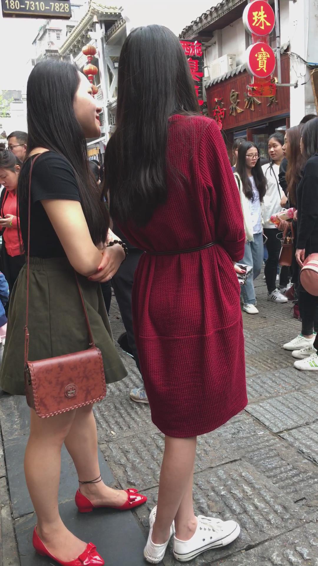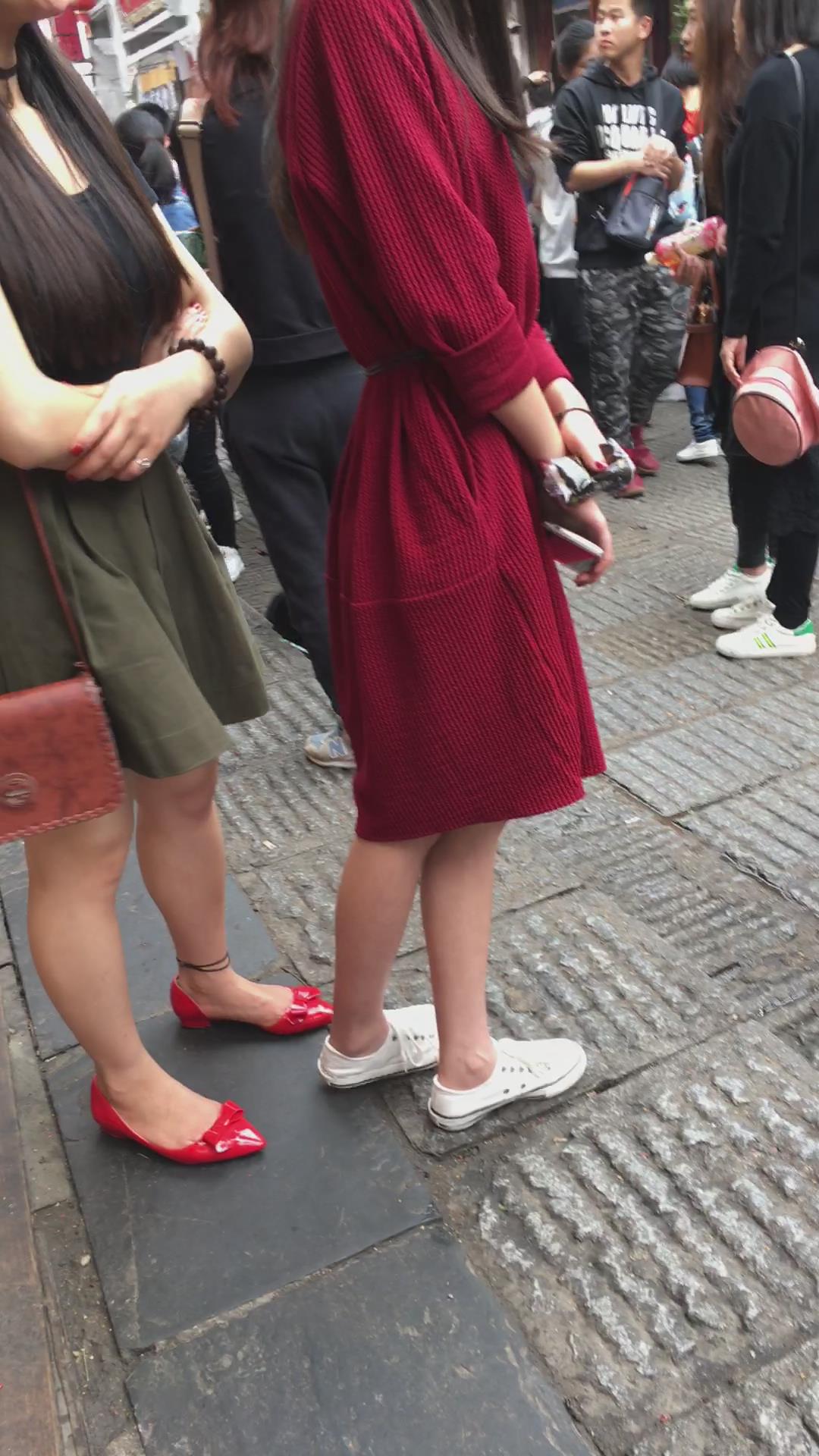 | 街拍大红色连衣裙漂亮学姐 编号2197 |
