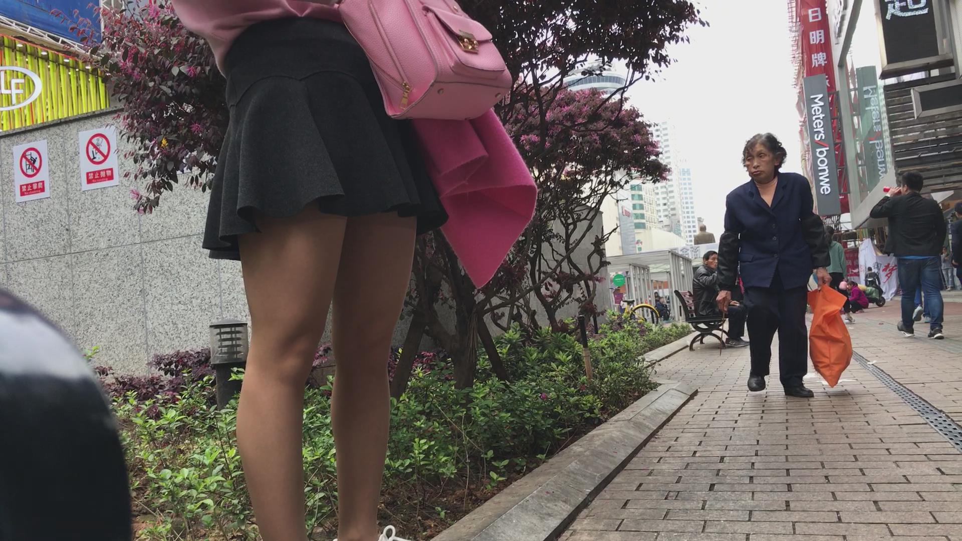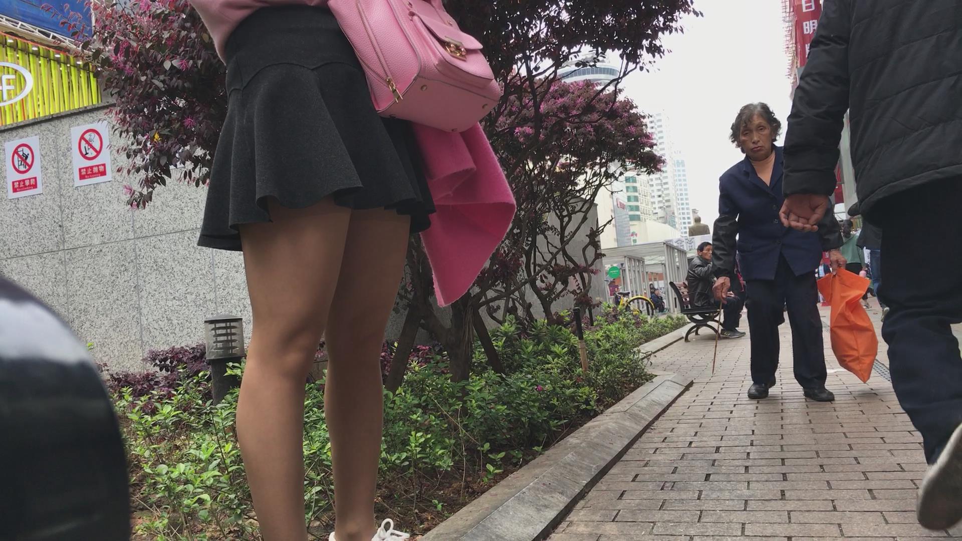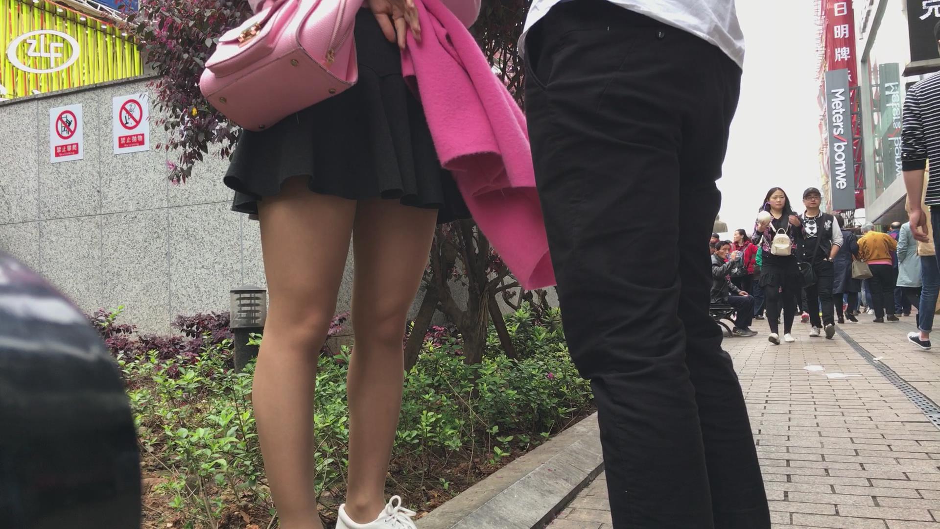 | 街拍短裙黑丝袜粉衣可爱学生妹 编号2201 |