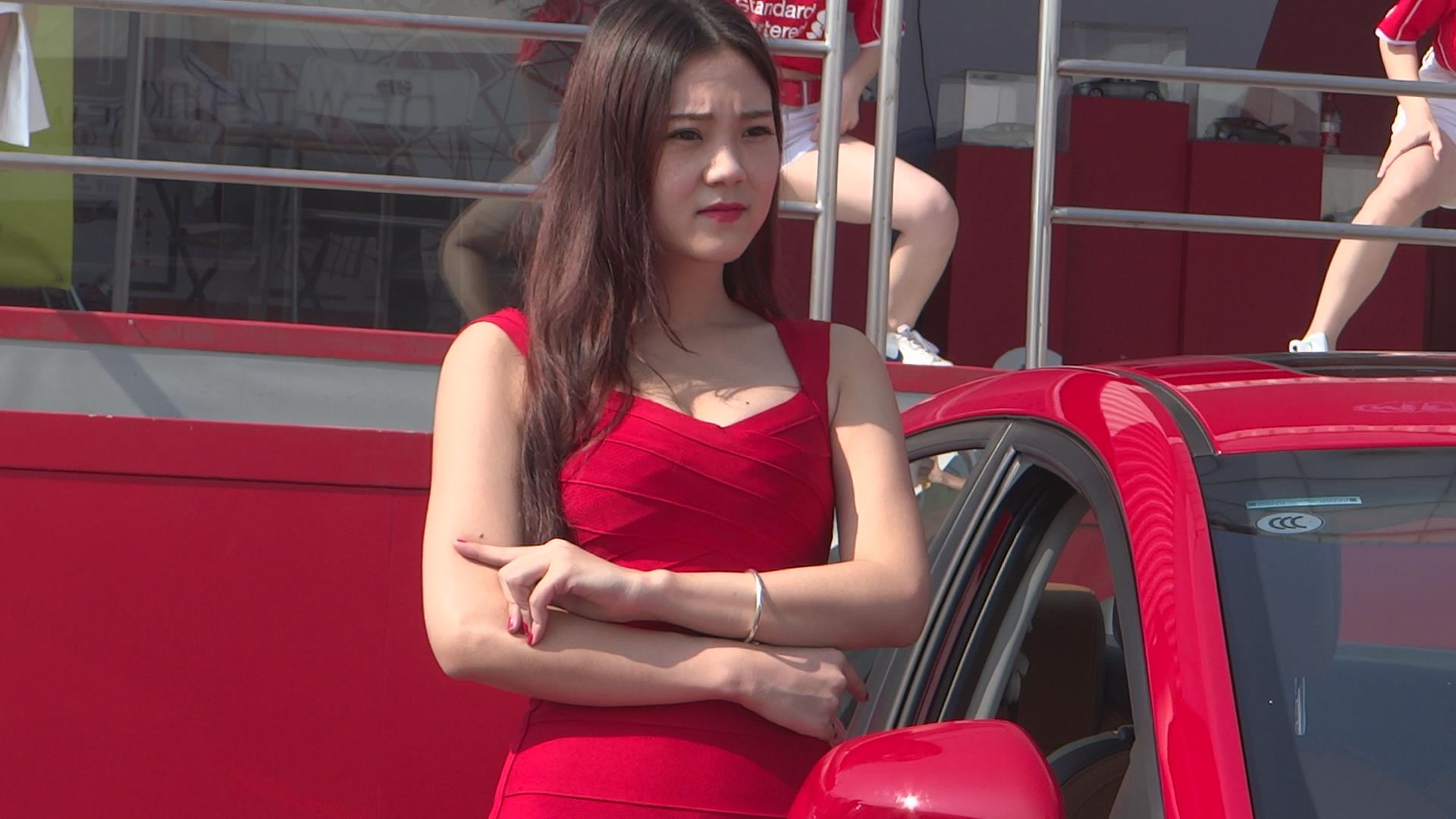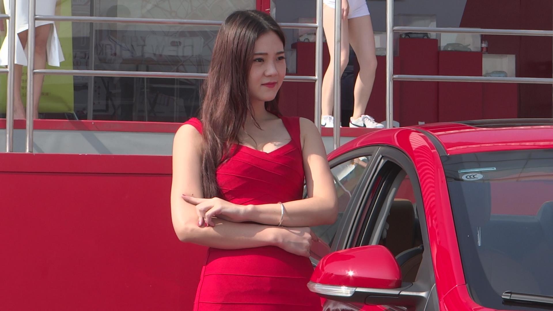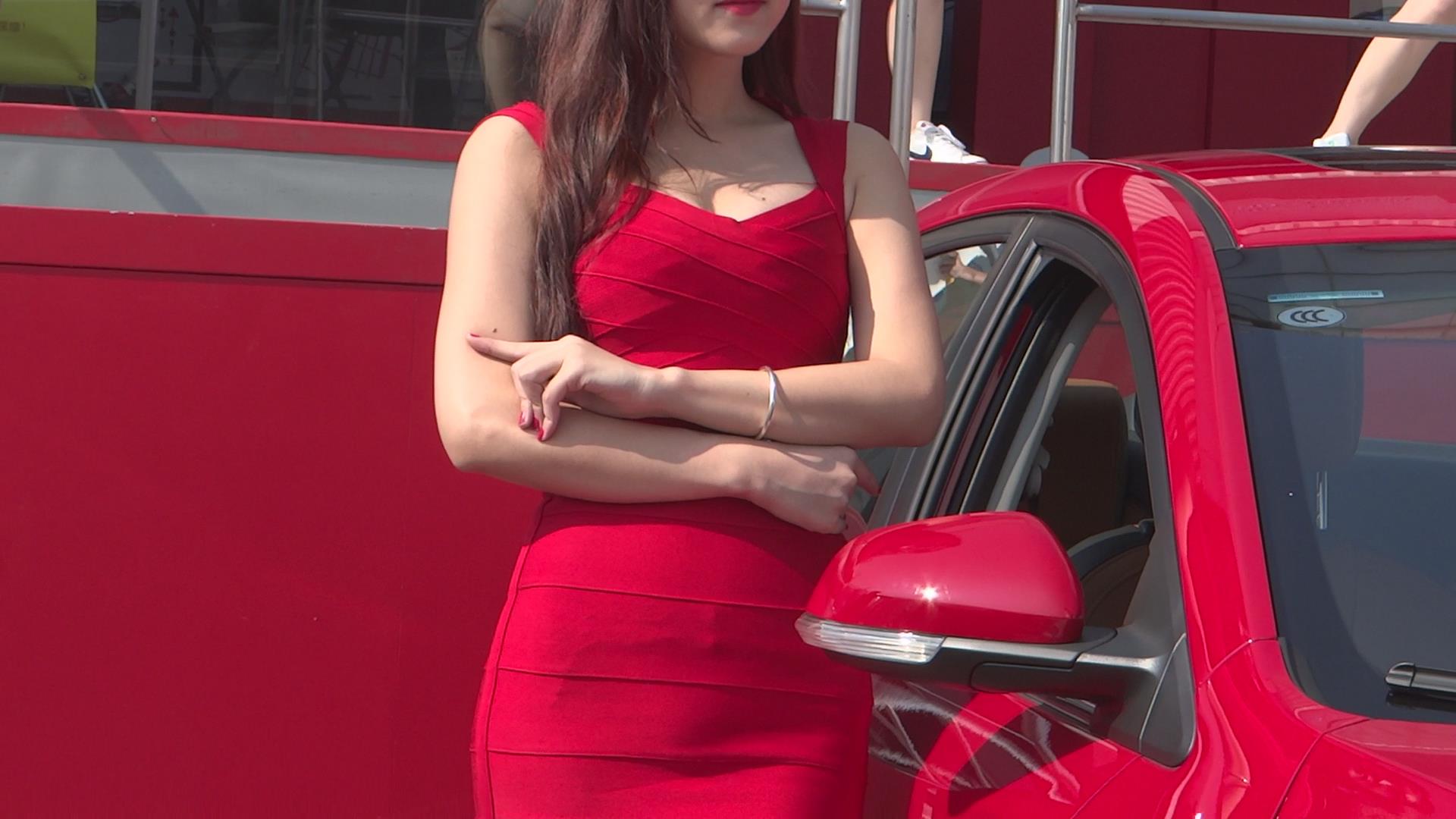 大红色包臀裙、鱼嘴高跟鞋丰满气质车模 编号2214 |