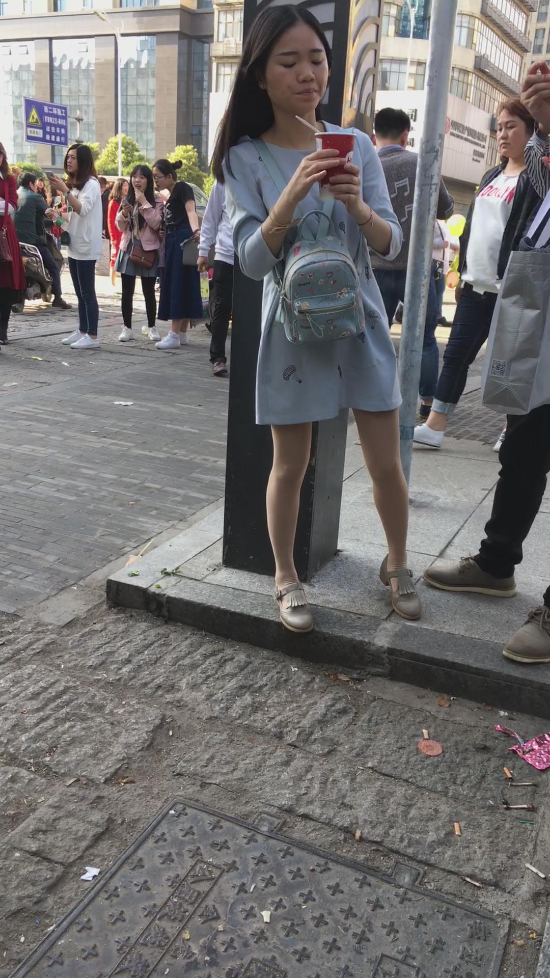 街拍美腿连衣裙清纯气质小姐姐路边吃雪糕 编号2220 |