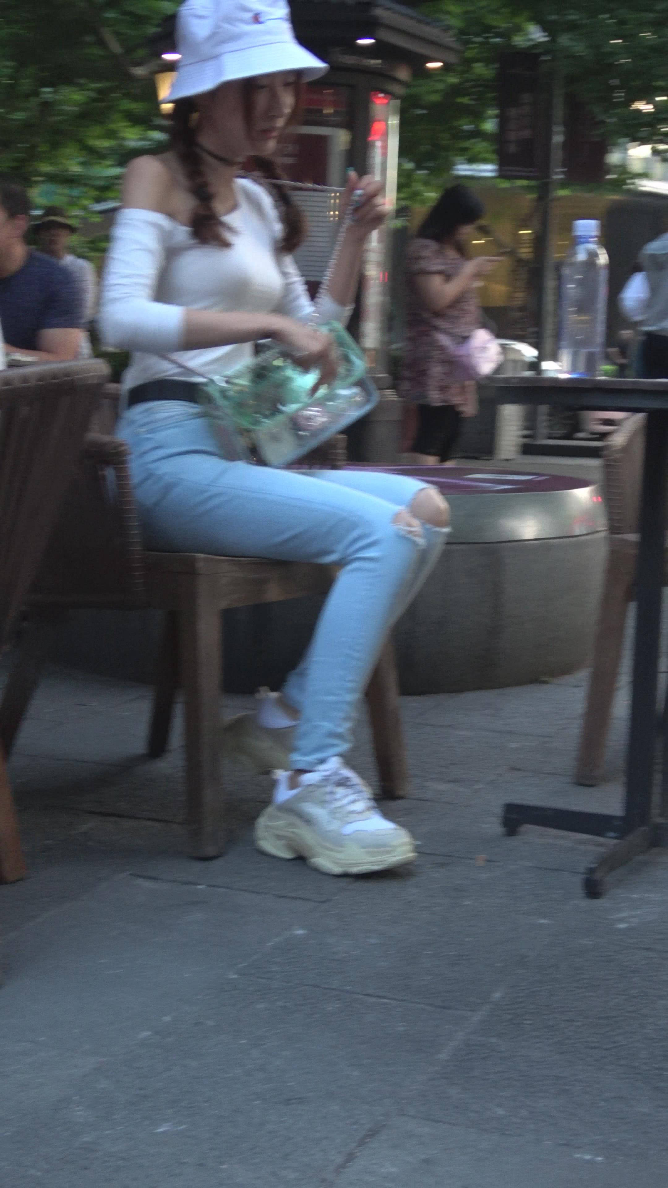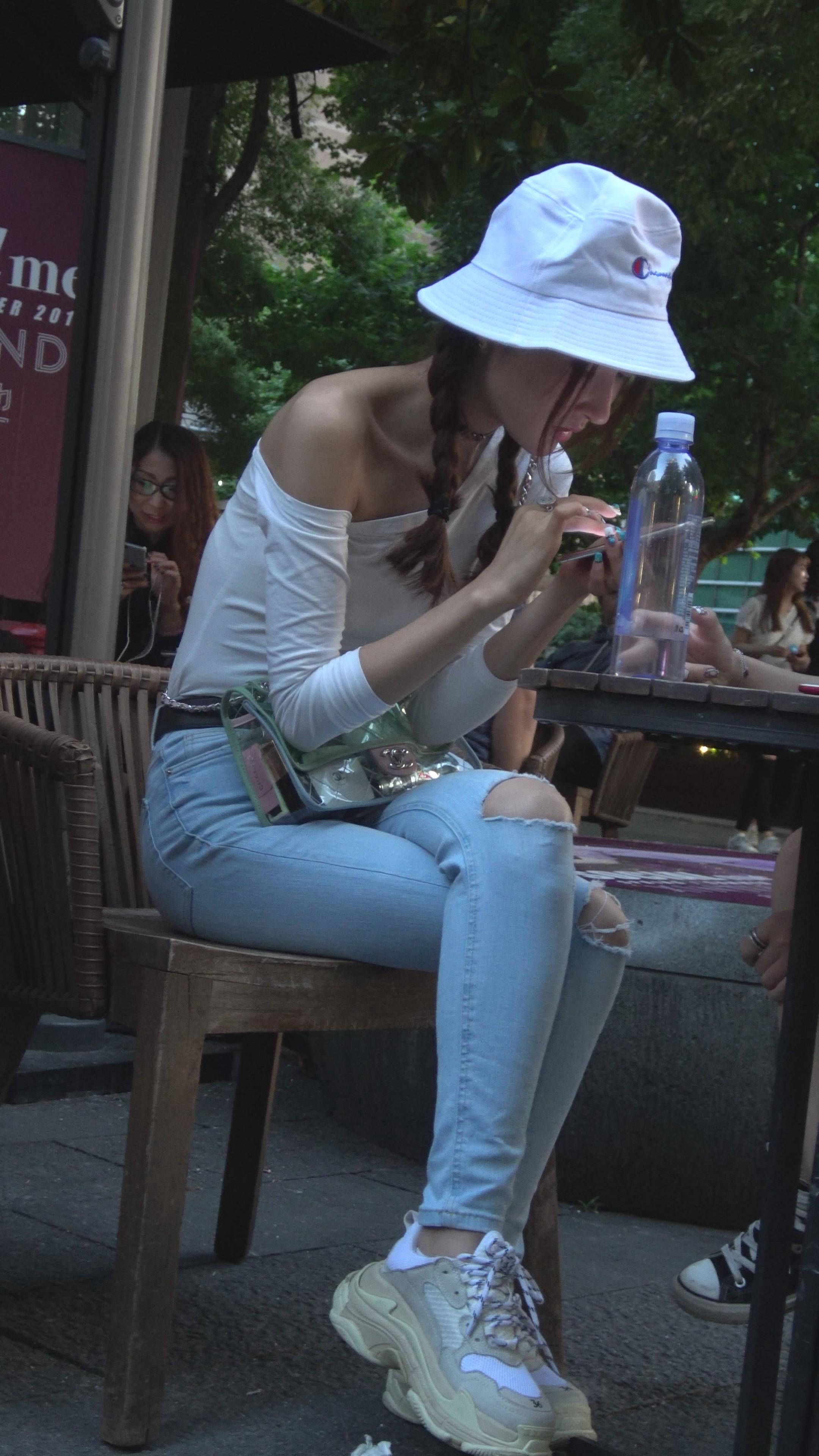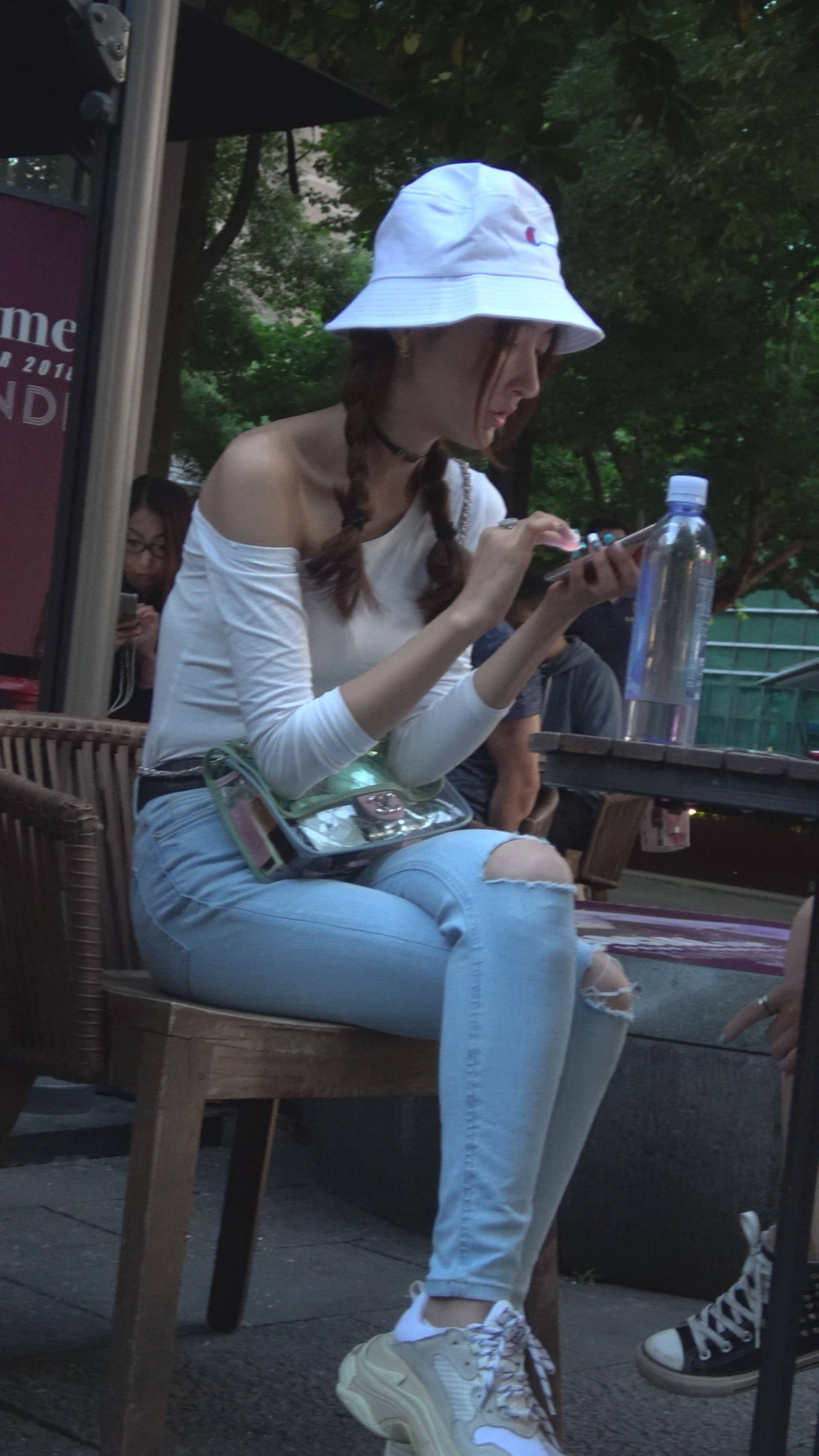 | 4K 破洞牛仔裤露肩小清新街拍美女 编号7969 |