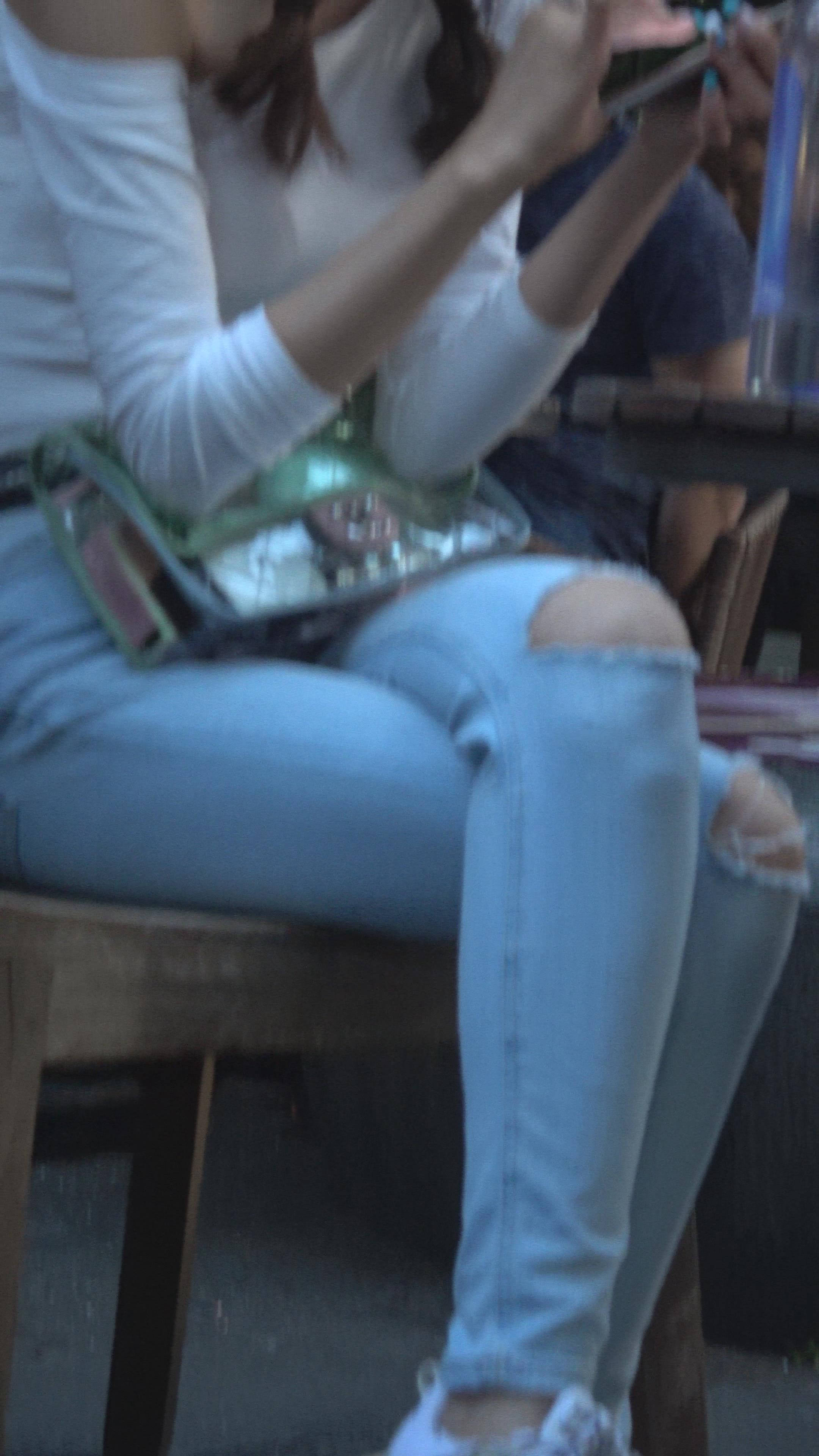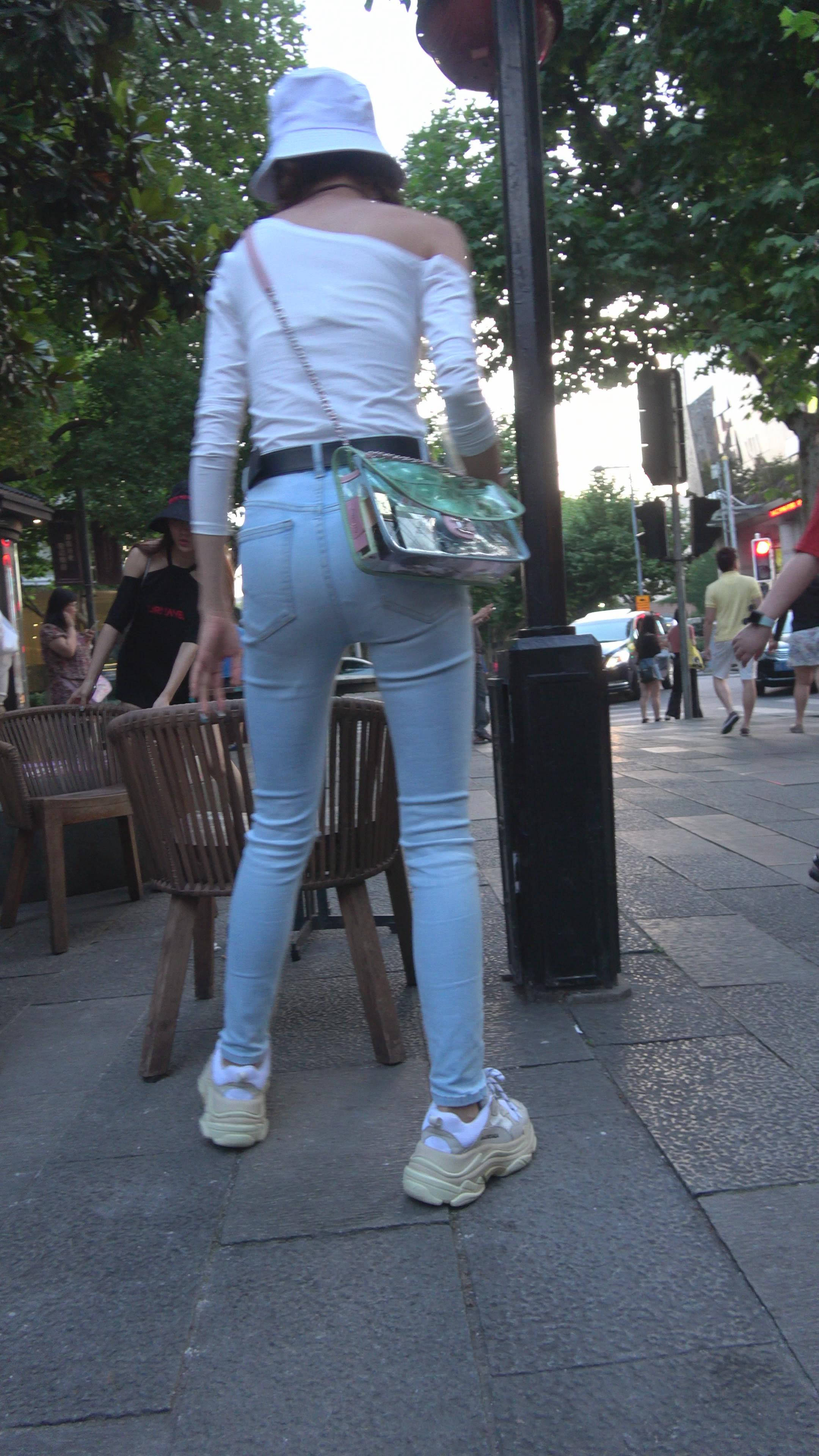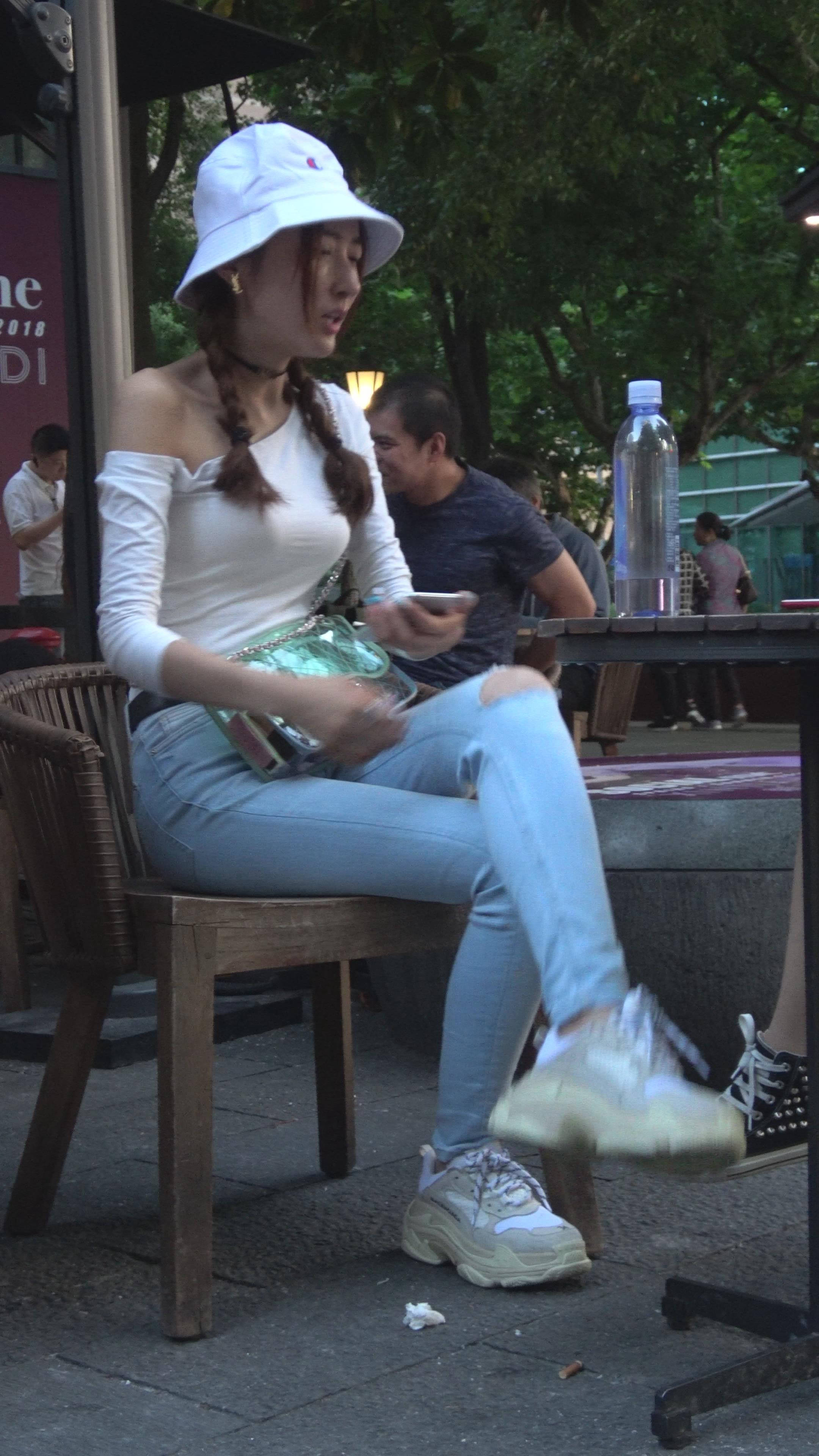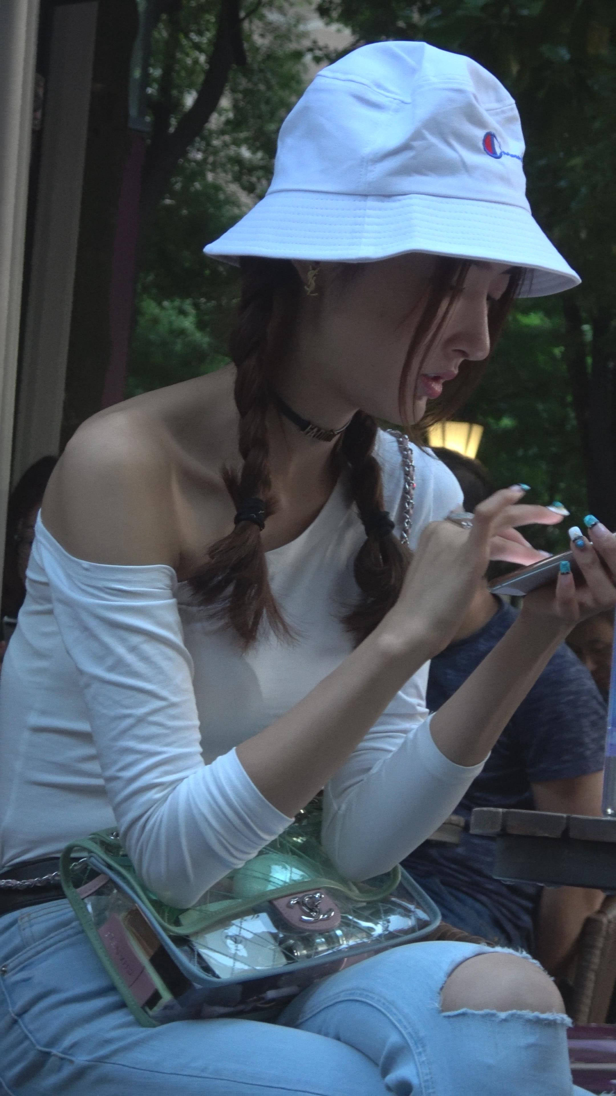 | 4K 破洞牛仔裤露肩小清新街拍美女 编号7969 |