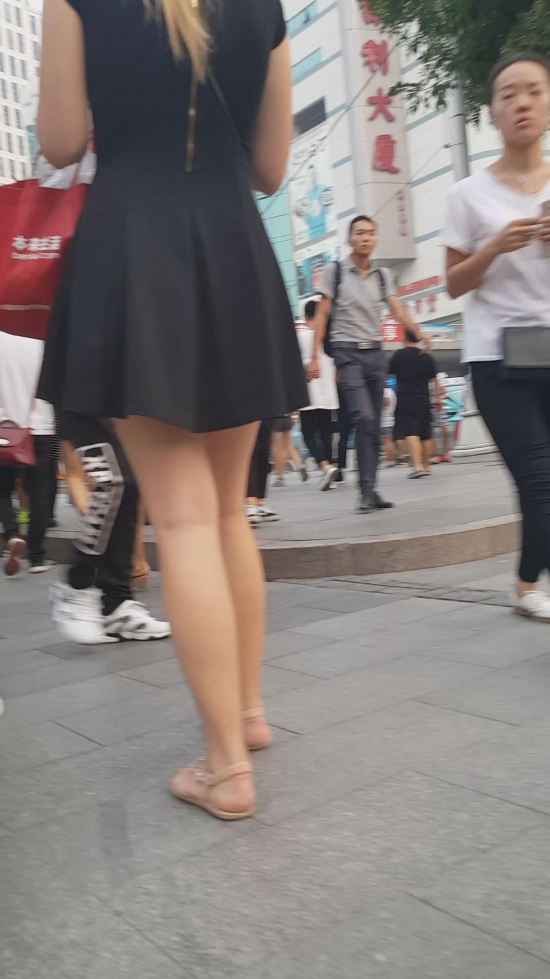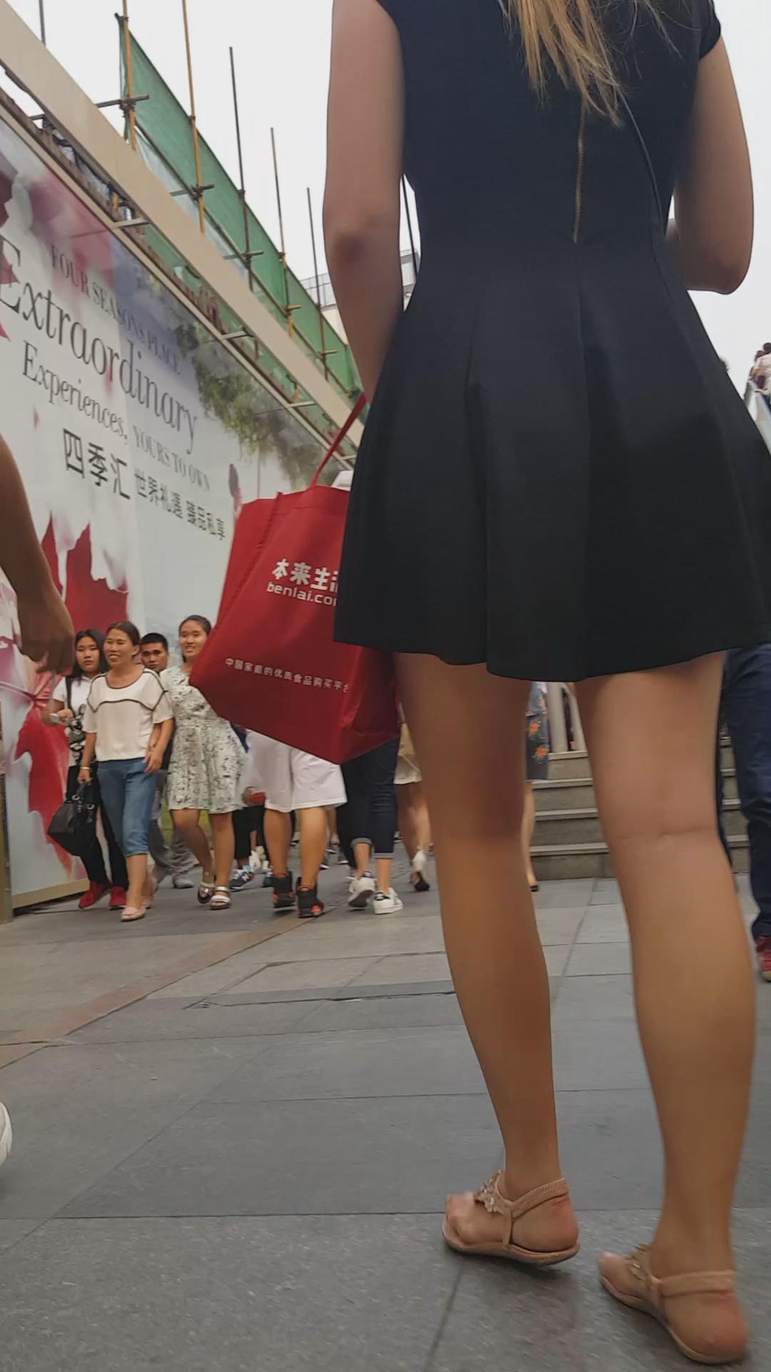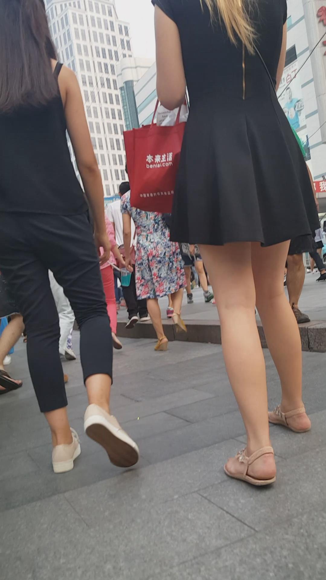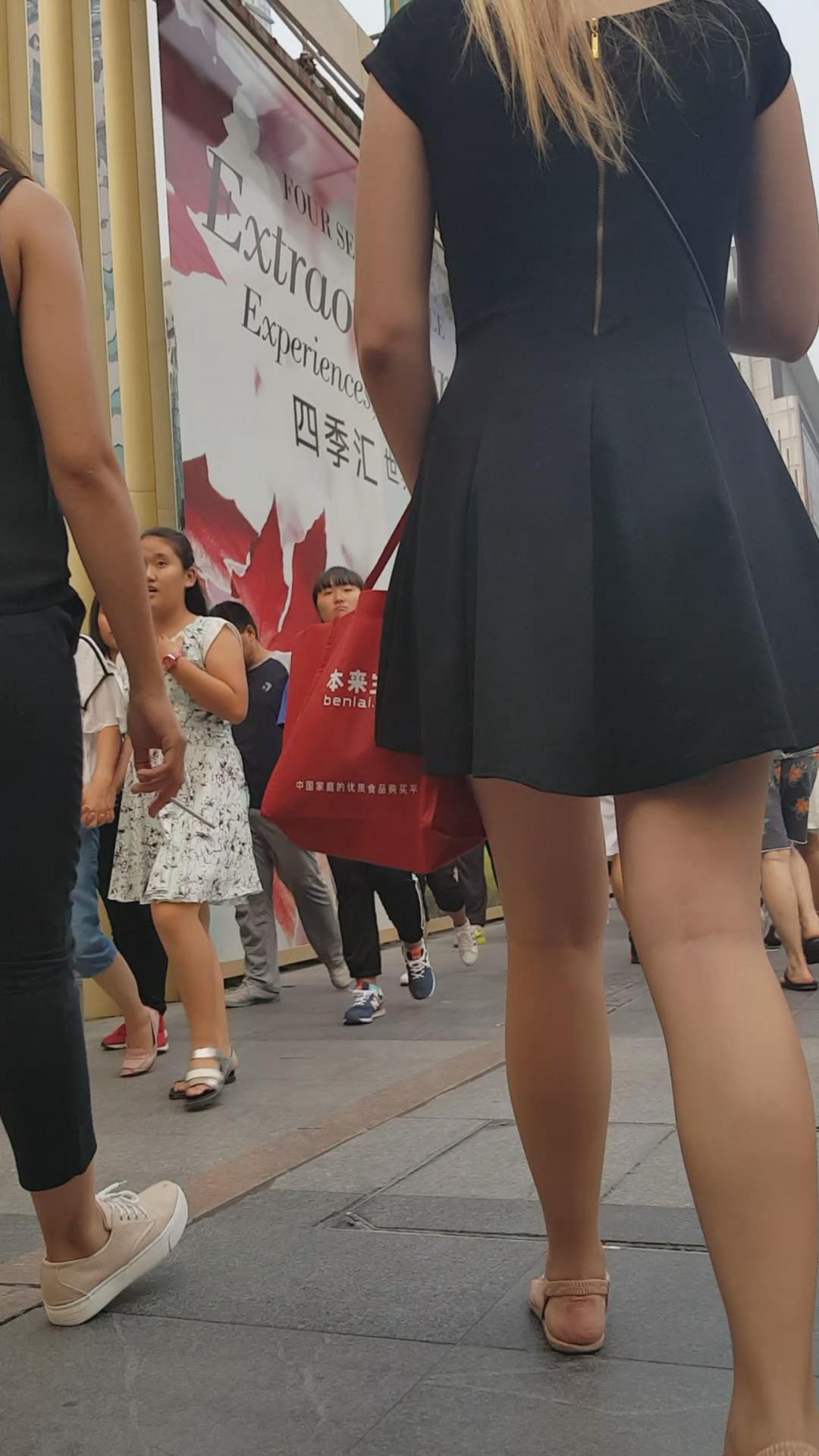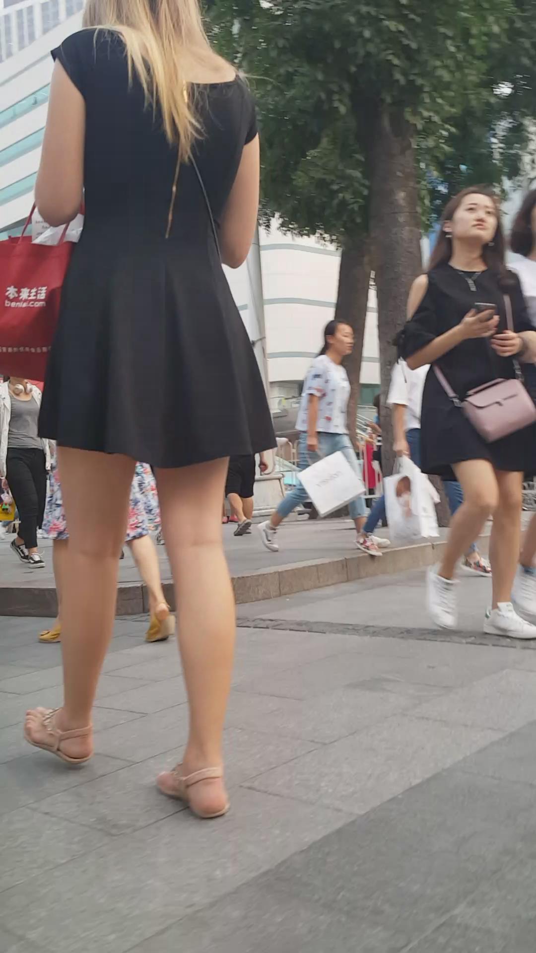 | 走路风度翩翩的黑色连衣裙外国美女 编号2277 |