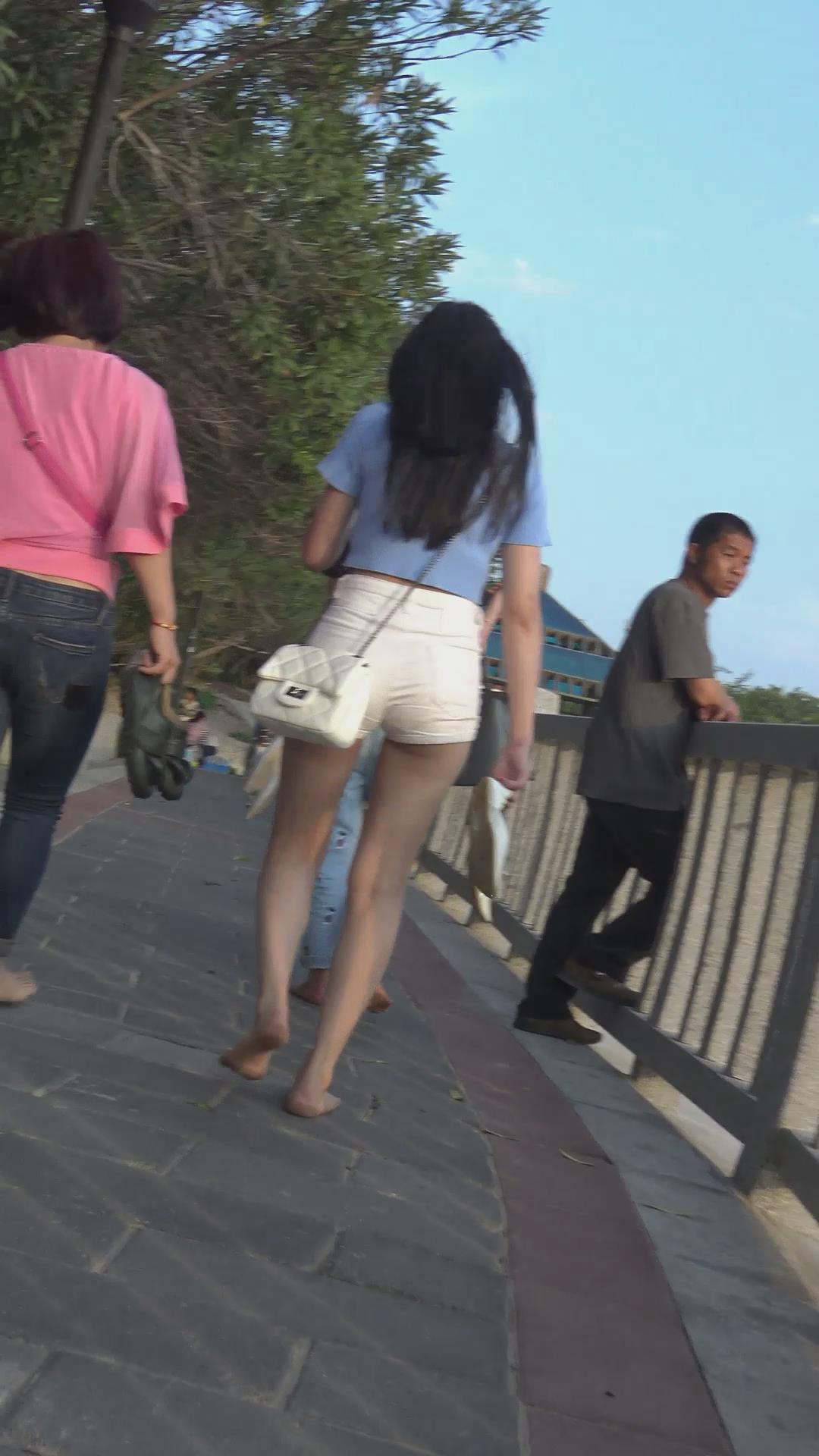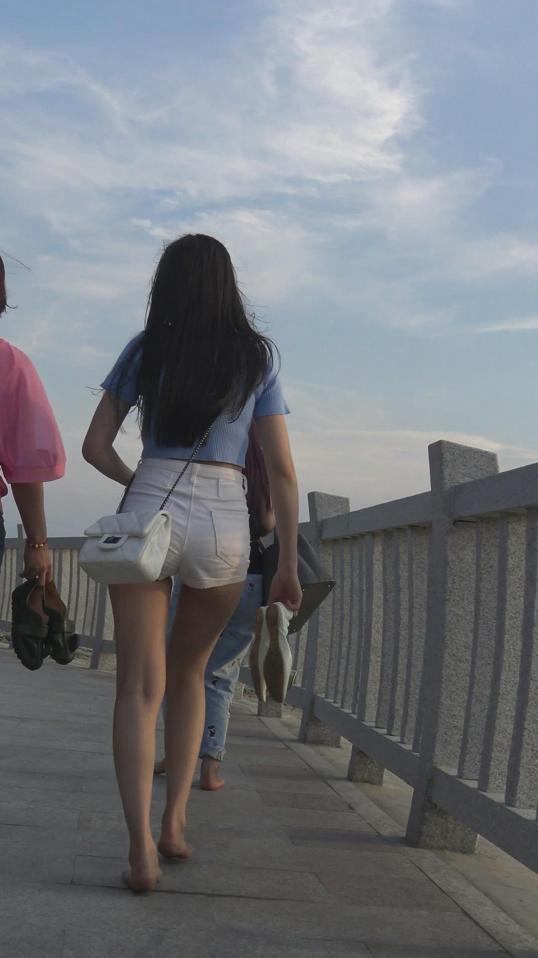| 街拍赤脚去海边玩耍的白短热裤美臀少女 编号4649 |