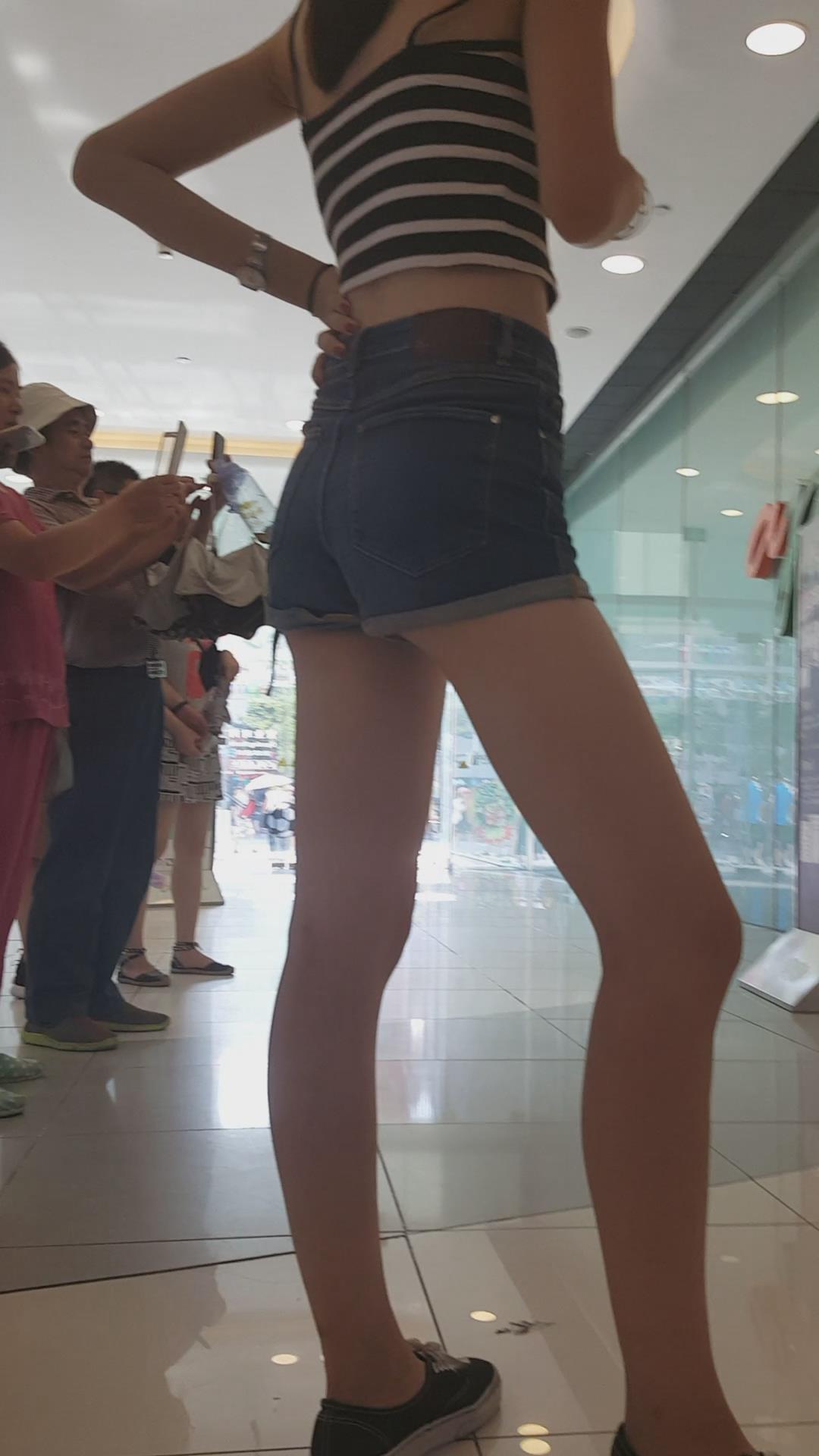 | 商场内拍摄性感高腰长腿牛仔热裤美女。 编号4651 |
