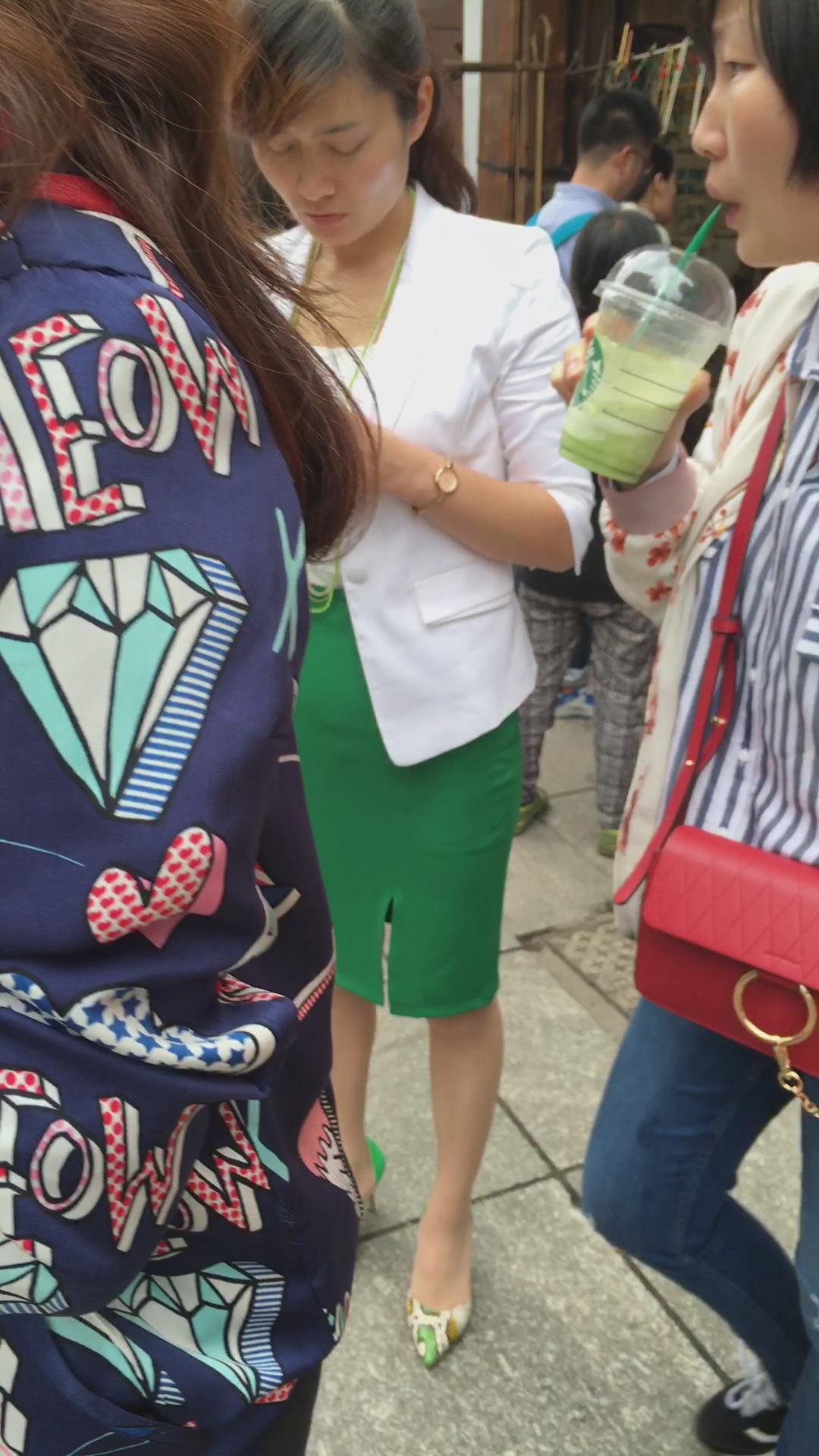 | 街拍绿色OL包臀裙高跟鞋轻熟女,很有韵味 编号2360 |