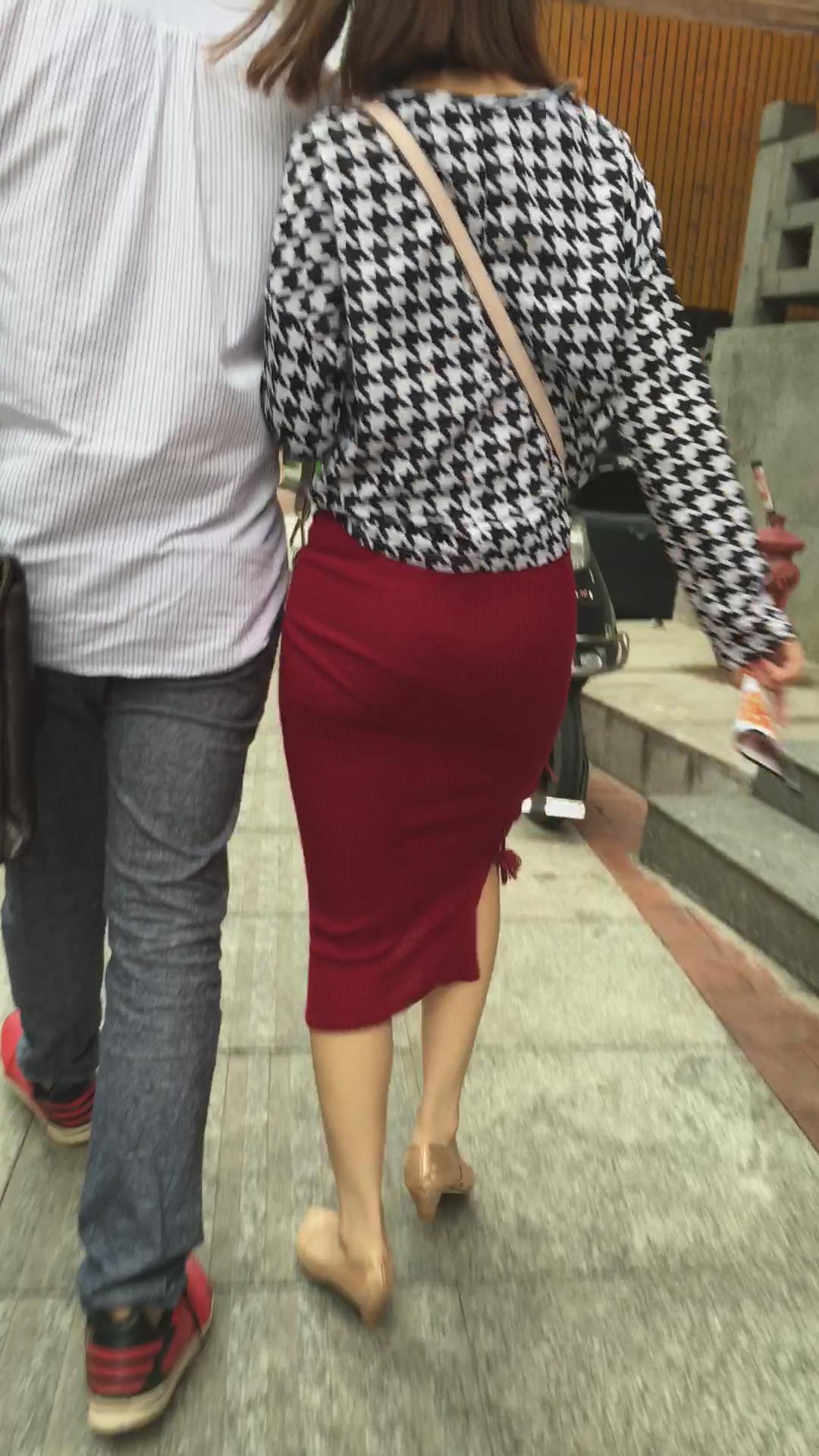| 陪男友逛街的红色包臀裙丰满MM 编号2372 |
