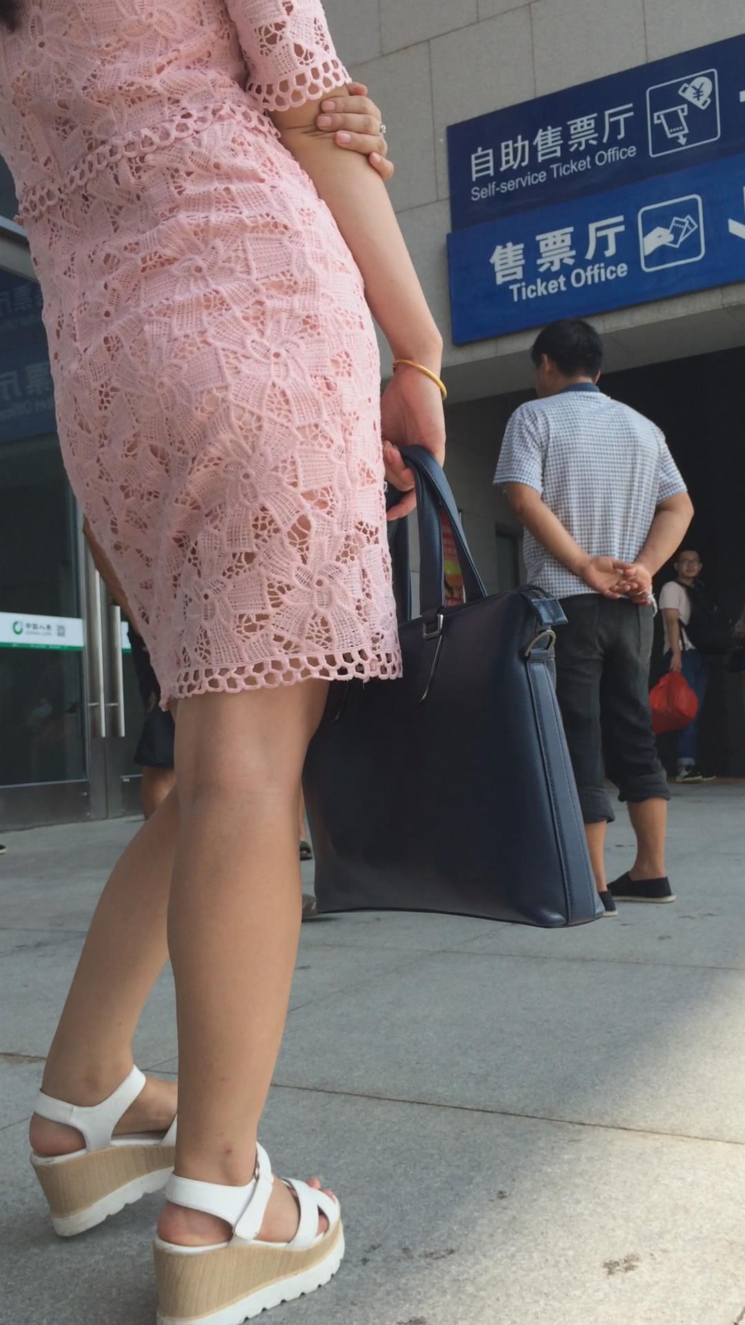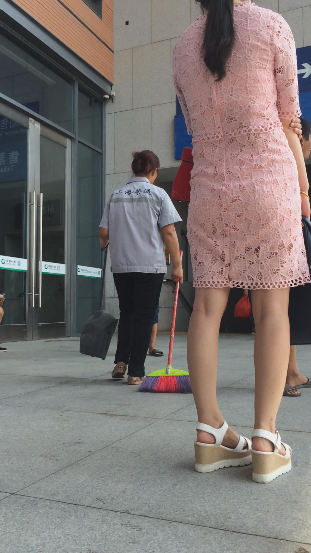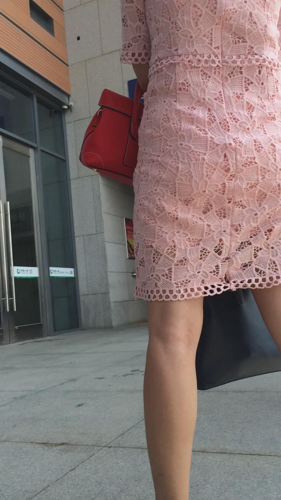 | 街拍粉色镂空连衣裙光腿美女 编号2418 |
