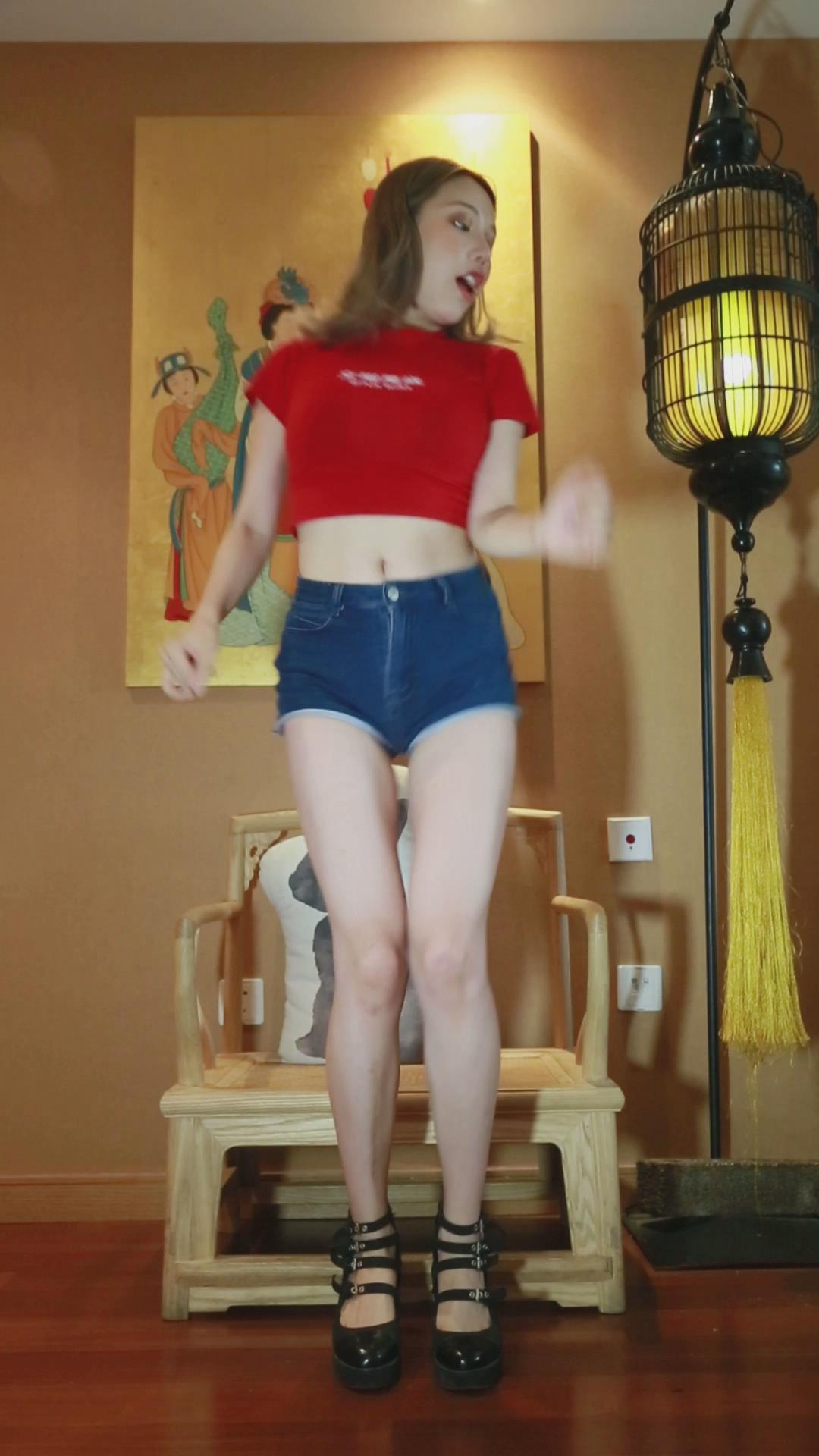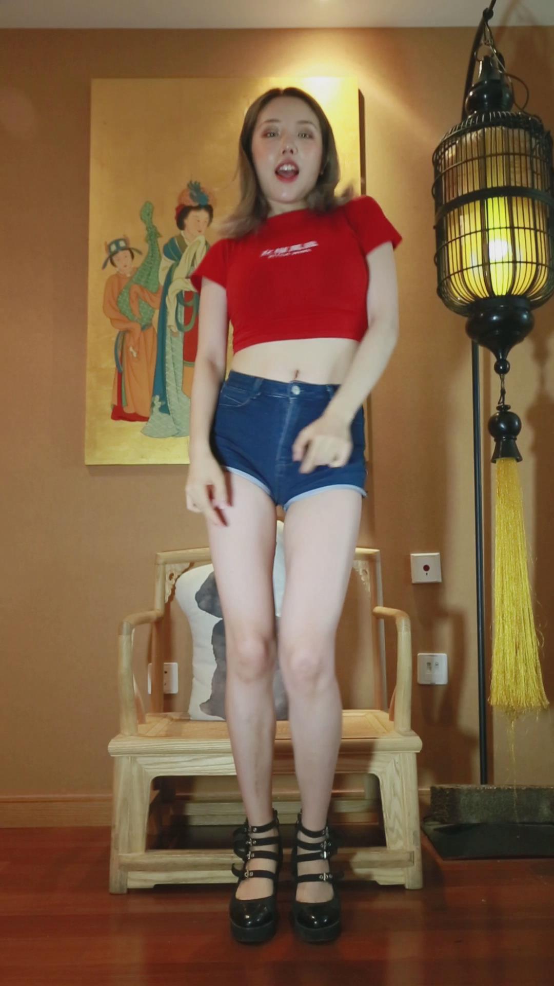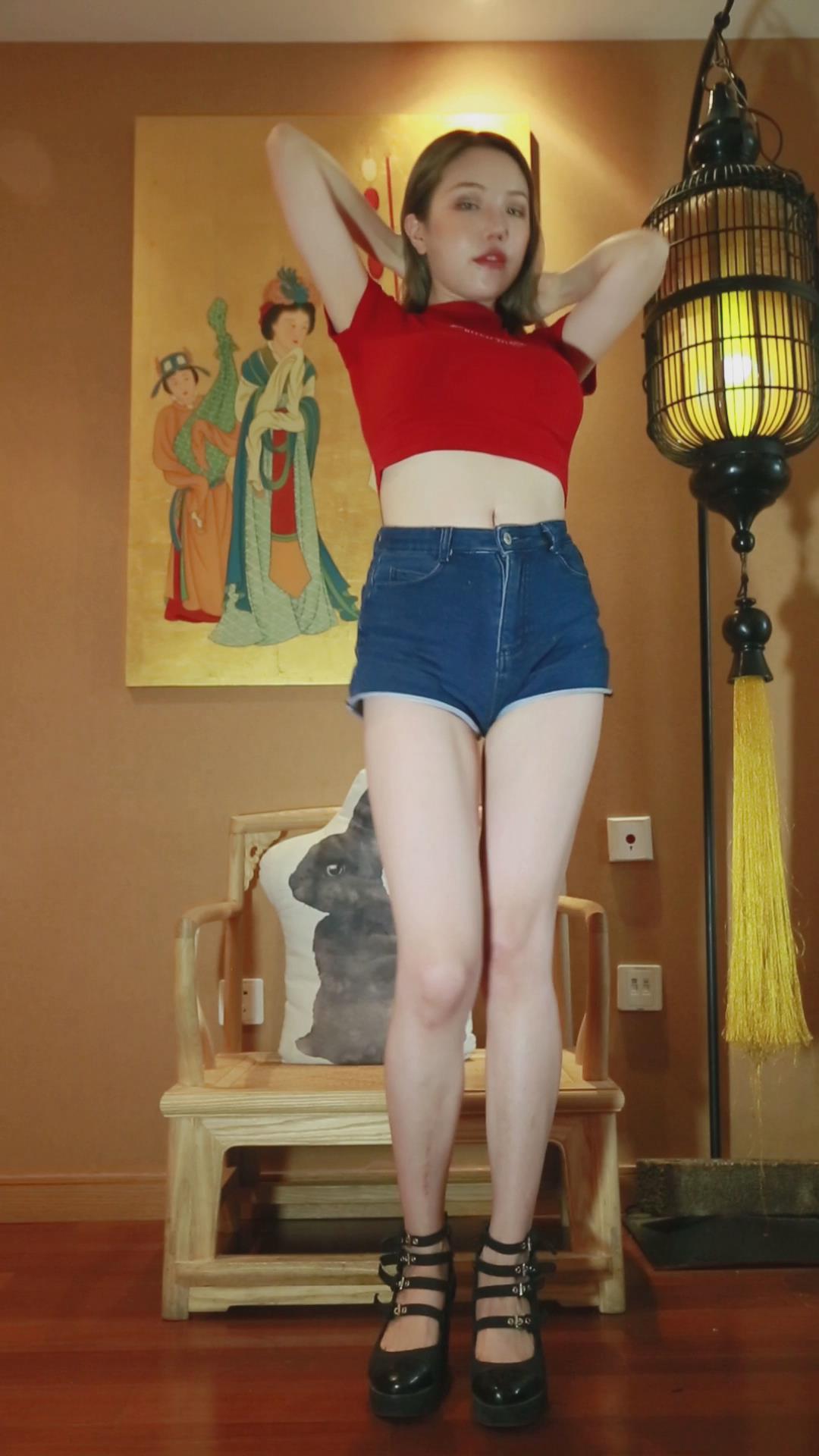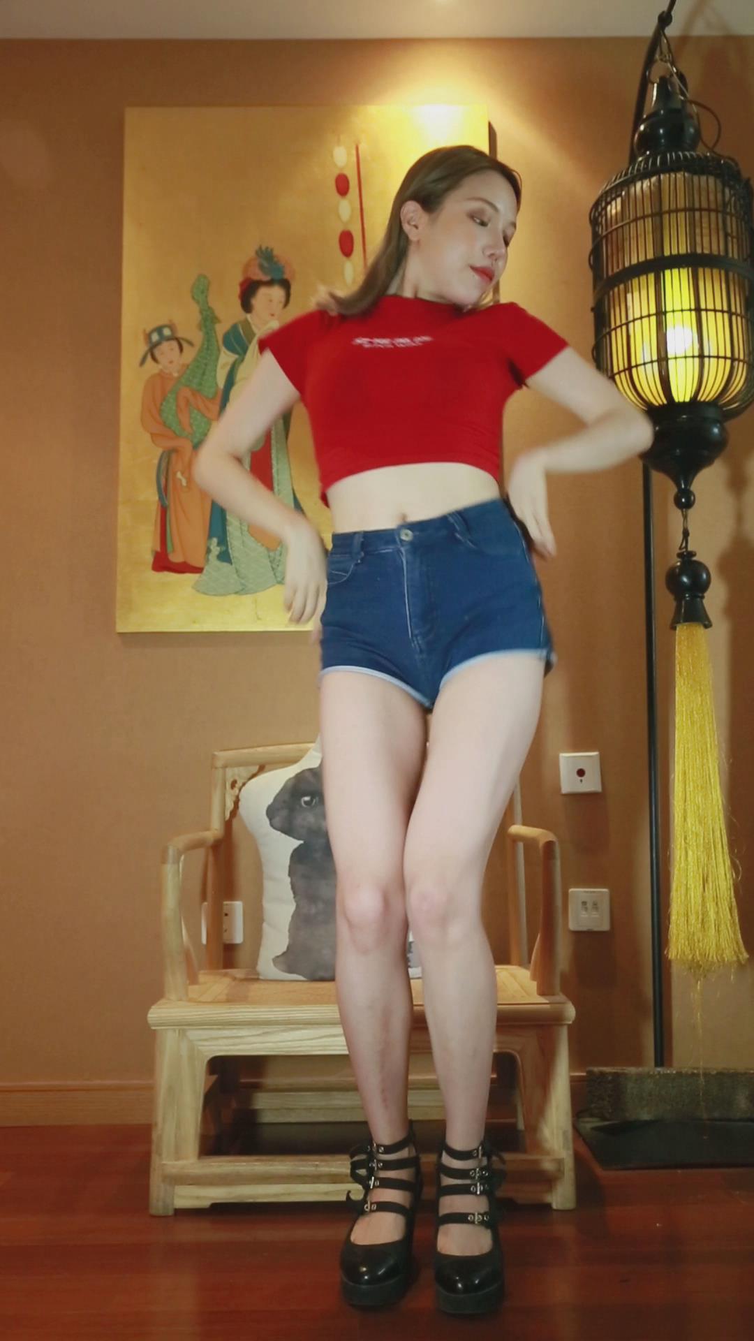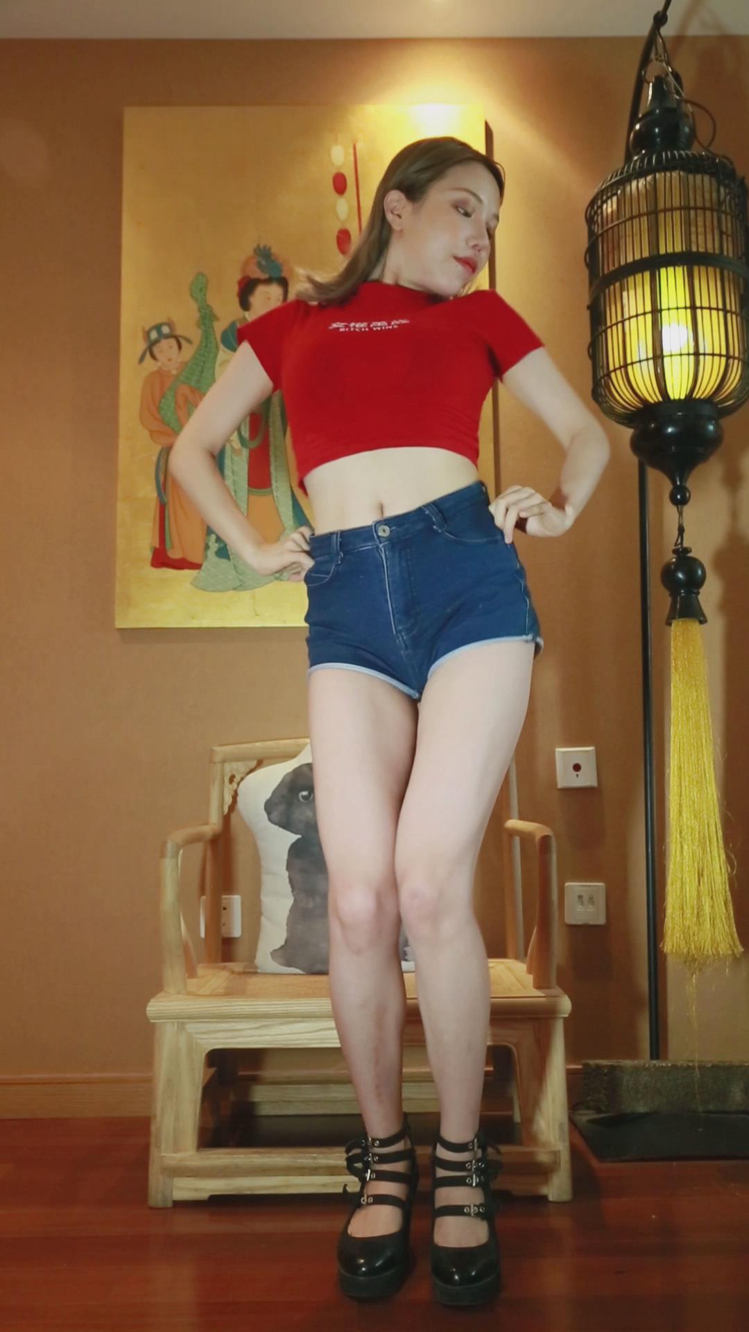 | 红衣牛仔短裤靓妹正面慢摇 编号6690 |