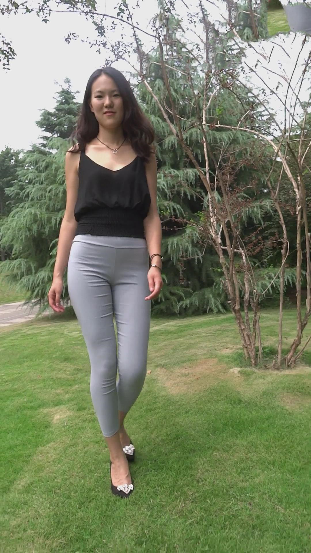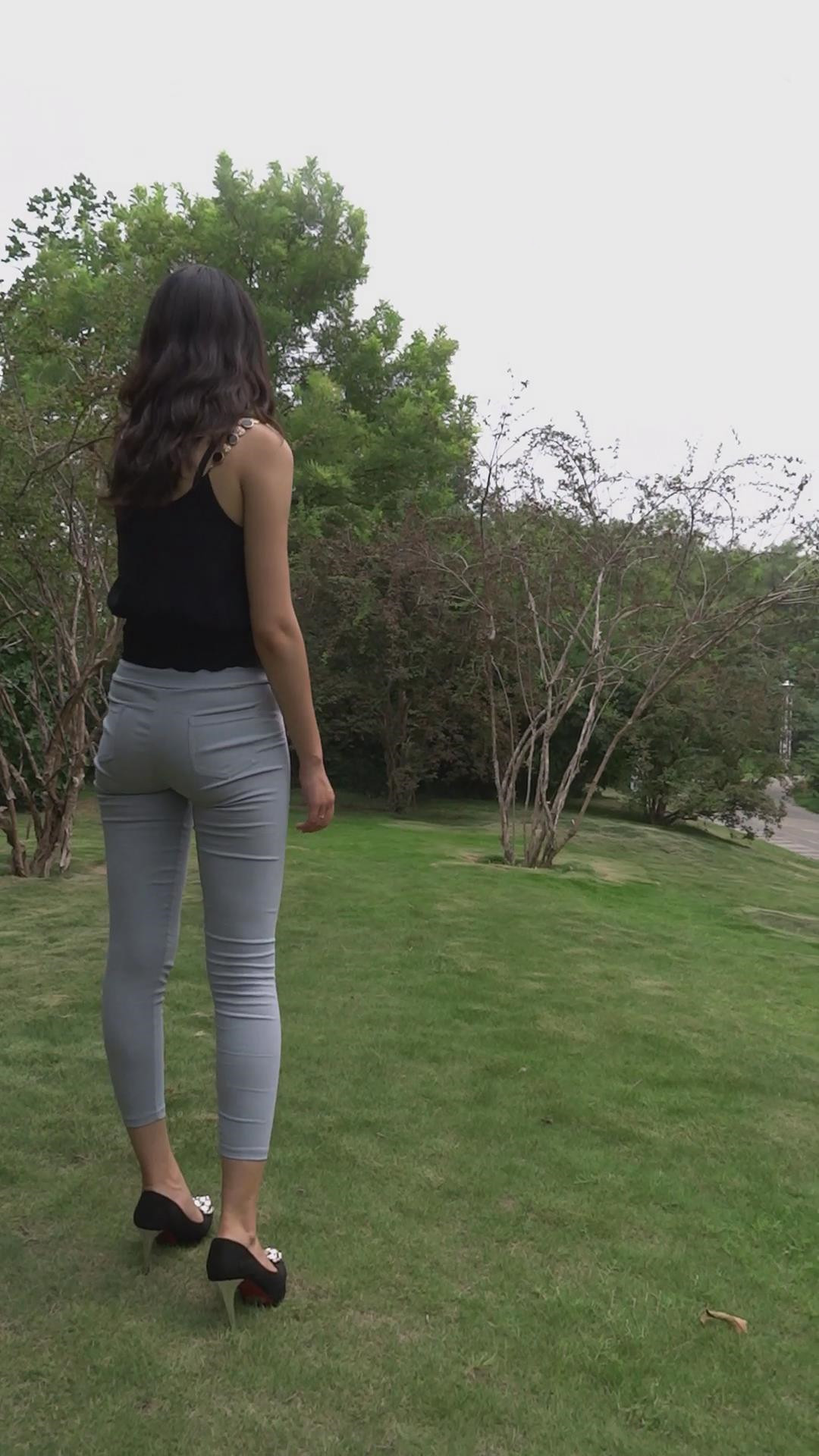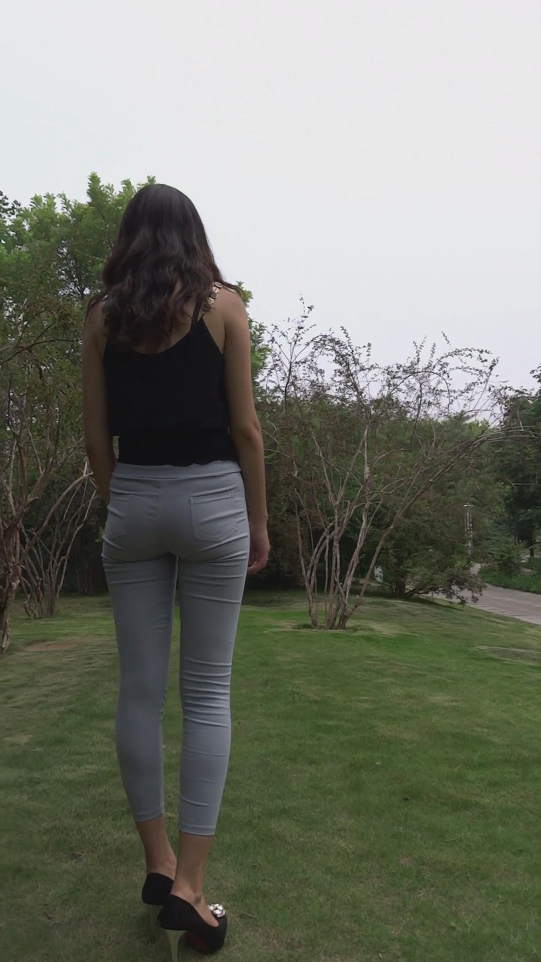 | 公园模拍紧身宽臀灰色紧身裤美女 编号6884 |