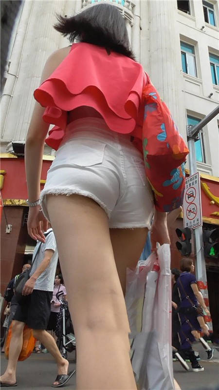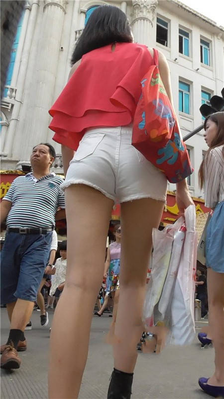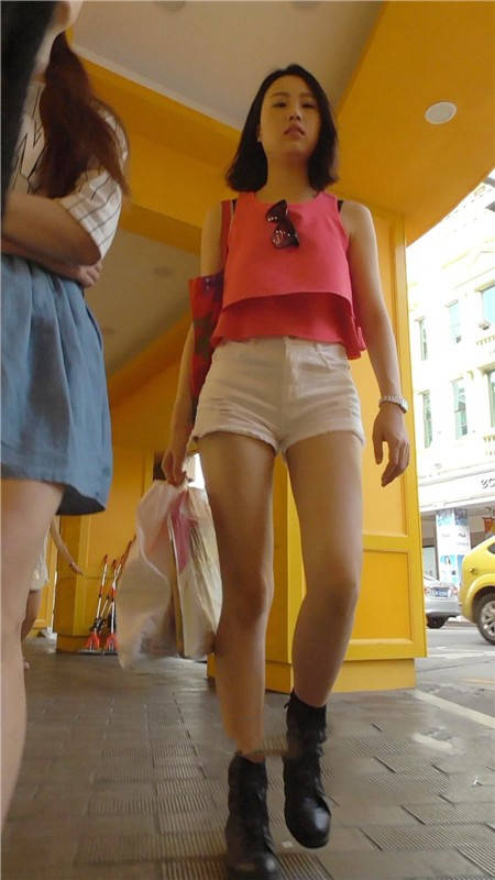 | 【编号696】街拍皮肤白皙的长腿白热裤MM |