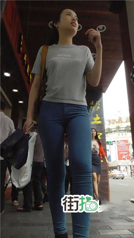 | 【编号710】街拍极品嫩白紧身牛仔MM |