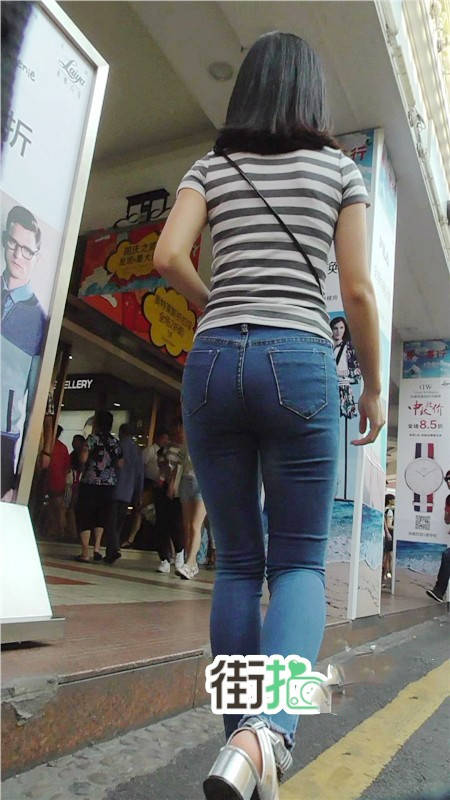 | 【编号721】街拍细腰长腿紧身牛仔MM |
