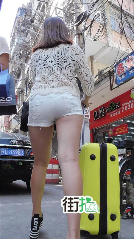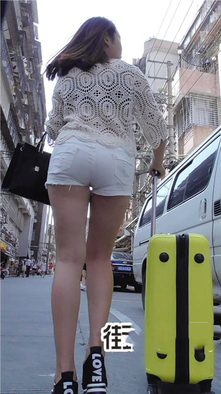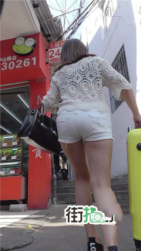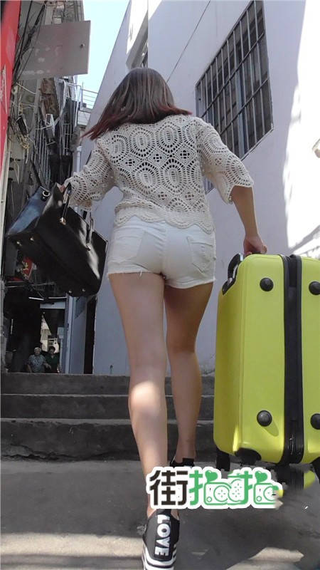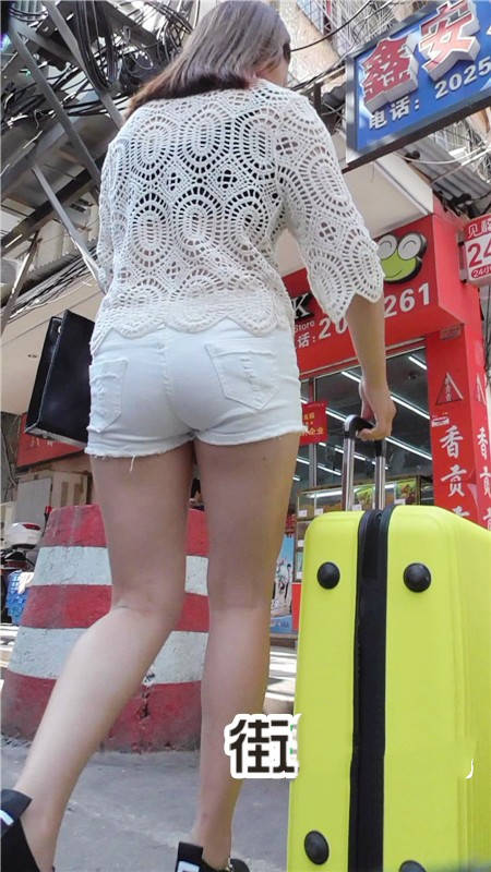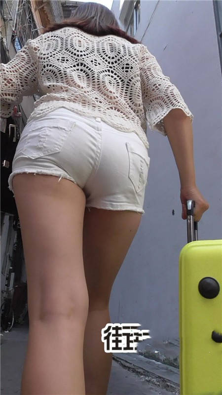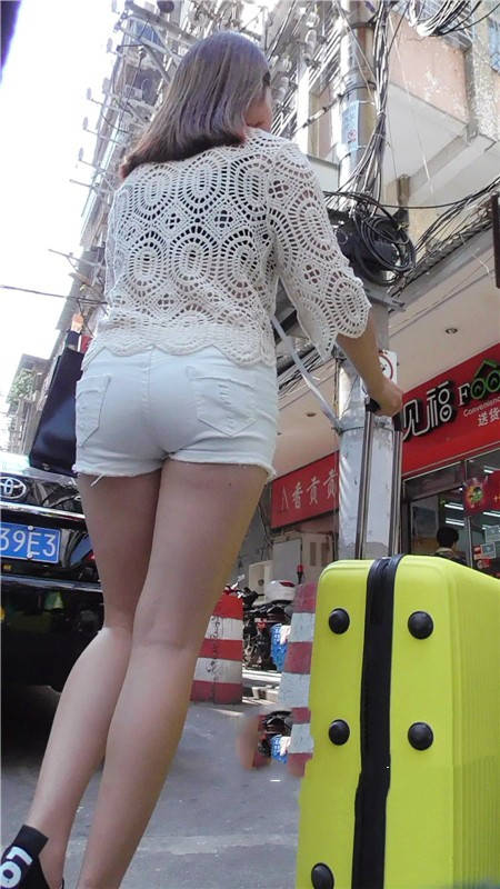 | 【编号723】街拍提旅行箱的白色热裤长腿MM |