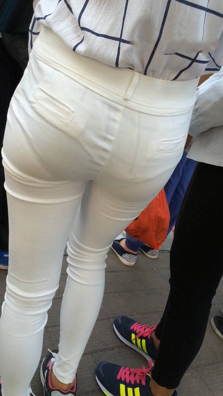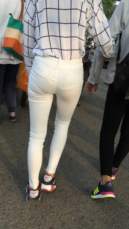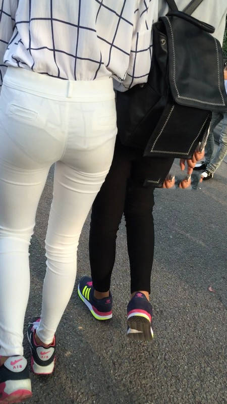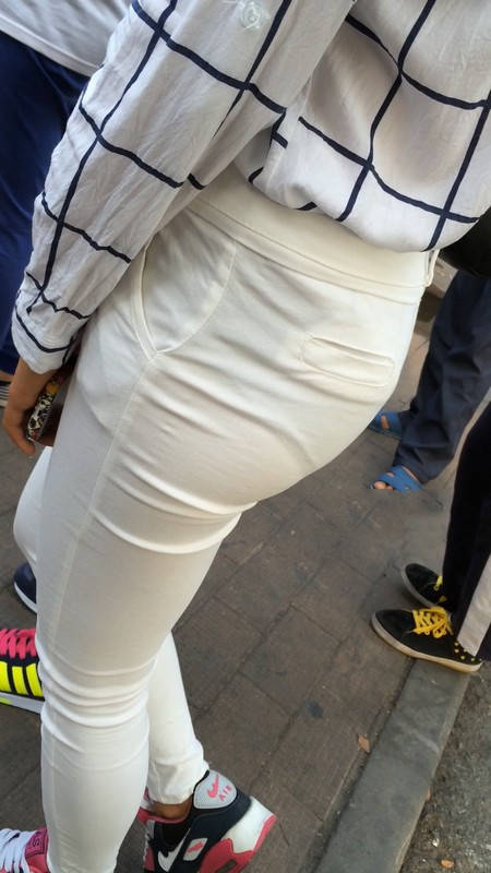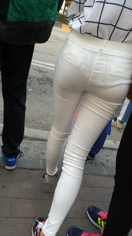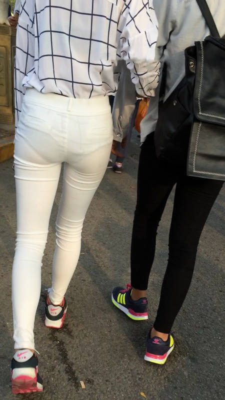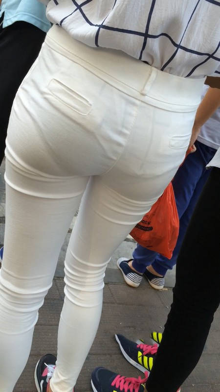 | 【编号758】街拍超紧身白裤苗条学生妹 |