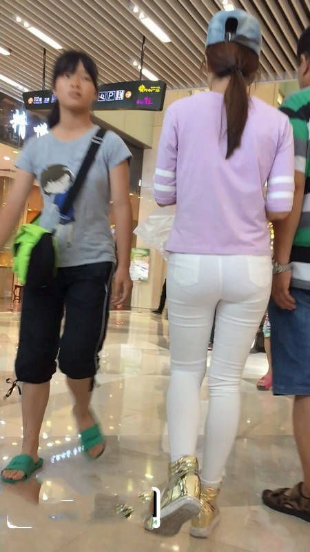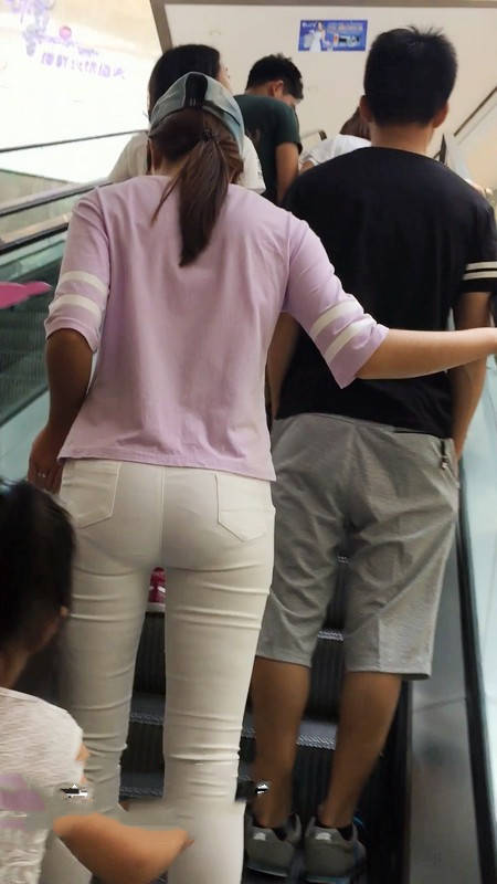 | 【编号777】街拍上电梯的紧身白裤翘臀MM |