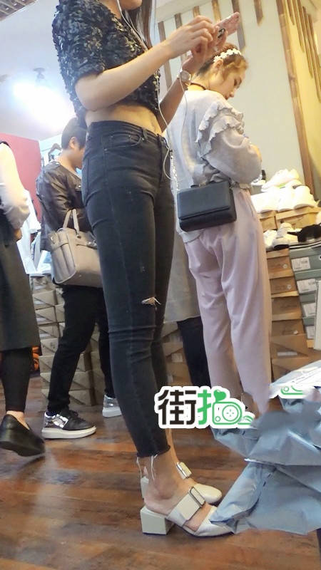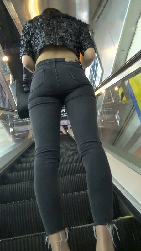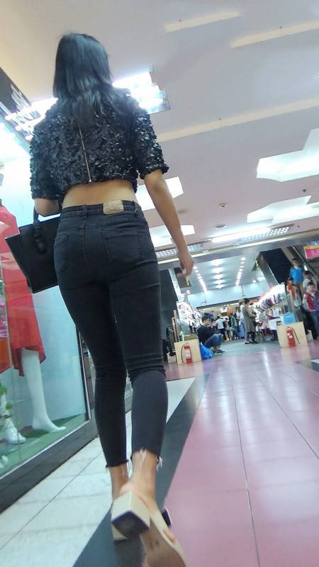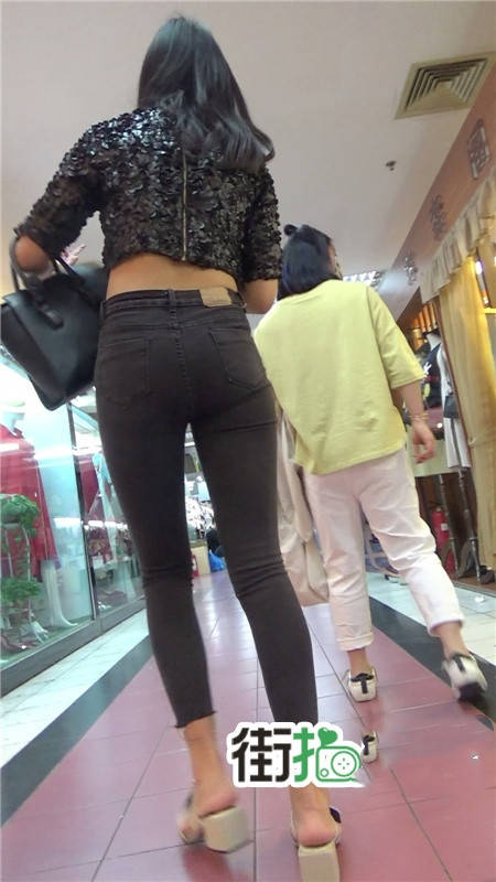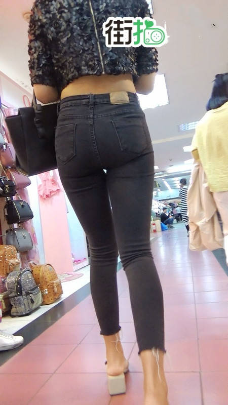 | 【编号789】街拍极品紧身黑色牛仔裤美女 |