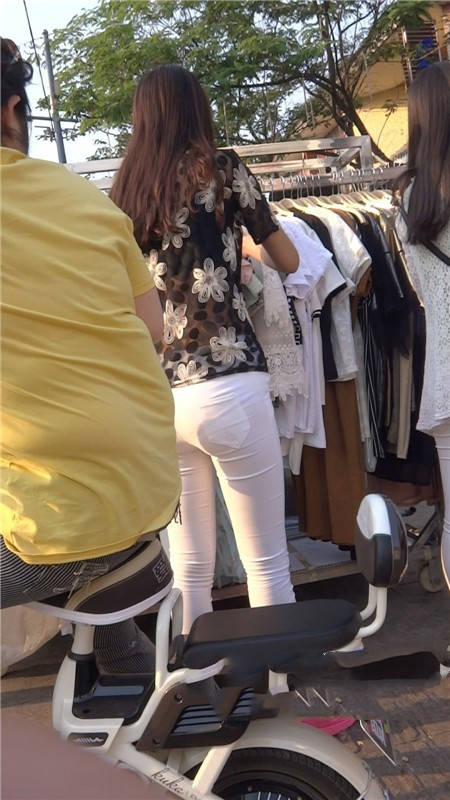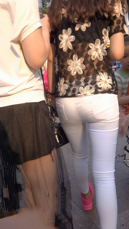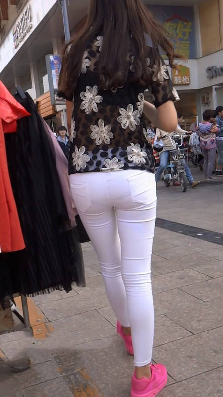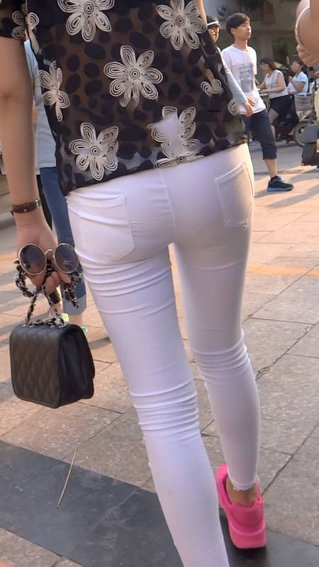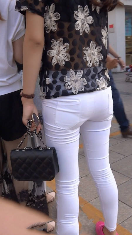 | 【编号791】街拍紧身白裤MM又紧又透 |