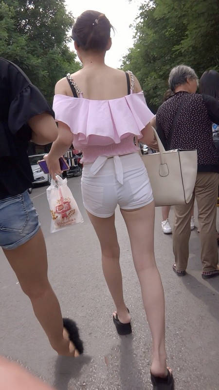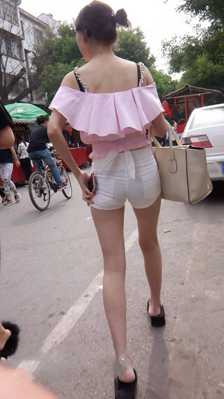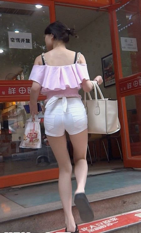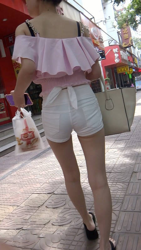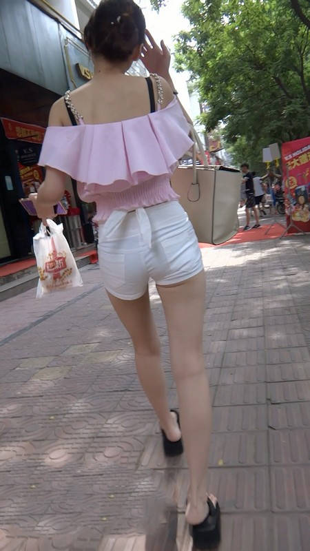 | 【编号802】街拍苗条长腿少女紧身白短裤 |