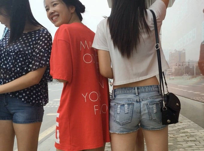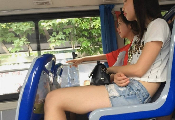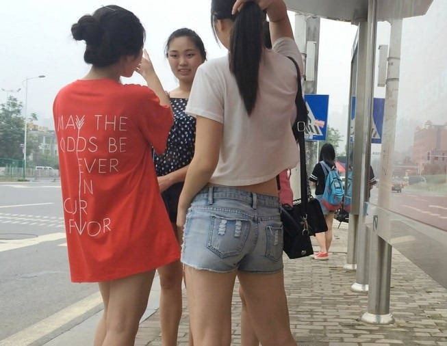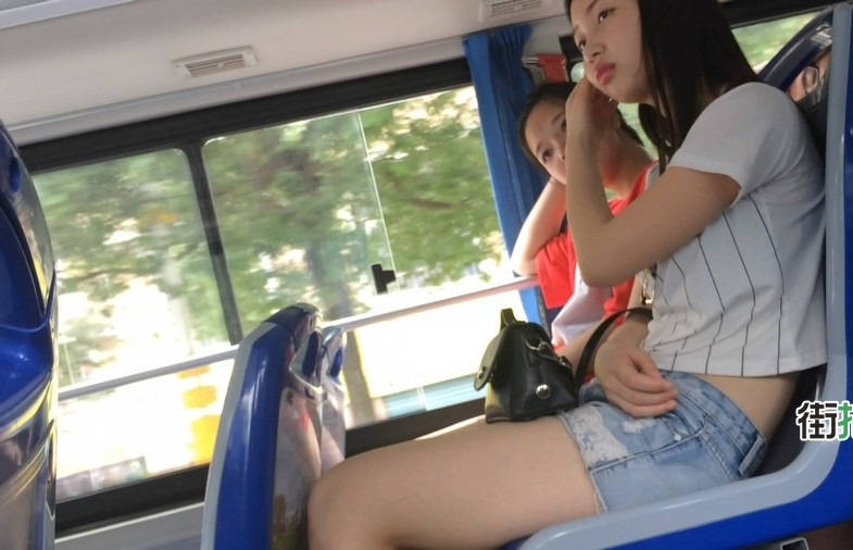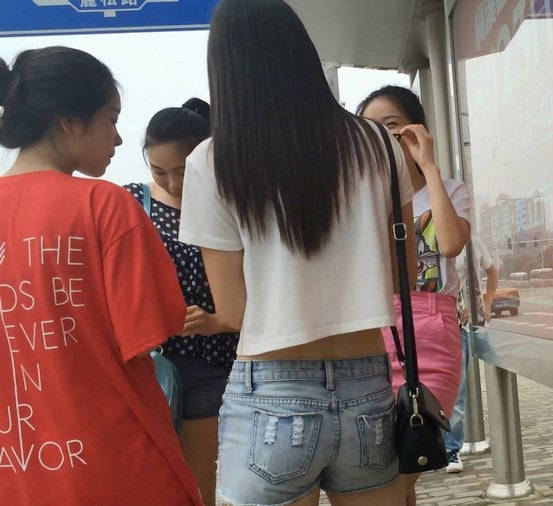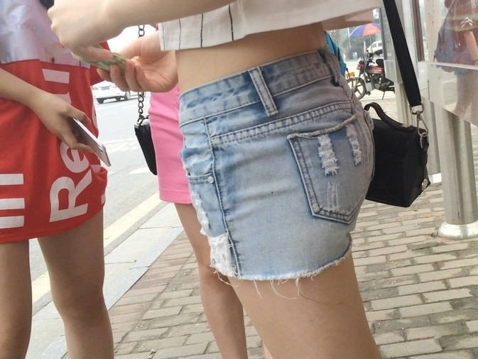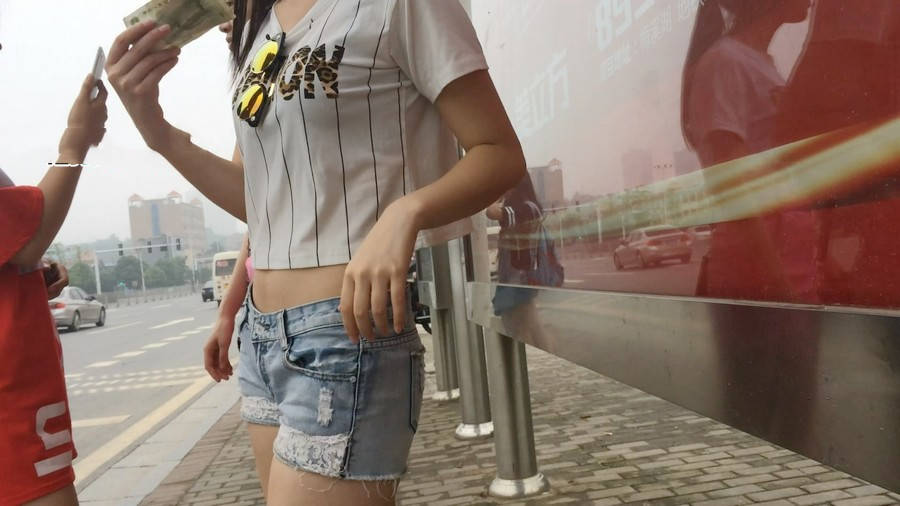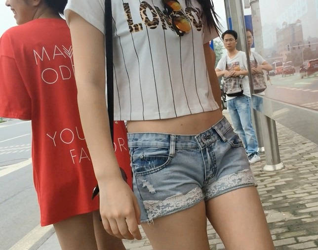 | 【编号854】街拍等公交的牛仔热裤小美女 |