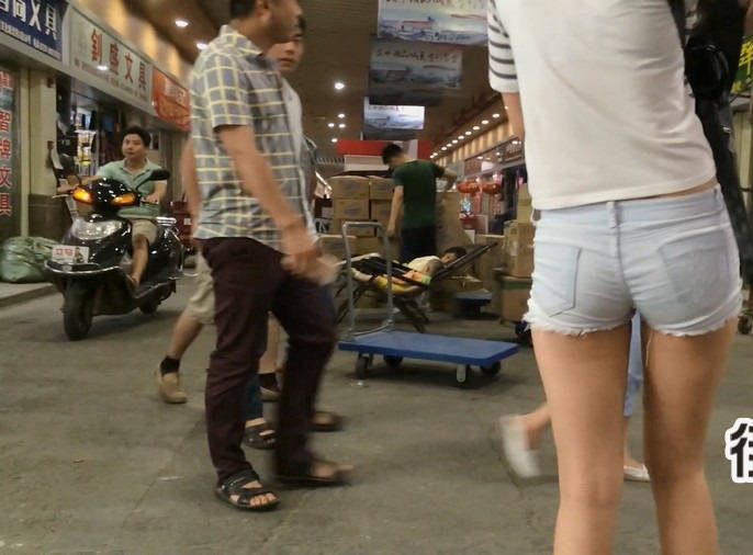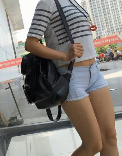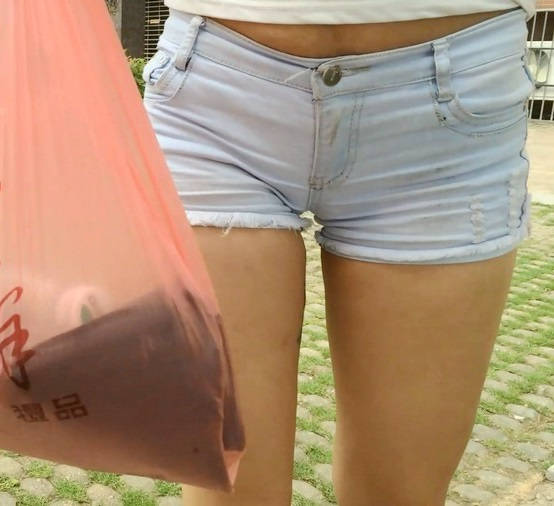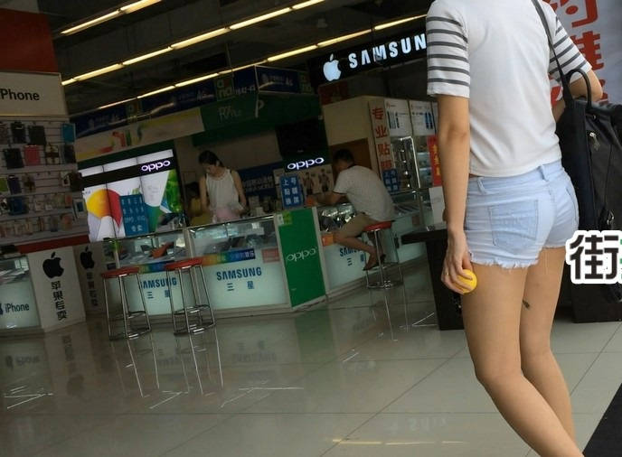| 【编号870】街拍牛仔热裤少妇带小孩扫货 |
