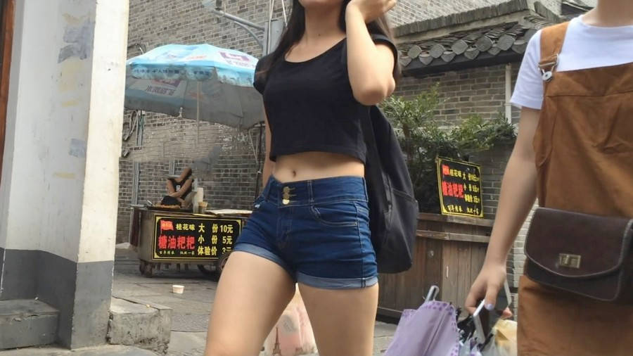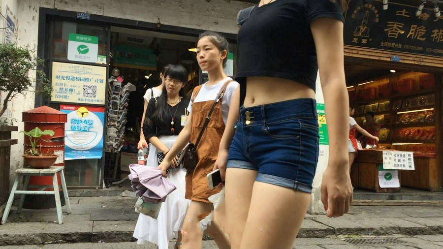 | 【编号899】街拍牛仔短裤学生妹双腿夹得好紧 |
