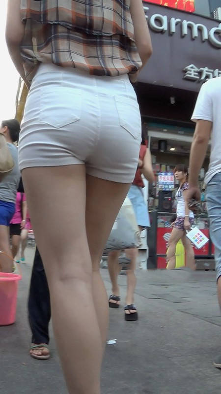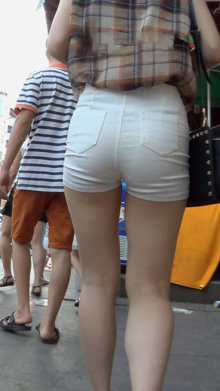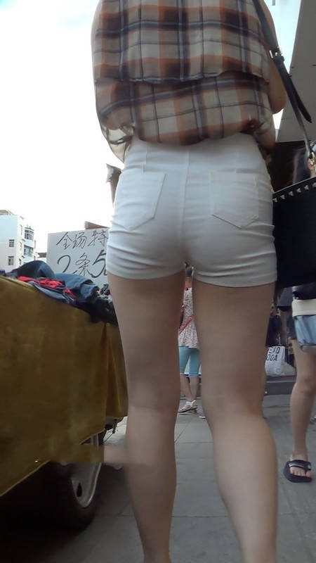 | 【编号920】街拍白色短裤紧绷肥臀高跟踩得响 |