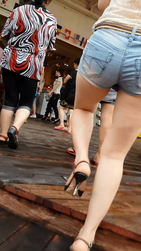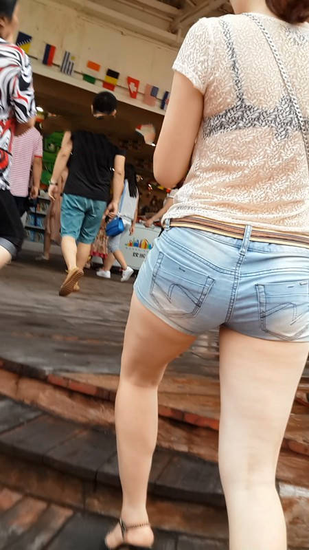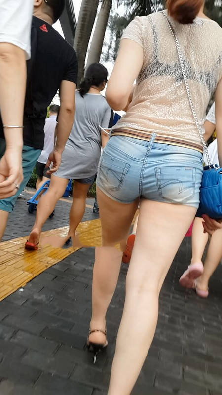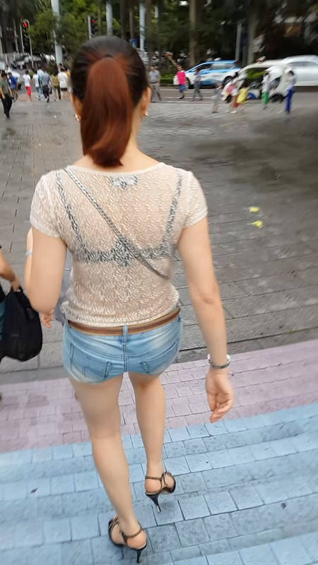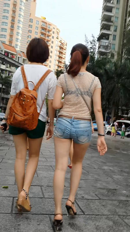 | 【编号972】街拍透明上衣紧身热裤苗条性感女孩 |