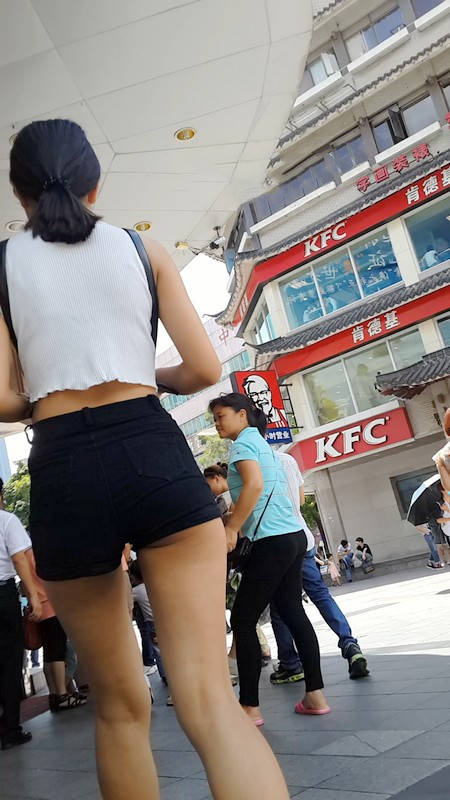| 【编号979】街拍黑色紧身热裤漂亮马尾妹妹 |